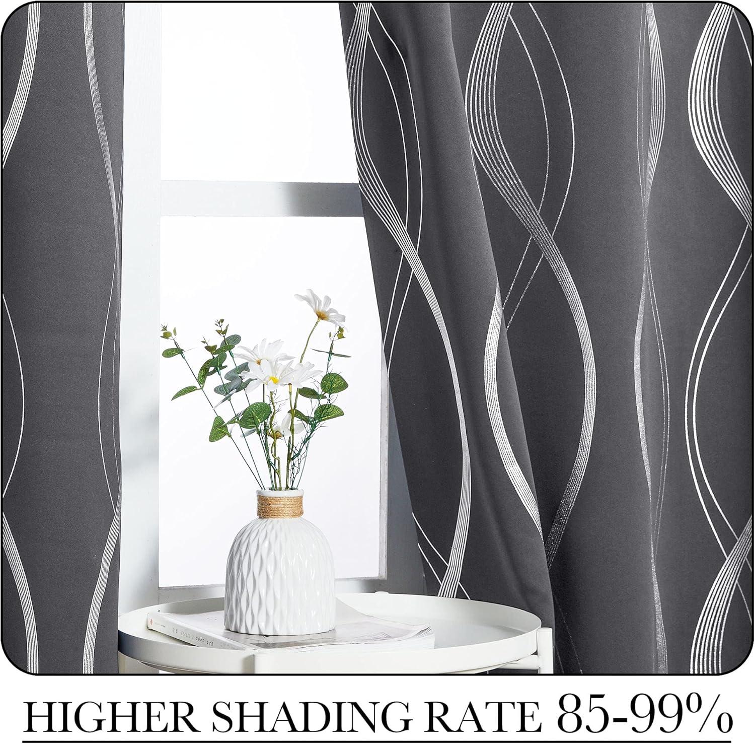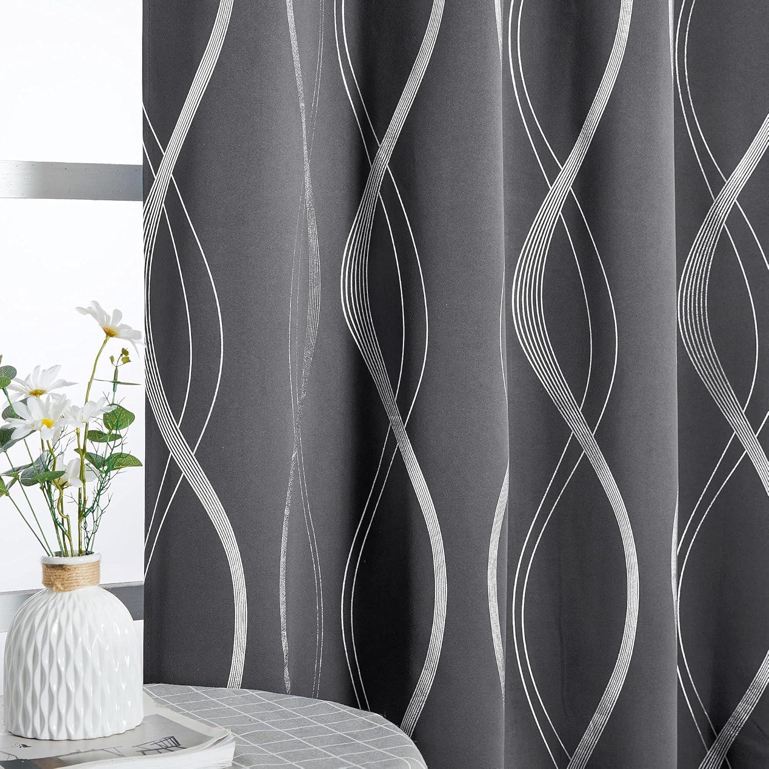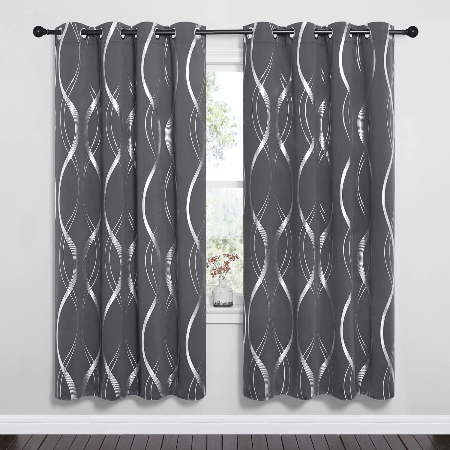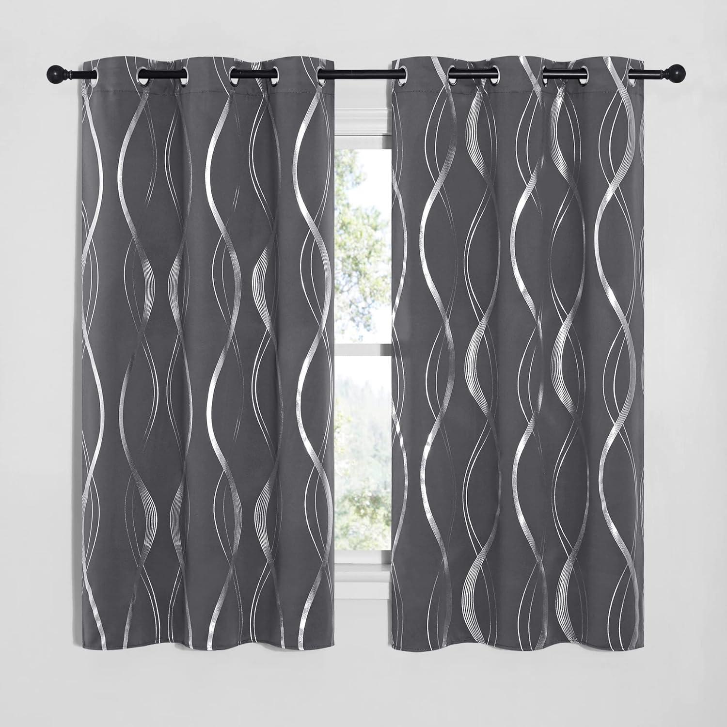 NICETOWN Blackout Short Curtains Panels for Bedroom, Microfiber Noise Reducing Thermal Insulated Wave Line Foil Print Design Drapes for Office, Classroom (Stone Blue, 2 Panels, 52 x 54 Inch)(1 – Grey)