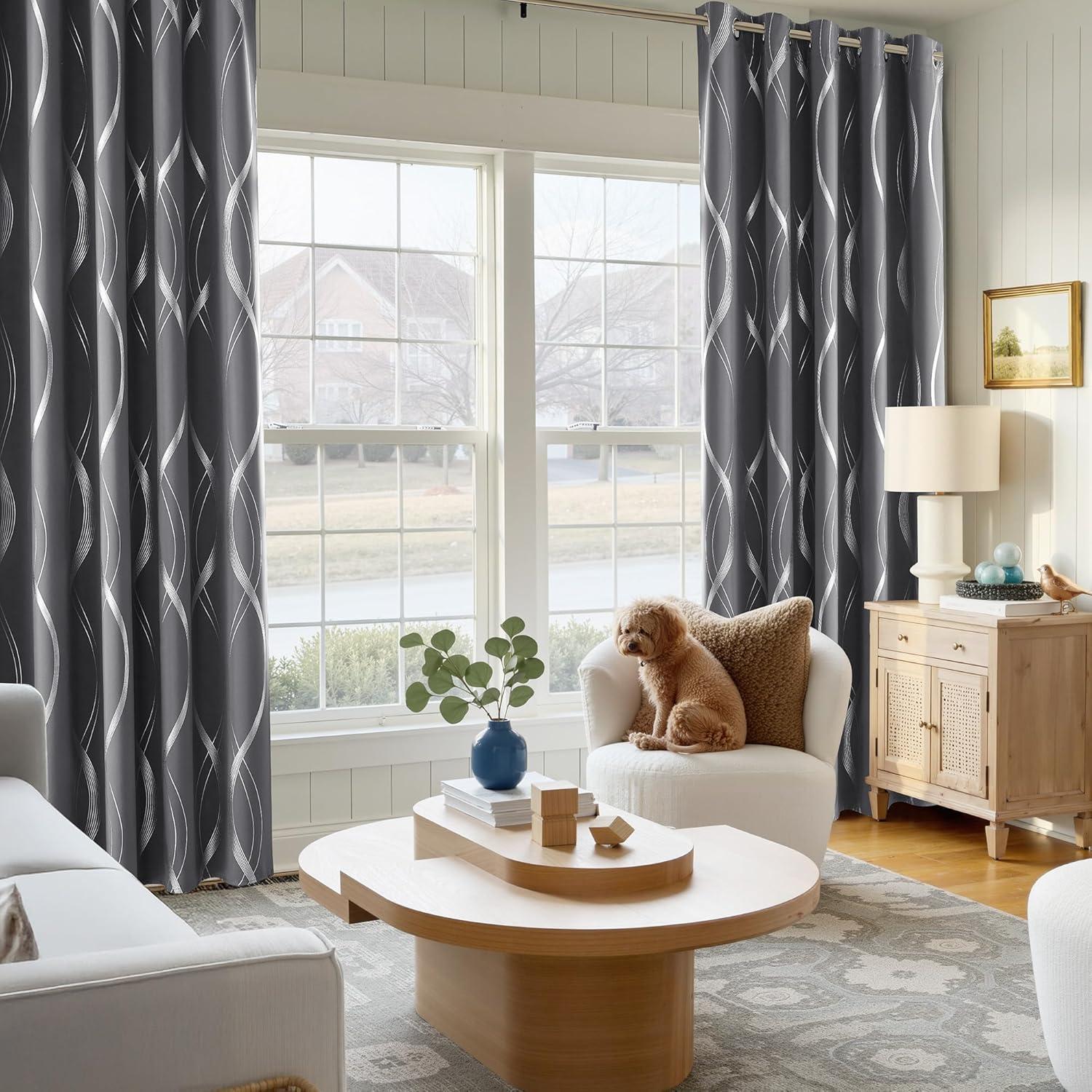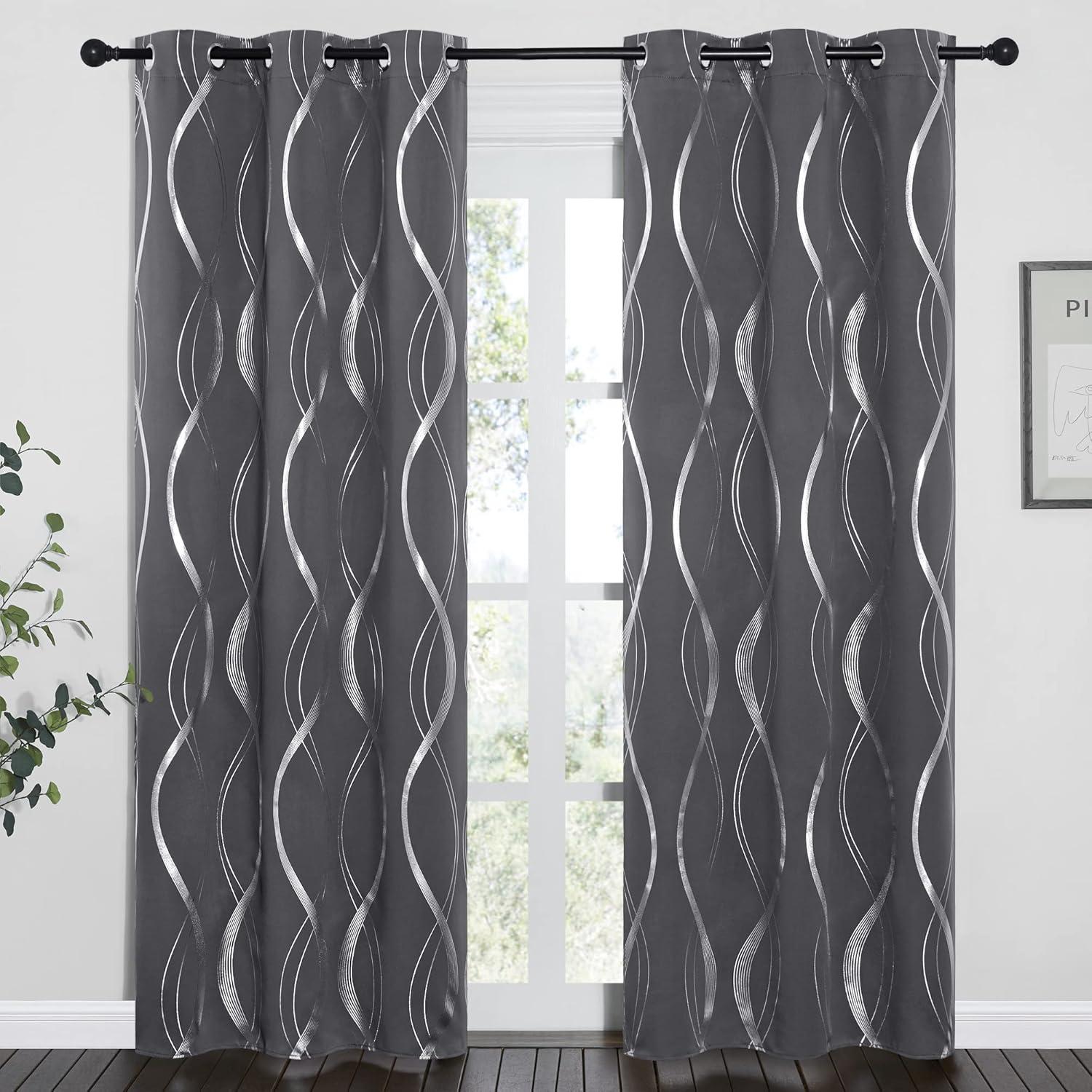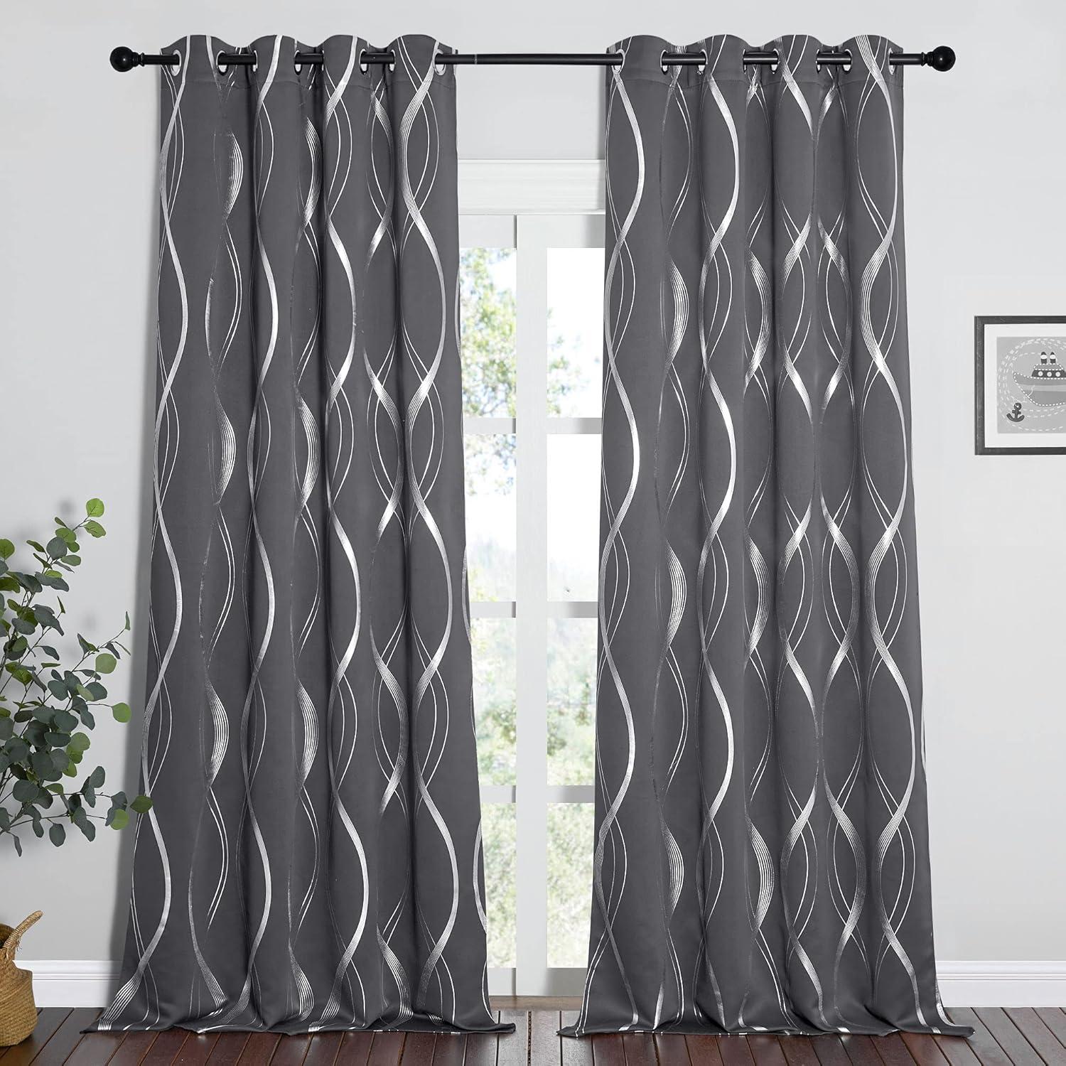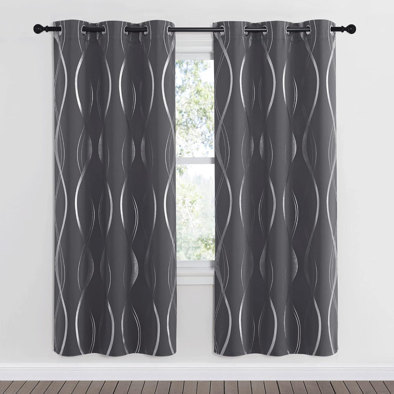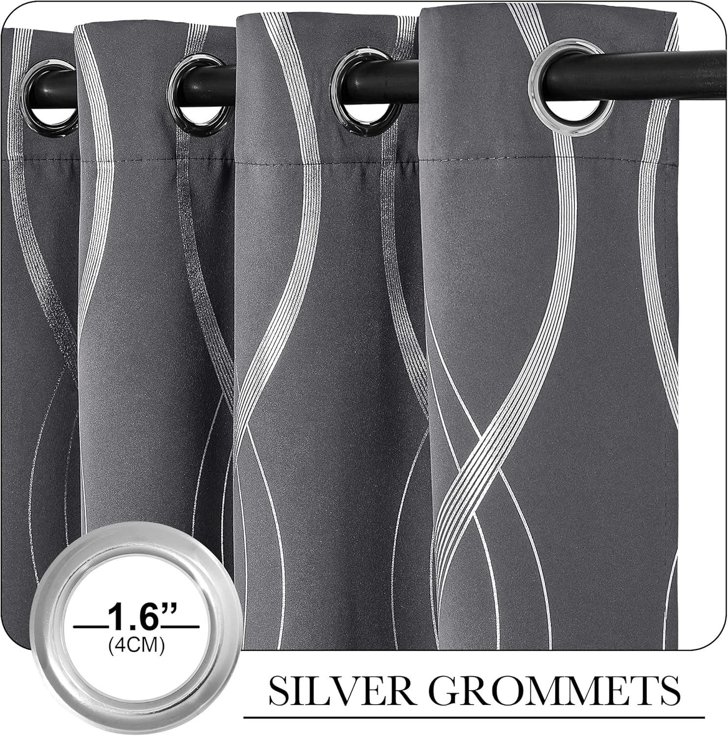 NICETOWN Blackout Short Curtains Panels for Bedroom, Microfiber Noise Reducing Thermal Insulated Wave Line Foil Print Design Drapes for Office, Classroom (Stone Blue, 2 Panels, 52 x 54 Inch)(1 – Grey)