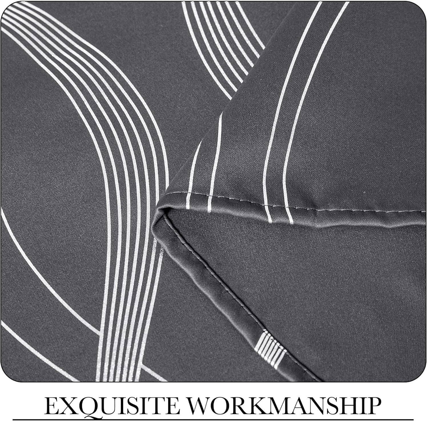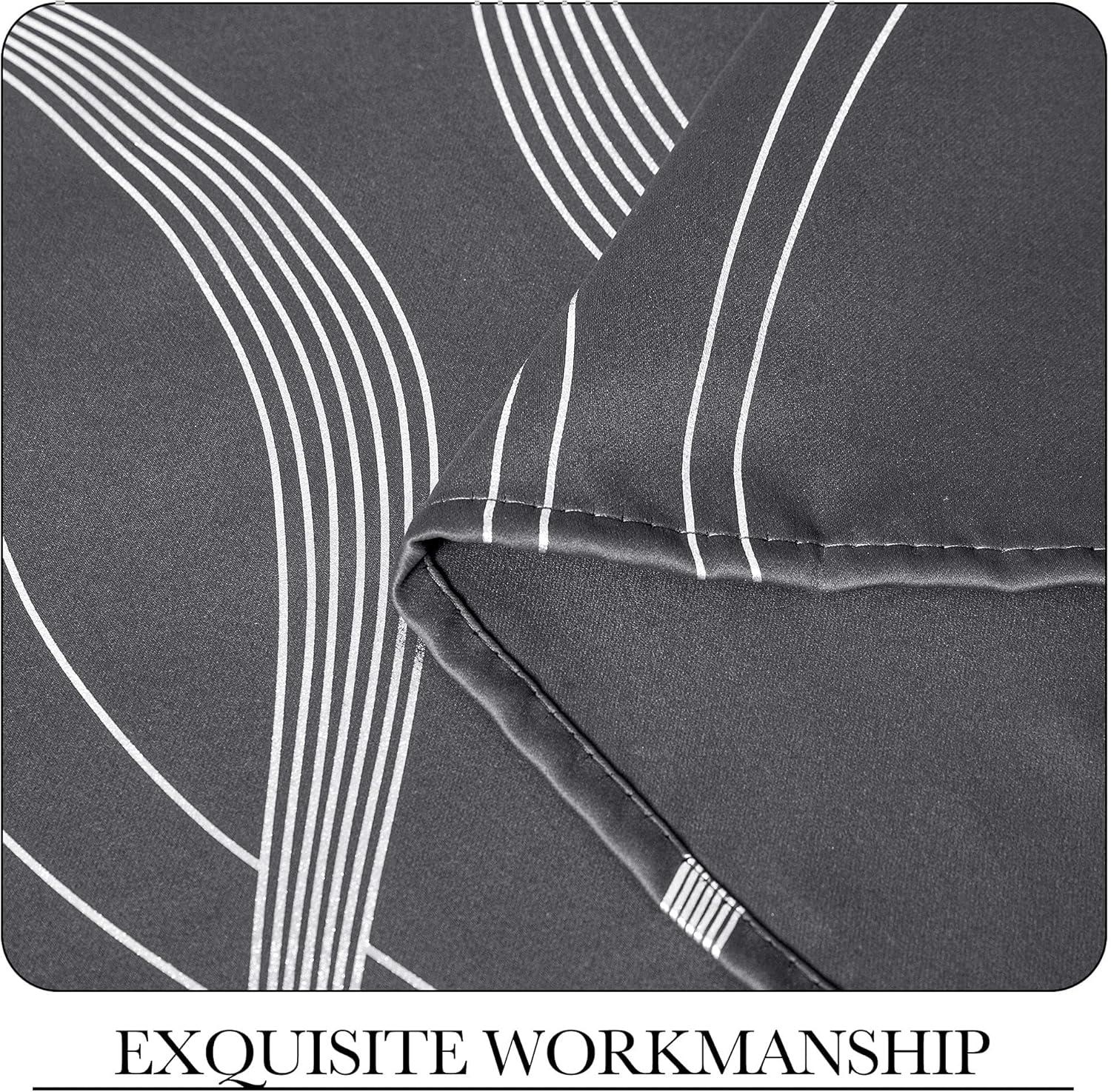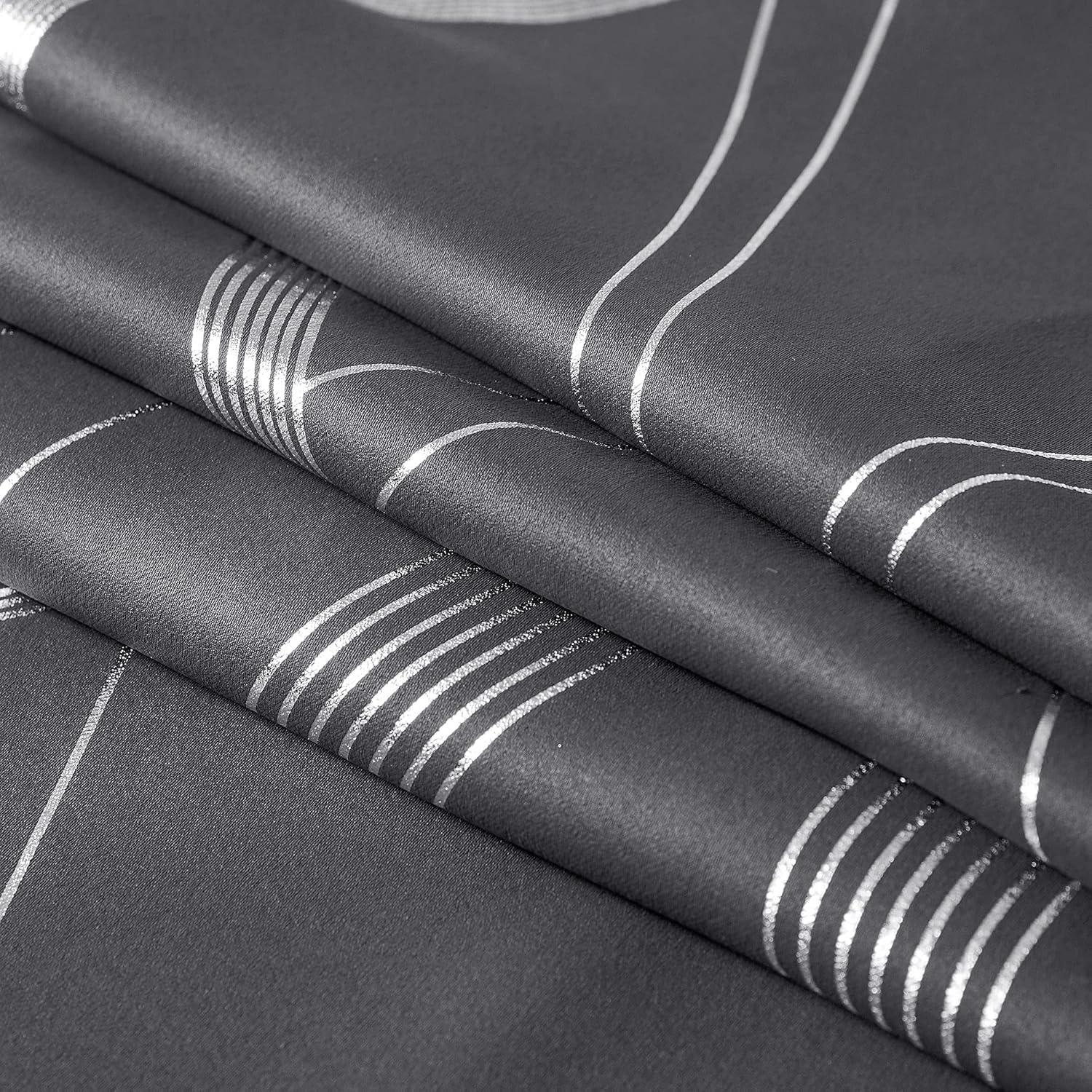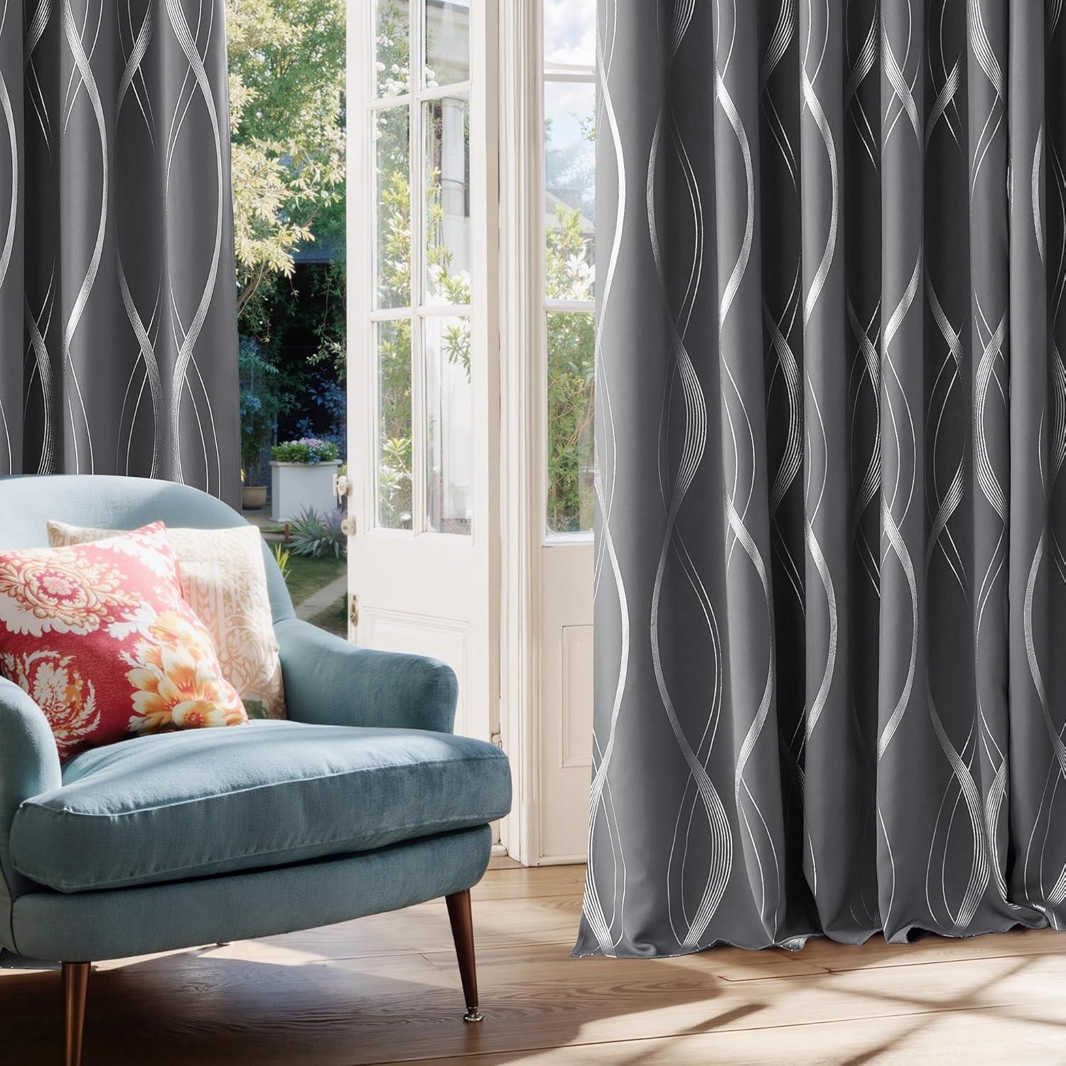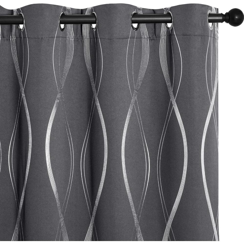 imageNICETOWN Blackout Short Curtains Panels for Bedroom Microfiber Noise Reducing Thermal Insulated Wave Line Foil Print Design Drapes for Office Classroom Stone Blue 2 Panels 52 x 54 Inch1  Grey