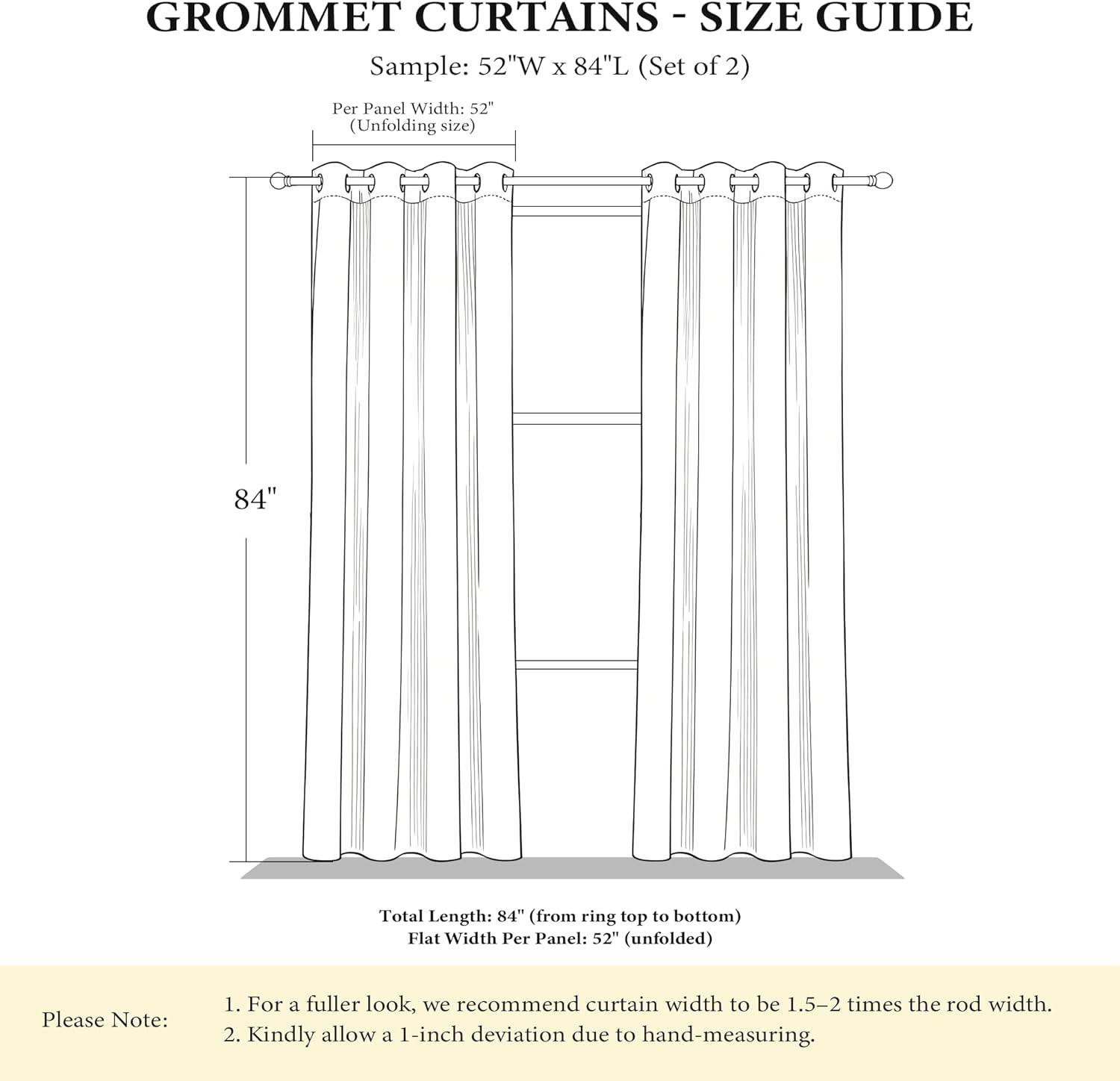ELEGANT DESIGN: 2 panels per package. Each blackout curtain measures 52″ wide x 54″ long. The design of silver grommet (1.6 inch inner diameter) creates casual elegance for your house, which makes the curtains easy to install and slide.