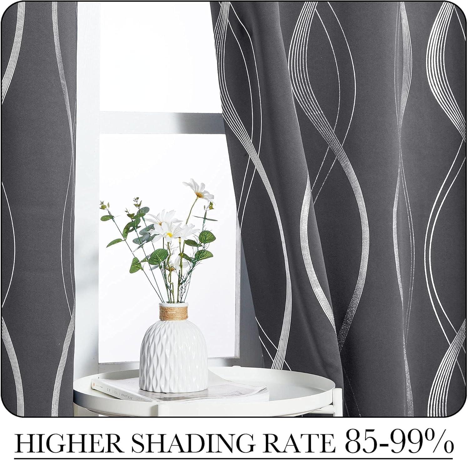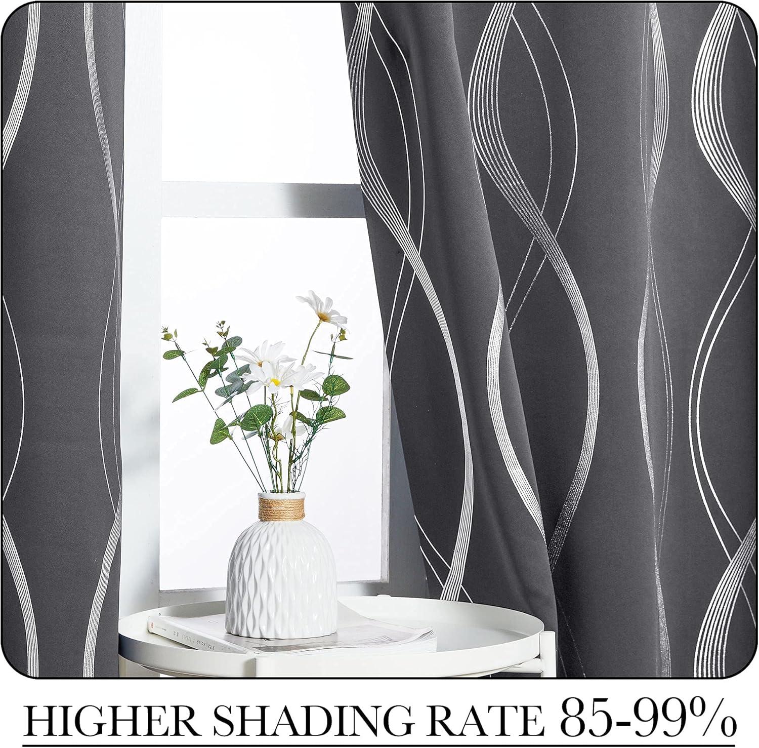NICETOWN Blackout Short Curtains Panels for Bedroom, Microfiber Noise Reducing Thermal Insulated Wave Line Foil Print Design Drapes for Office, Classroom (Stone Blue, 2 Panels, 52 x 54 Inch)(1 - Grey)