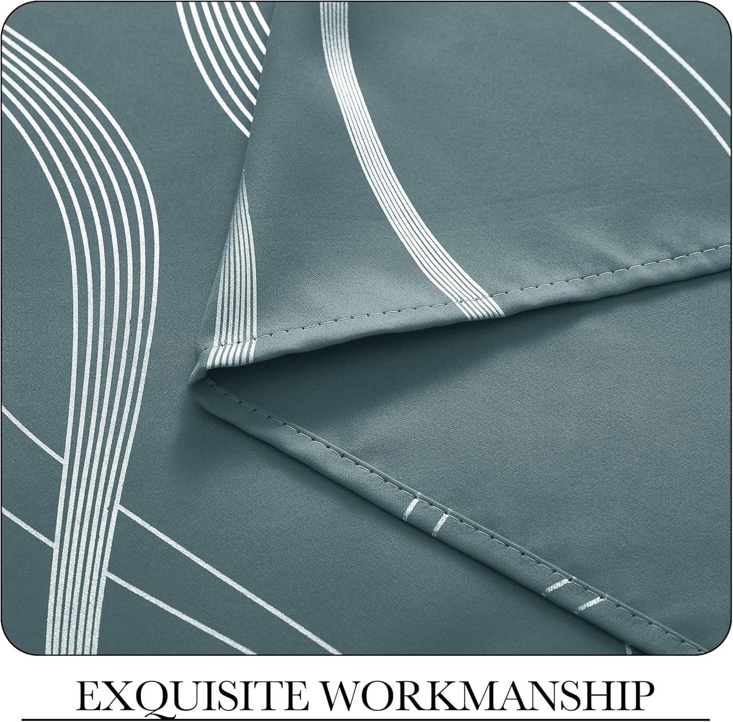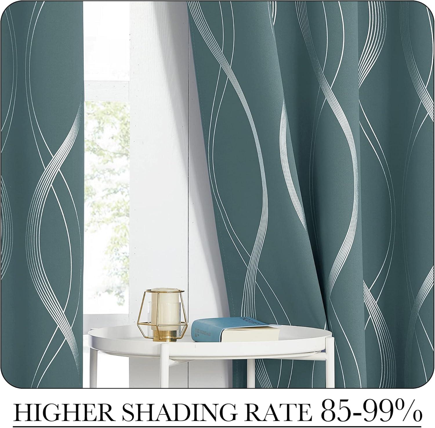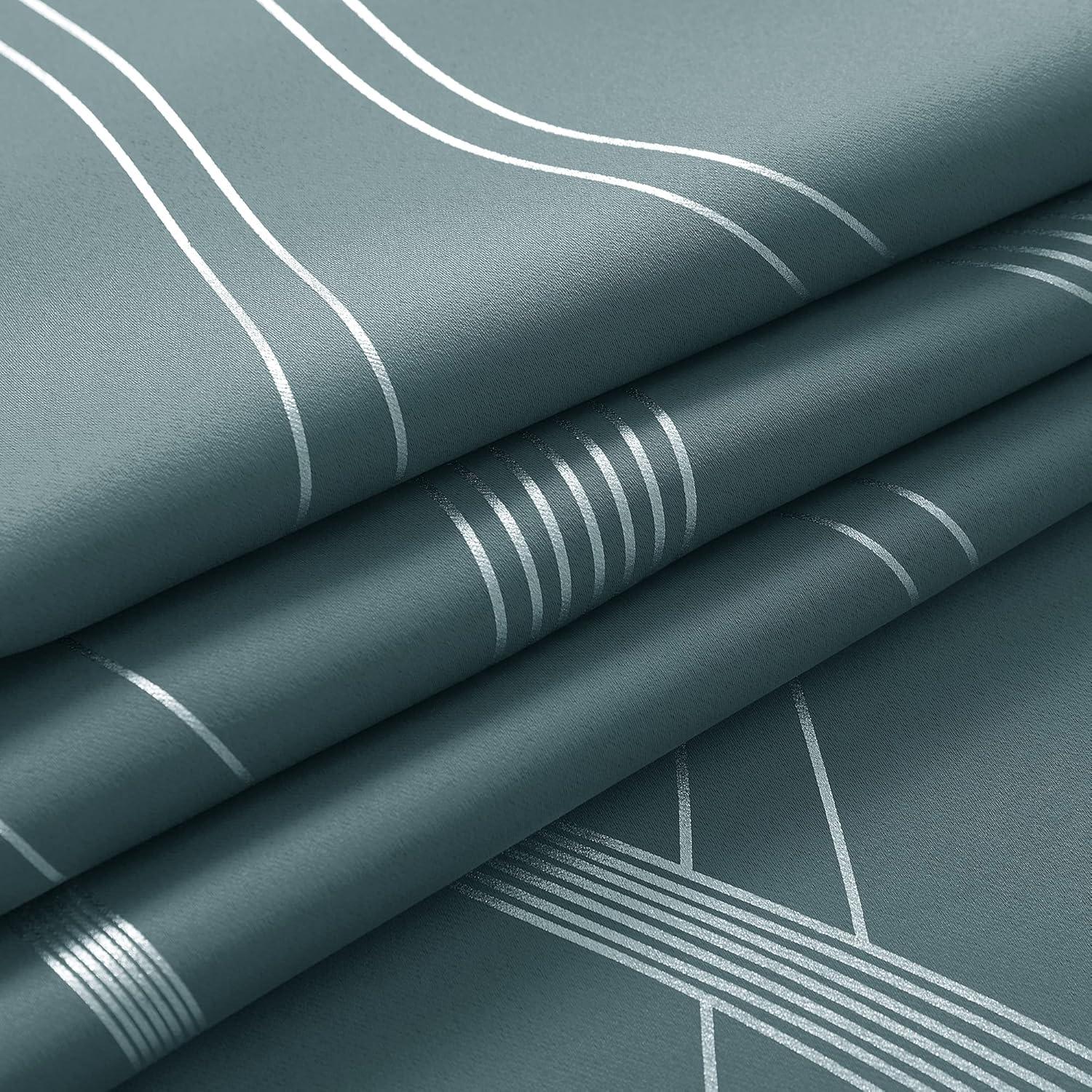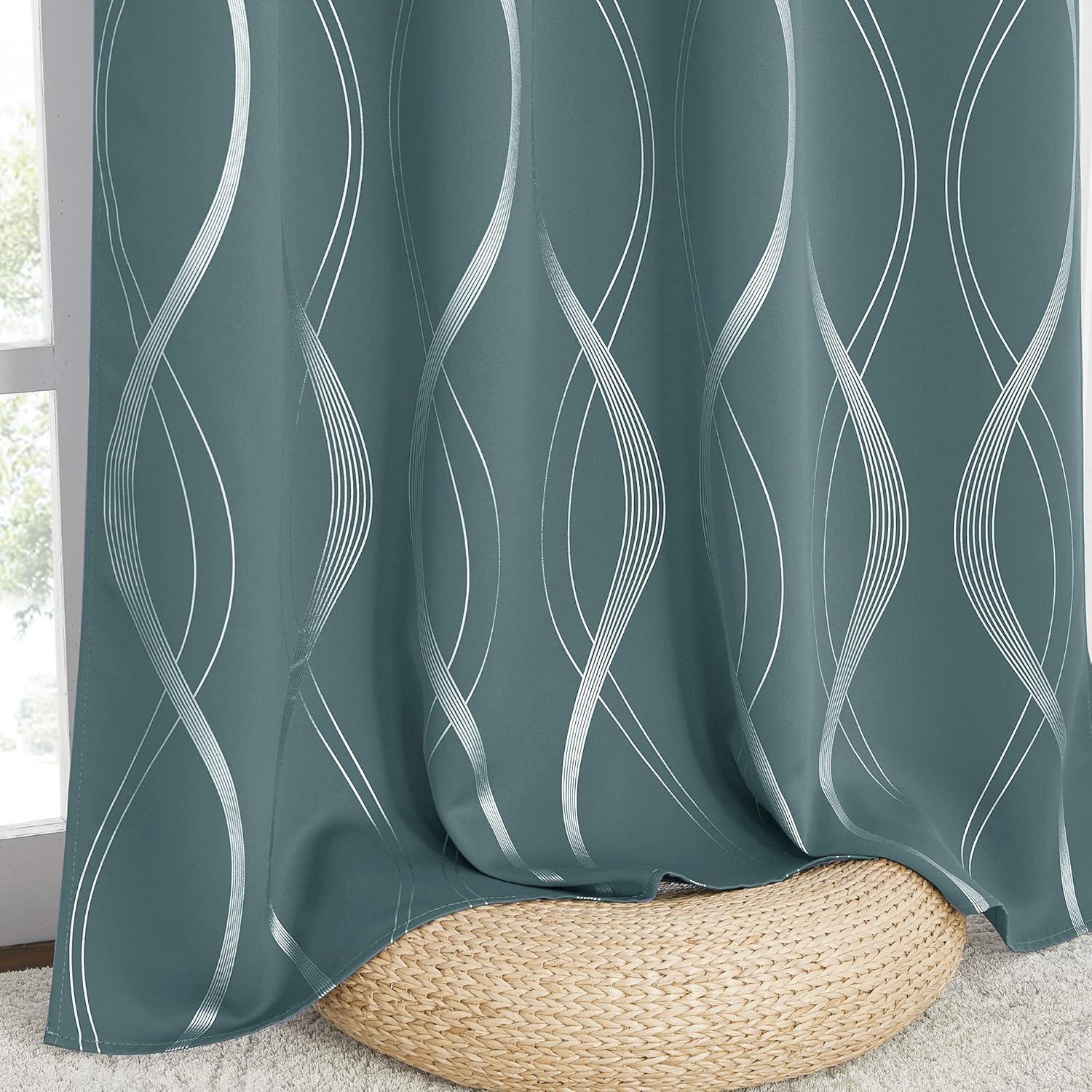 imageNICETOWN Blackout Short Curtains Panels for Bedroom Microfiber Noise Reducing Thermal Insulated Wave Line Foil Print Design Drapes for Office Classroom Stone Blue 2 Panels 52 x 54 Inch1  Greyish Green