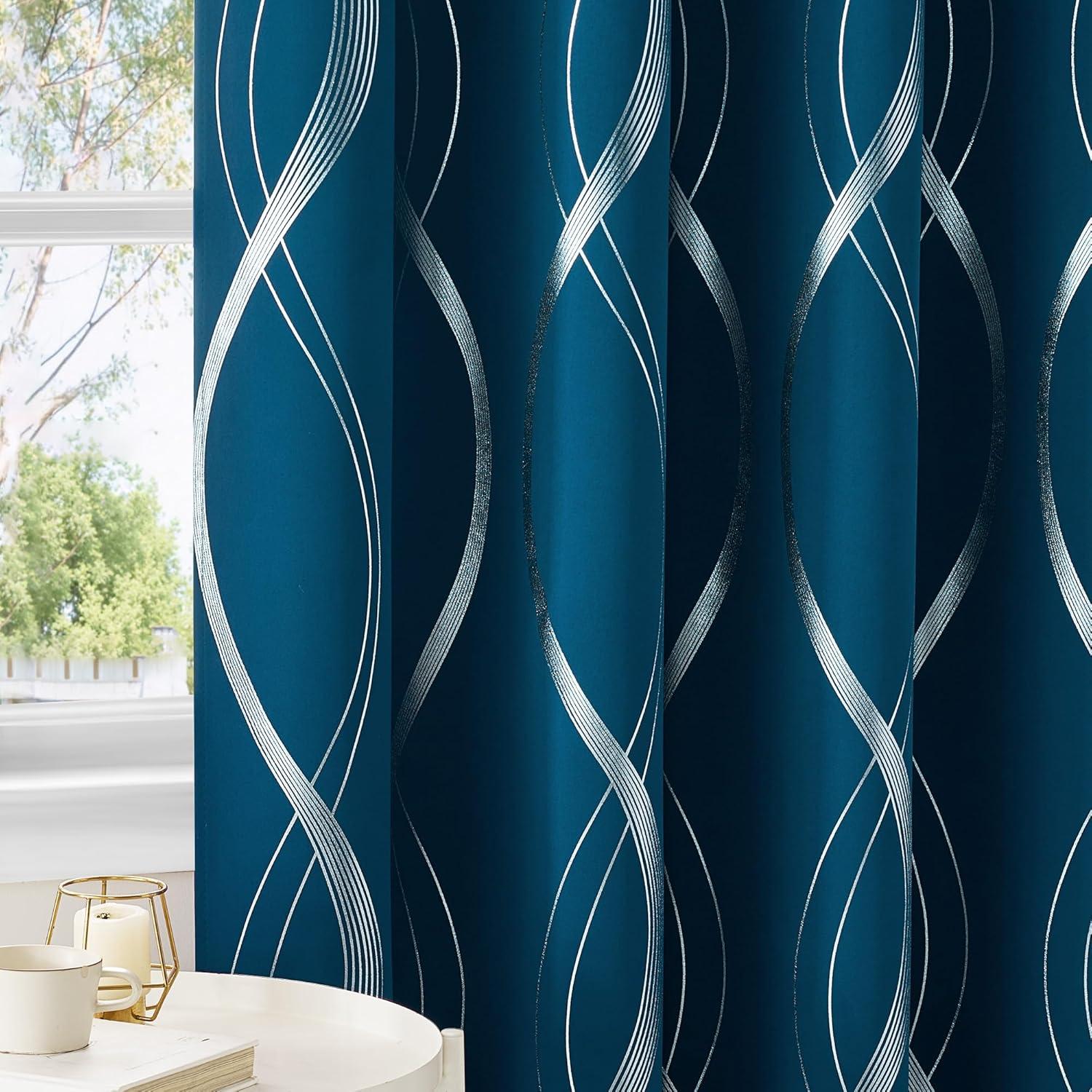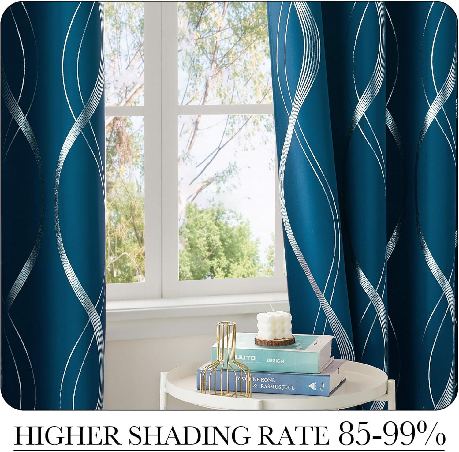 imageNICETOWN Blackout Short Curtains Panels for Bedroom Microfiber Noise Reducing Thermal Insulated Wave Line Foil Print Design Drapes for Office Classroom Stone Blue 2 Panels 52 x 54 Inch1  Moroccan Blue