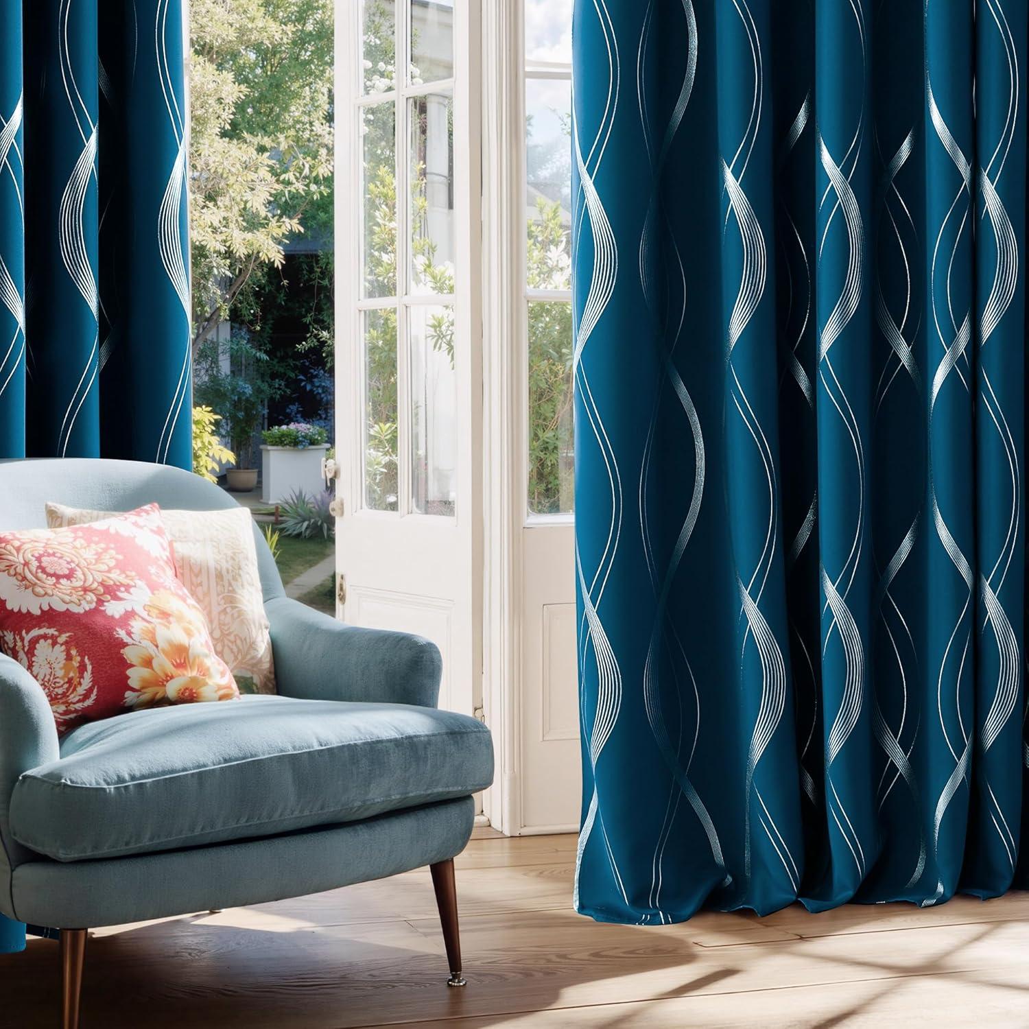 FOIL PRINTED: The classic silver striped wave lines pattern on the background gives the curtains an exclusive elegant look. With digital print technology, beautifully printed with the vibrant design shown.