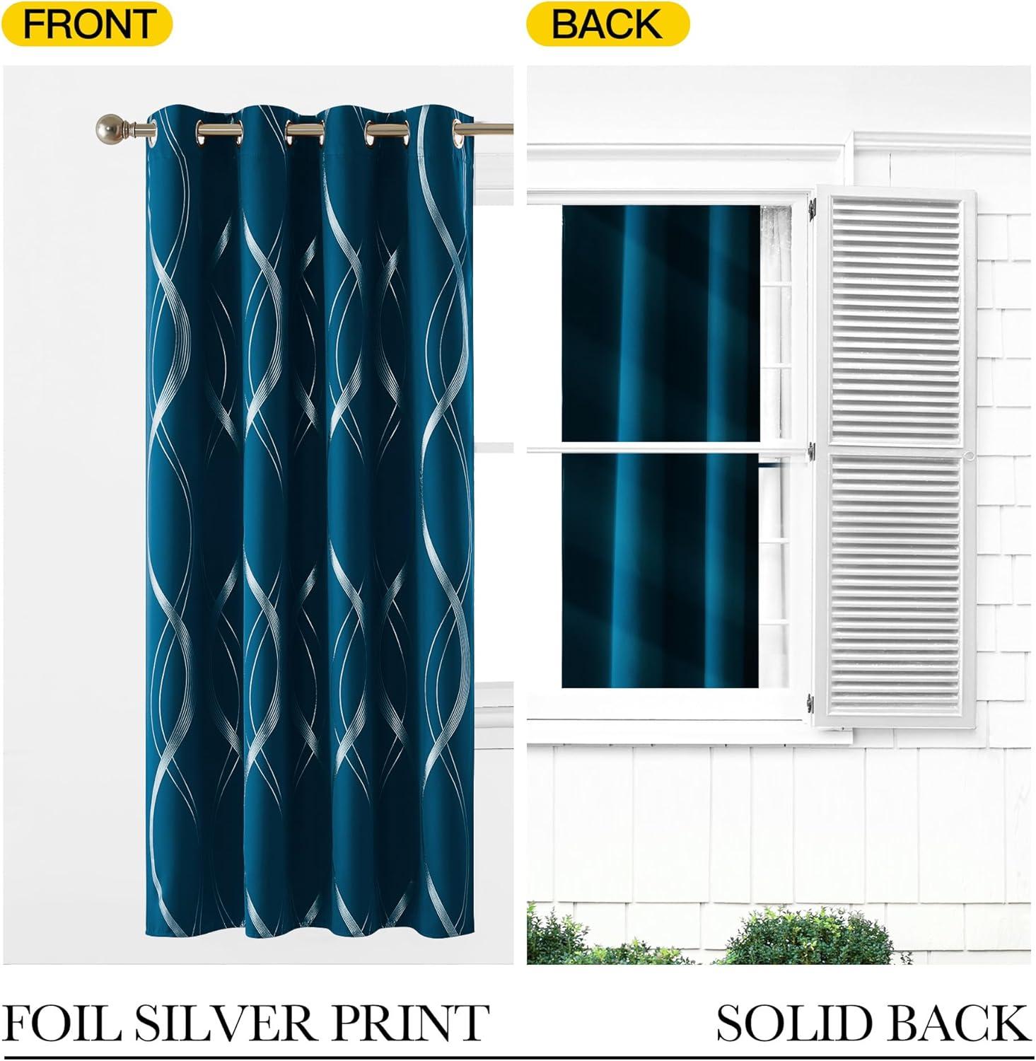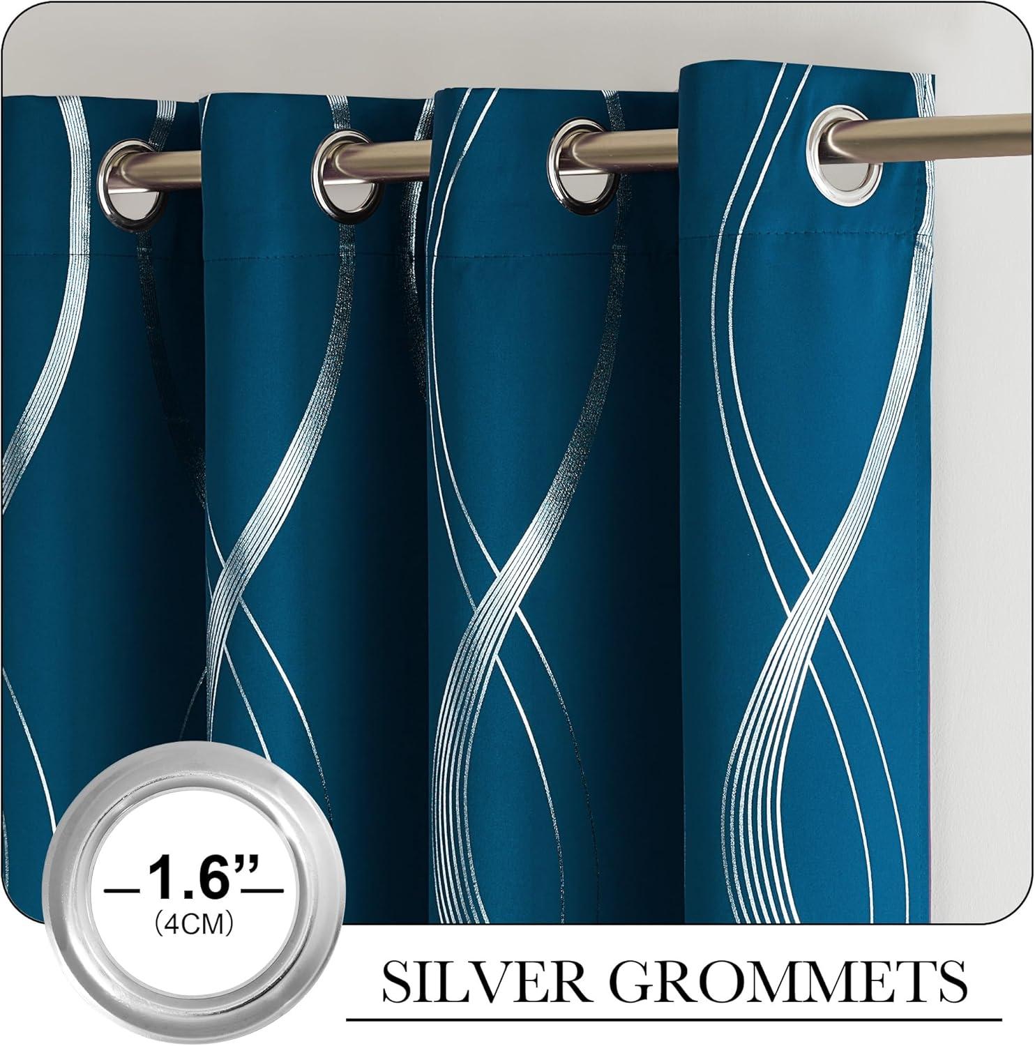 imageNICETOWN Blackout Short Curtains Panels for Bedroom Microfiber Noise Reducing Thermal Insulated Wave Line Foil Print Design Drapes for Office Classroom Stone Blue 2 Panels 52 x 54 Inch1  Navy
