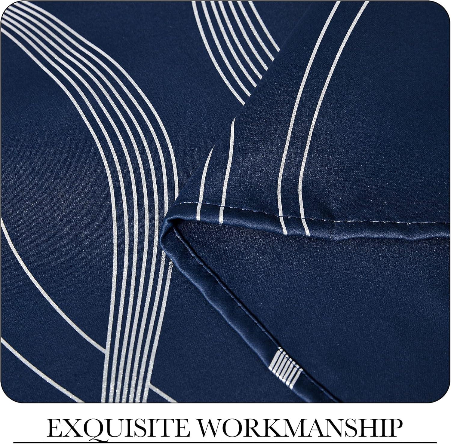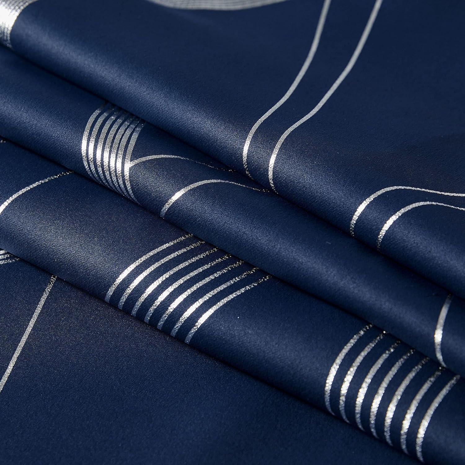 imageNICETOWN Blackout Short Curtains Panels for Bedroom Microfiber Noise Reducing Thermal Insulated Wave Line Foil Print Design Drapes for Office Classroom Stone Blue 2 Panels 52 x 54 Inch1  Navy