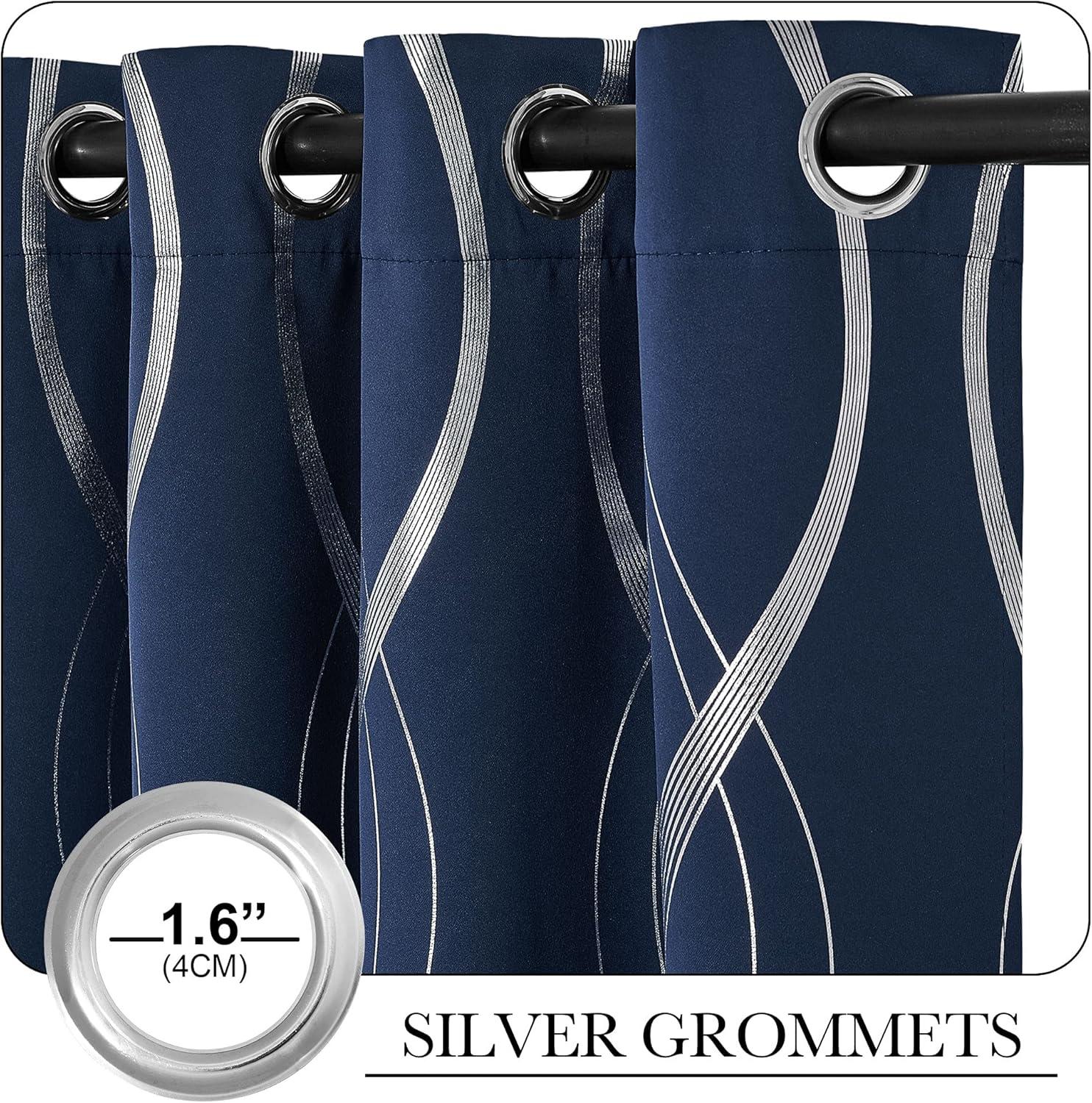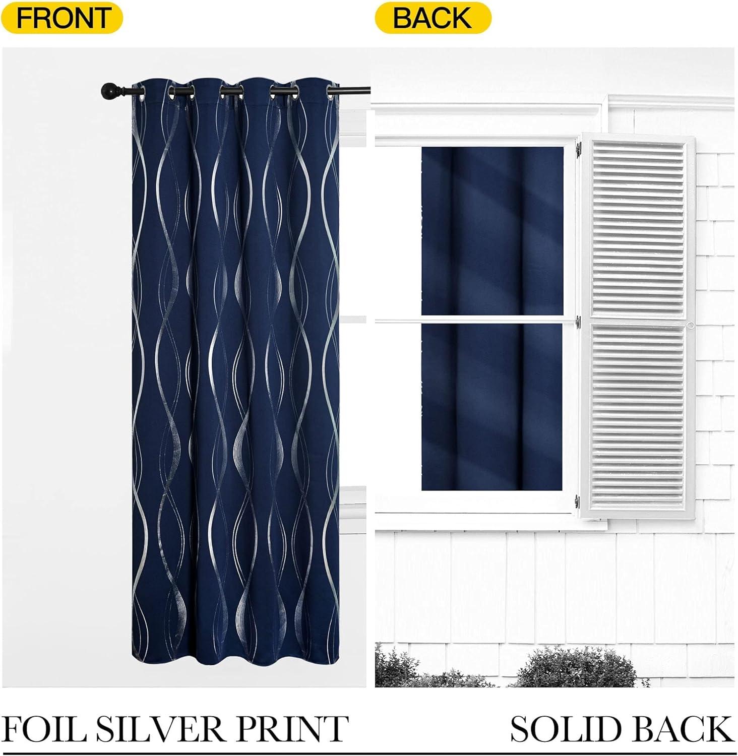 NICETOWN Blackout Short Curtains Panels for Bedroom, Microfiber Noise Reducing Thermal Insulated Wave Line Foil Print Design Drapes for Office, Classroom (Stone Blue, 2 Panels, 52 x 54 Inch)(1 - Navy)