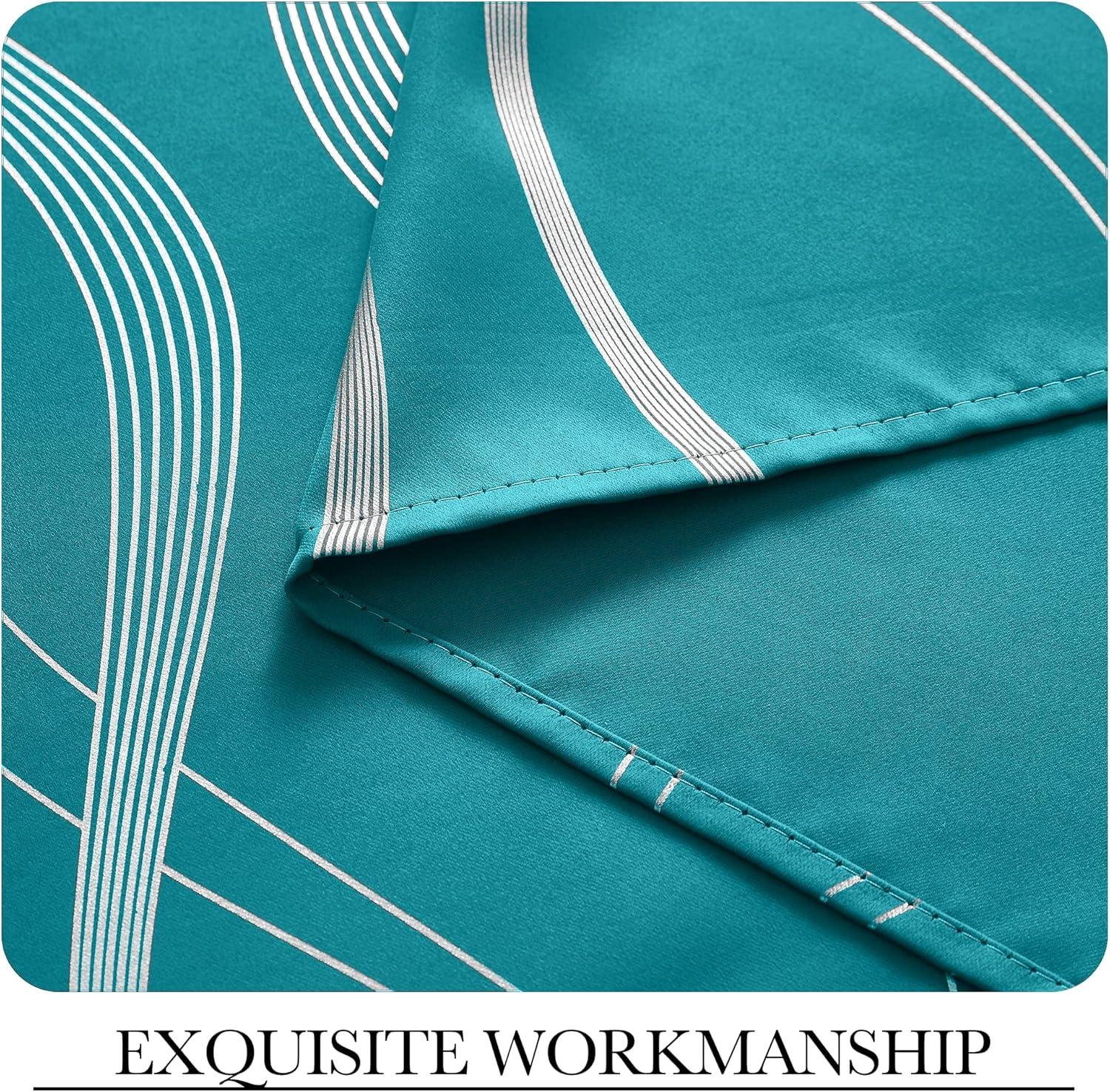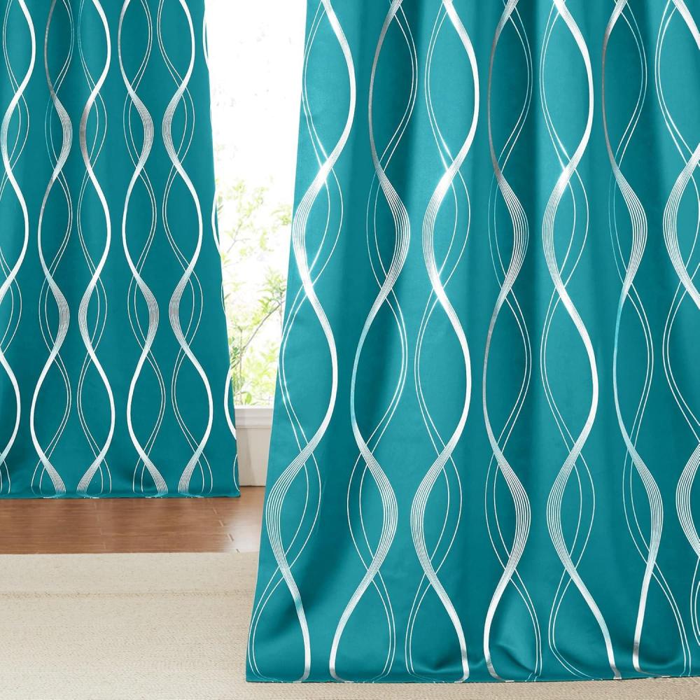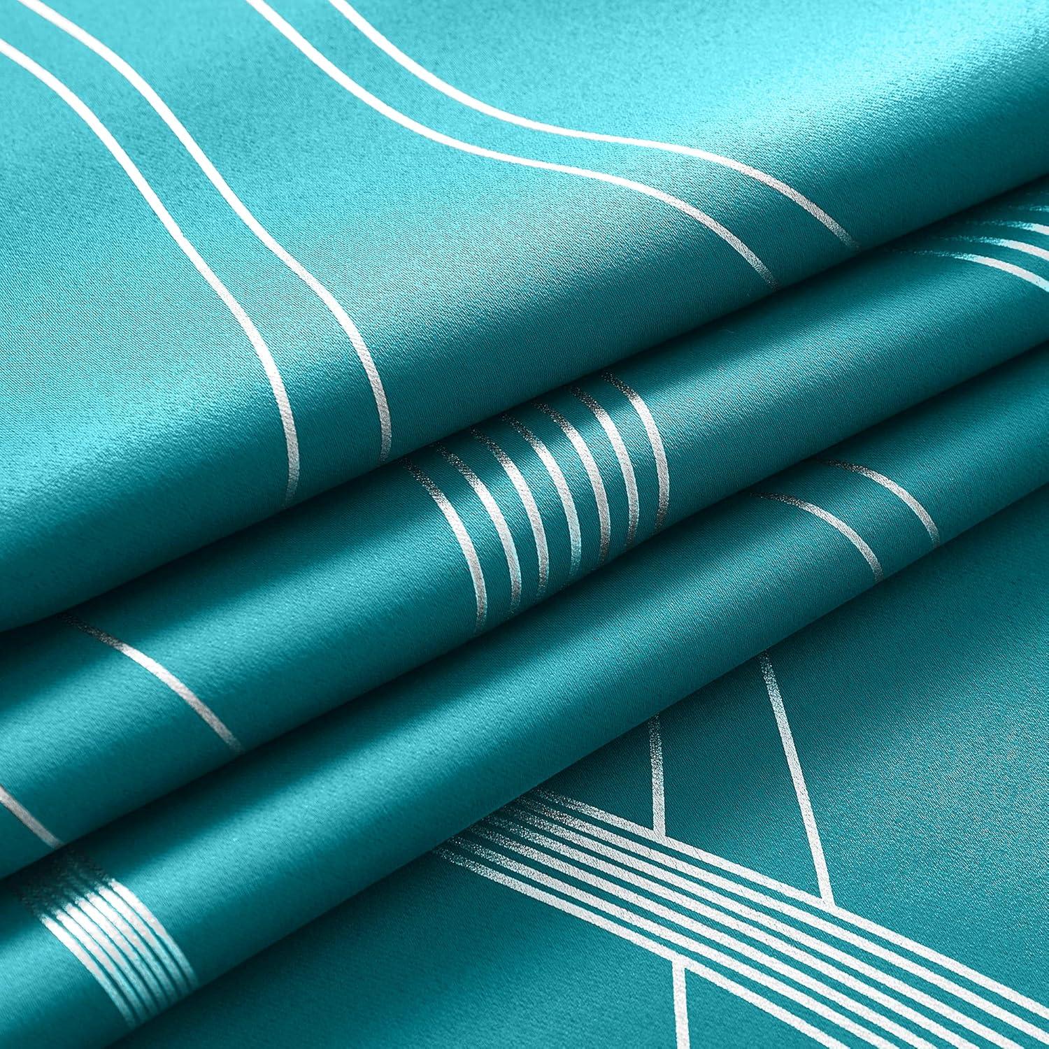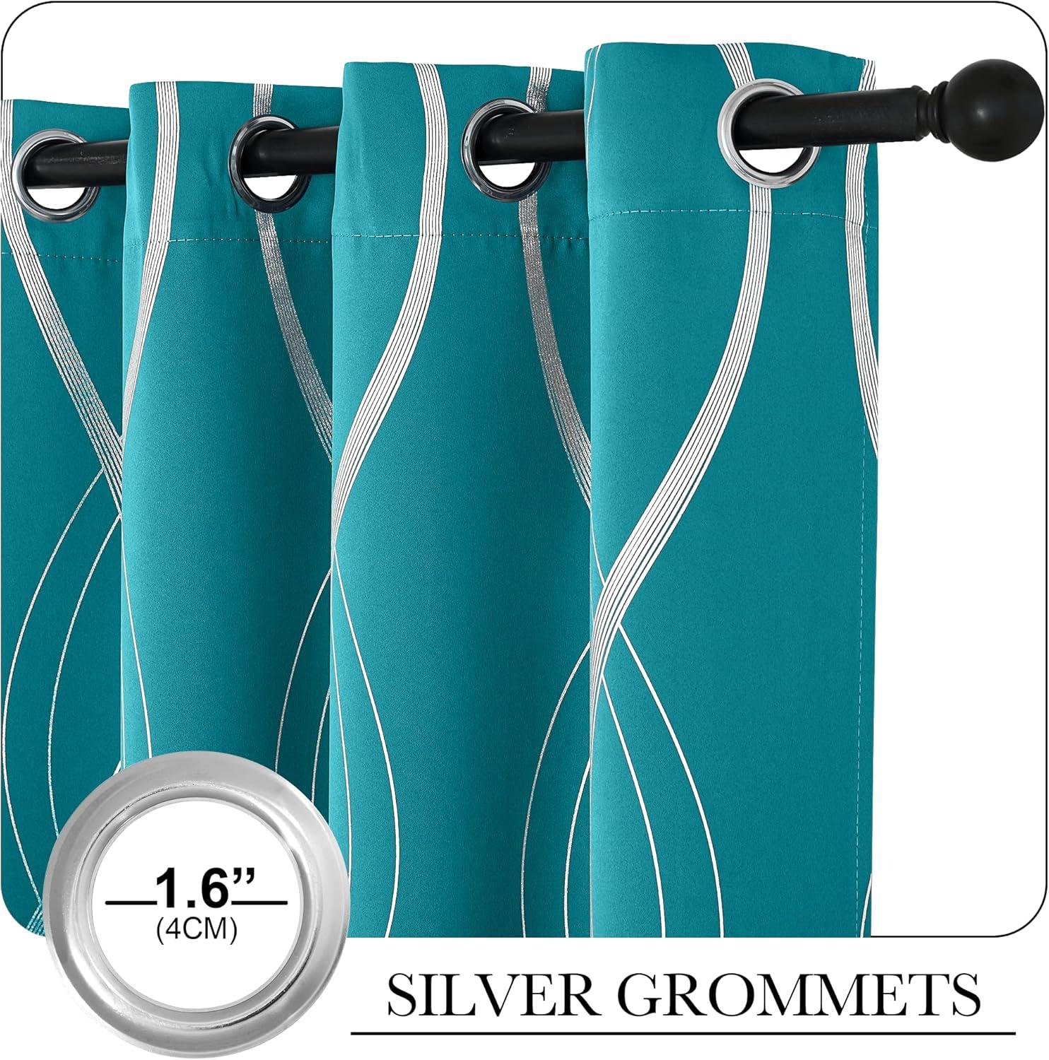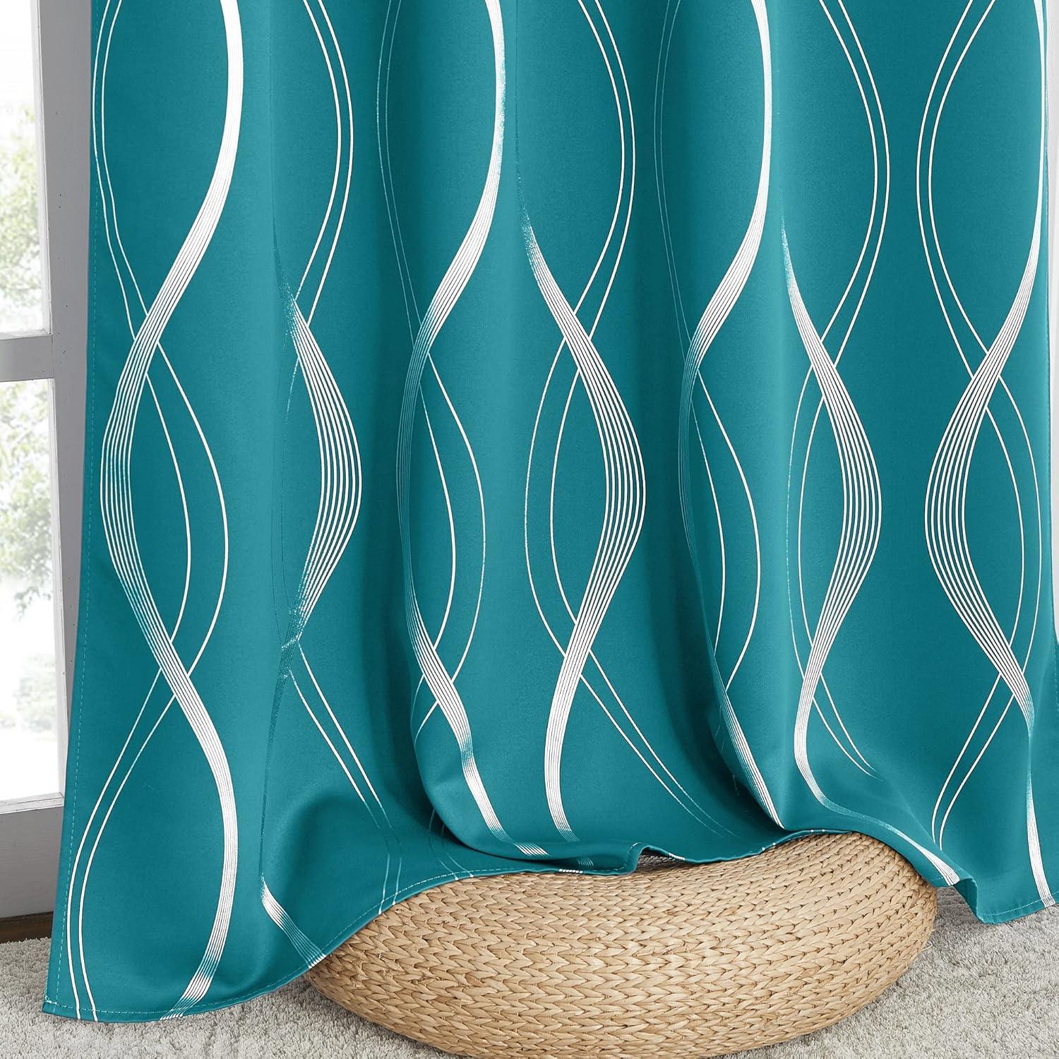 imageNICETOWN Blackout Short Curtains Panels for Bedroom Microfiber Noise Reducing Thermal Insulated Wave Line Foil Print Design Drapes for Office Classroom Stone Blue 2 Panels 52 x 54 Inch1  Peacock Teal