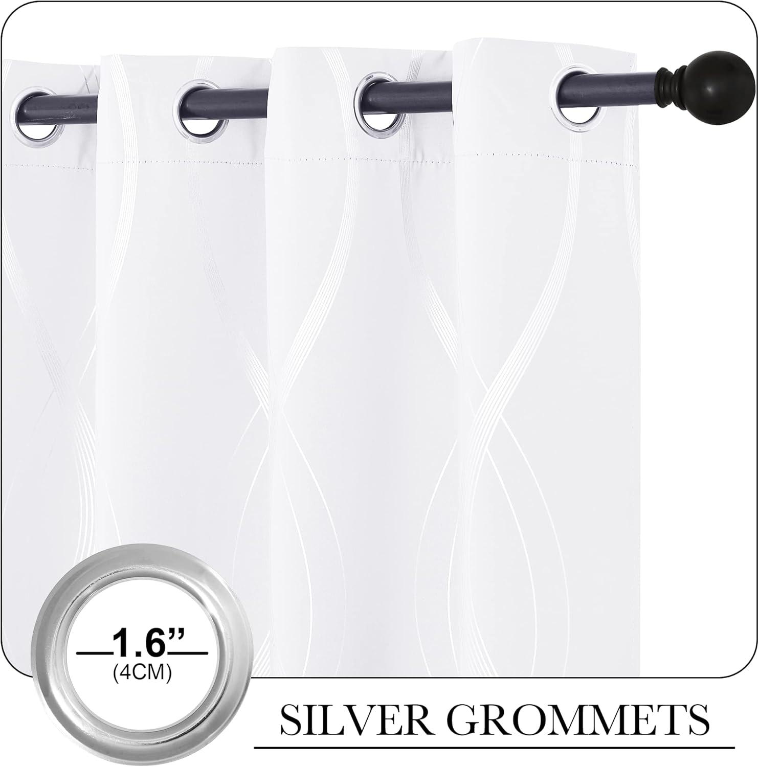 imageNICETOWN Blackout Short Curtains Panels for Bedroom Microfiber Noise Reducing Thermal Insulated Wave Line Foil Print Design Drapes for Office Classroom Stone Blue 2 Panels 52 x 54 Inch1  White