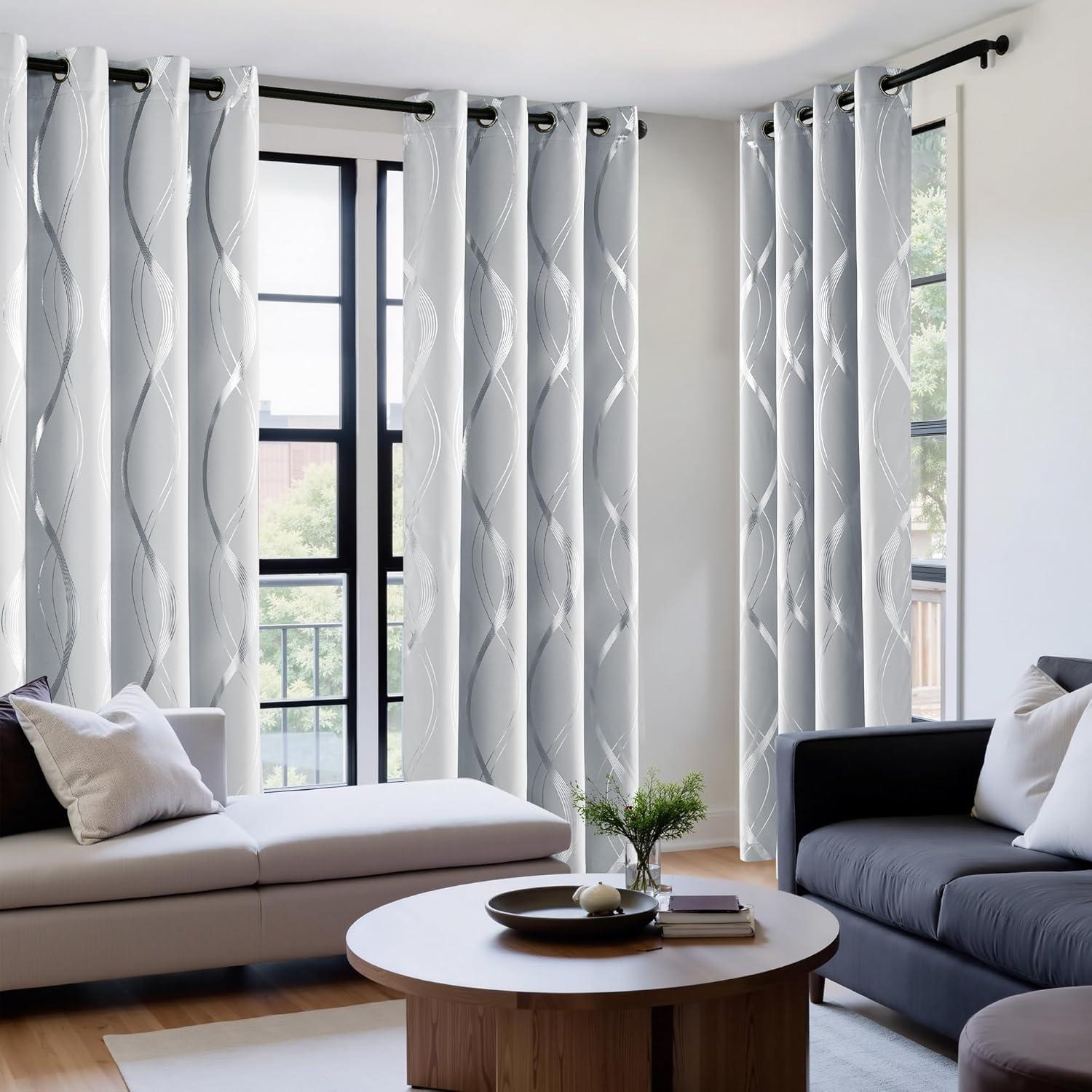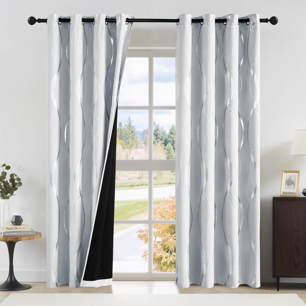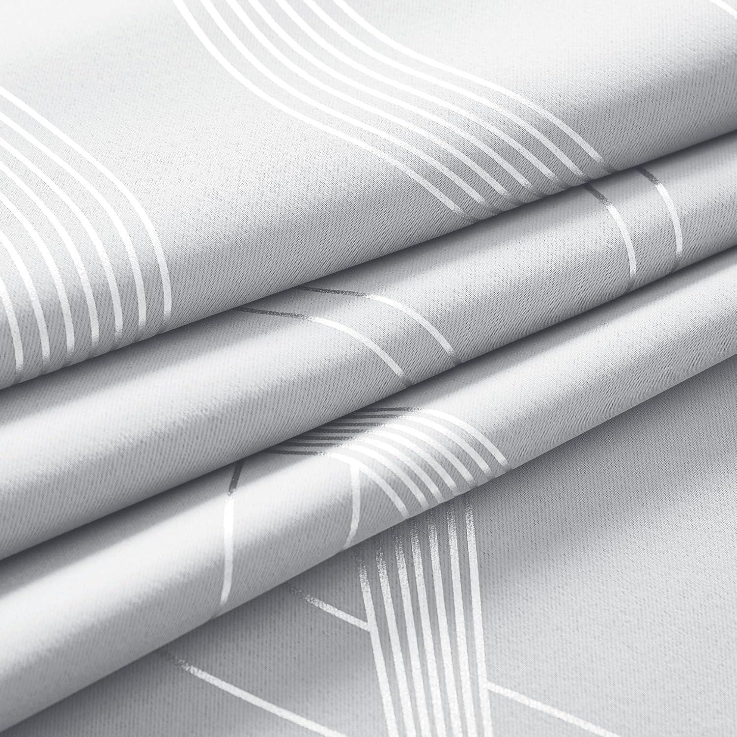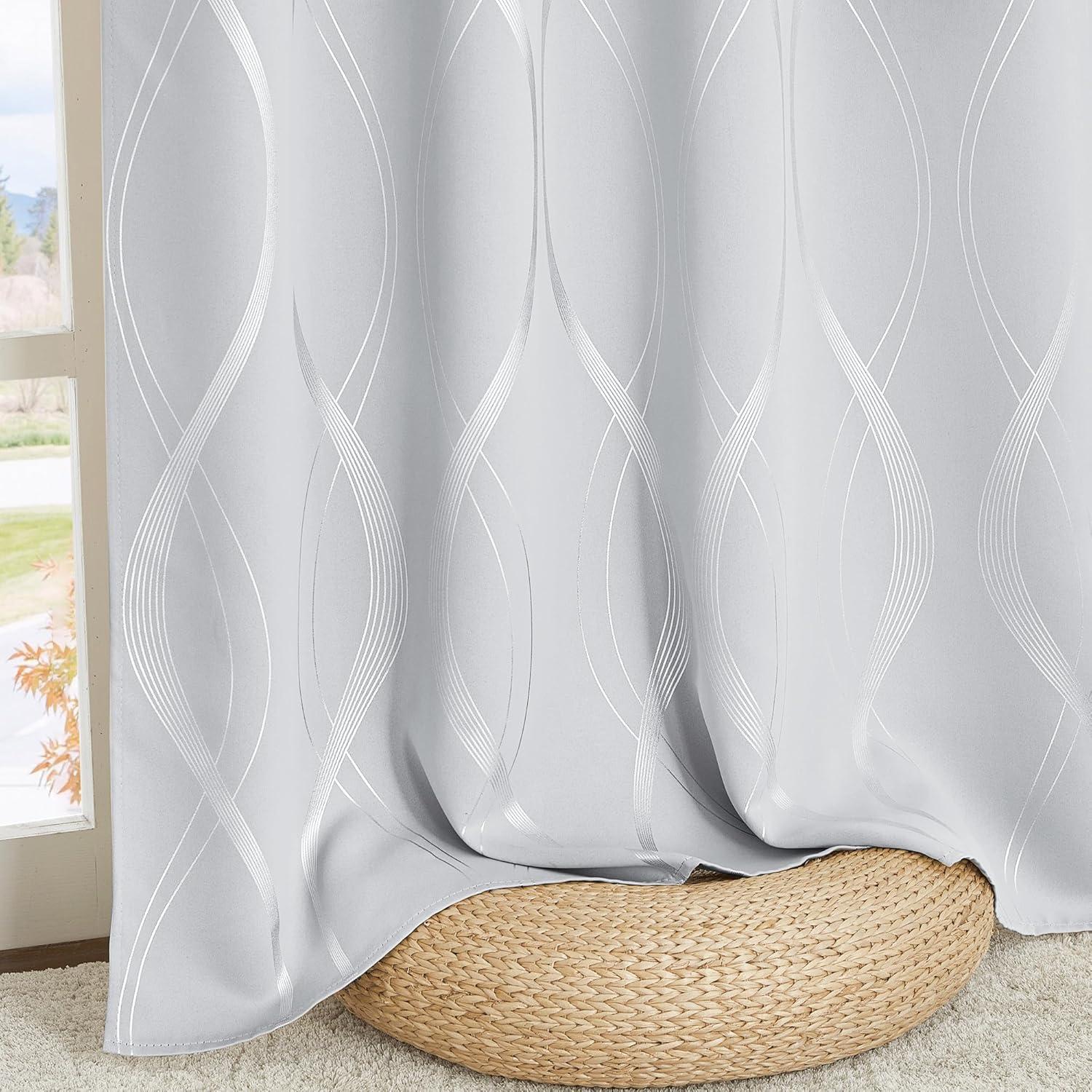 NICETOWN Blackout Short Curtains Panels for Bedroom, Microfiber Noise Reducing Thermal Insulated Wave Line Foil Print Design Drapes for Office, Classroom (Stone Blue, 2 Panels, 52 x 54 Inch)(100% Blackout - Greyish White)