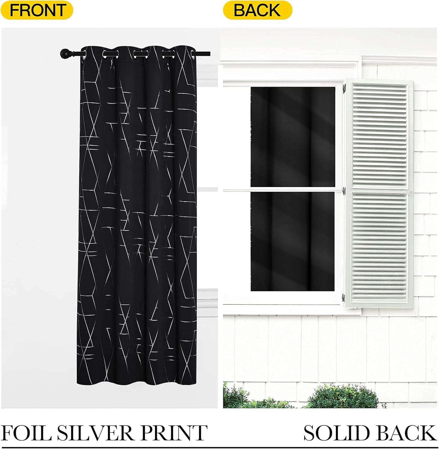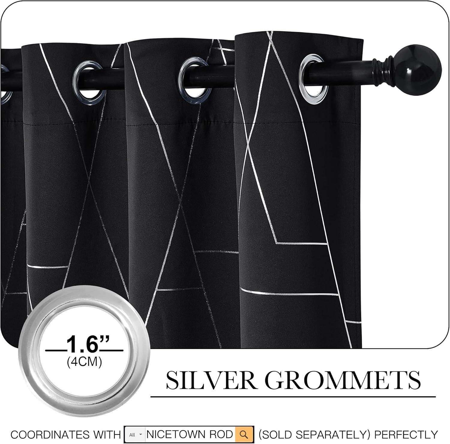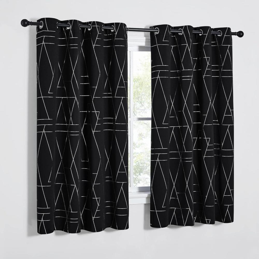 NICETOWN Blackout Short Curtains Panels for Bedroom, Microfiber Noise Reducing Thermal Insulated Wave Line Foil Print Design Drapes for Office, Classroom (Stone Blue, 2 Panels, 52 x 54 Inch)(2 – Black)