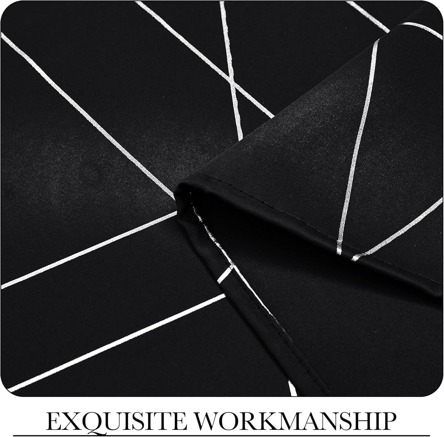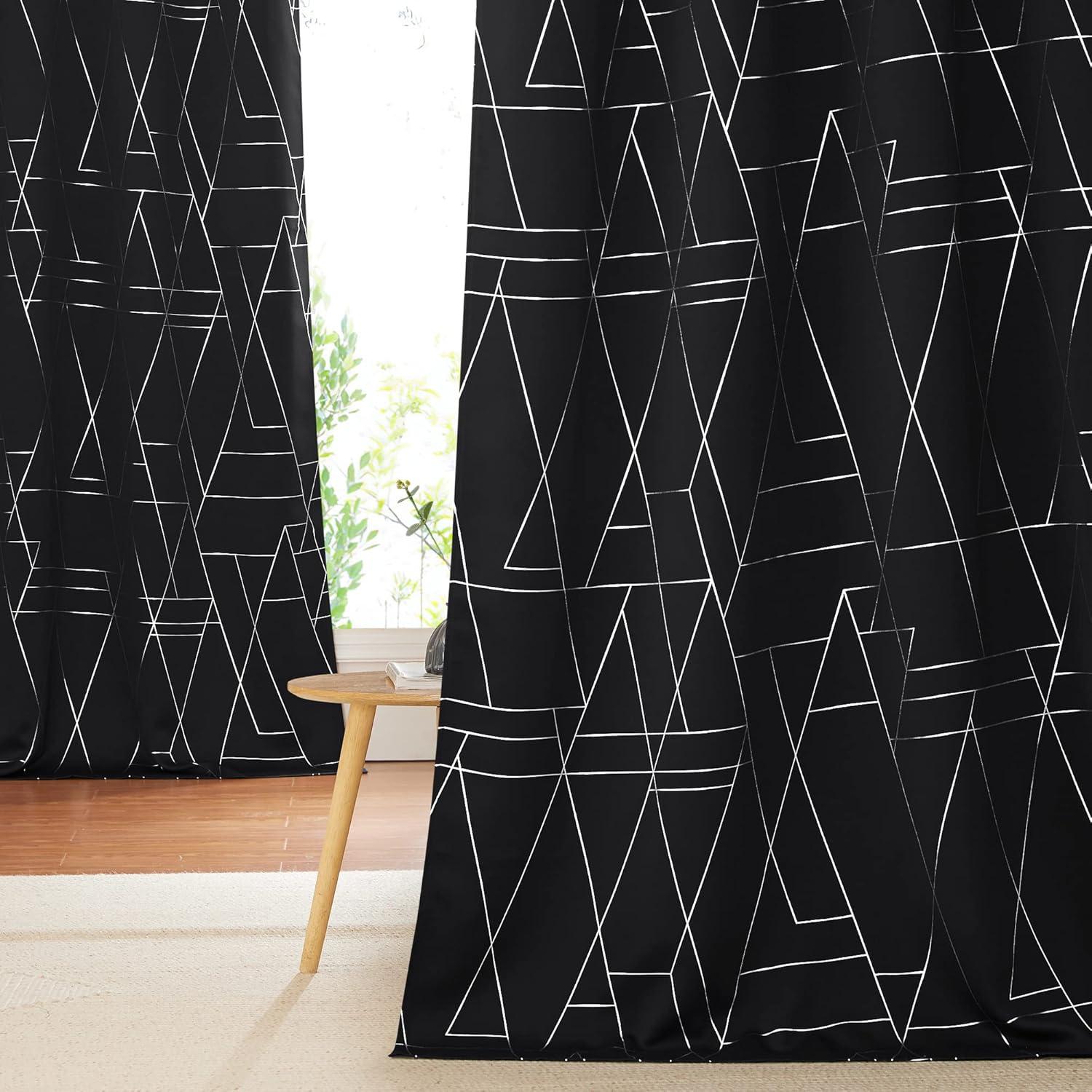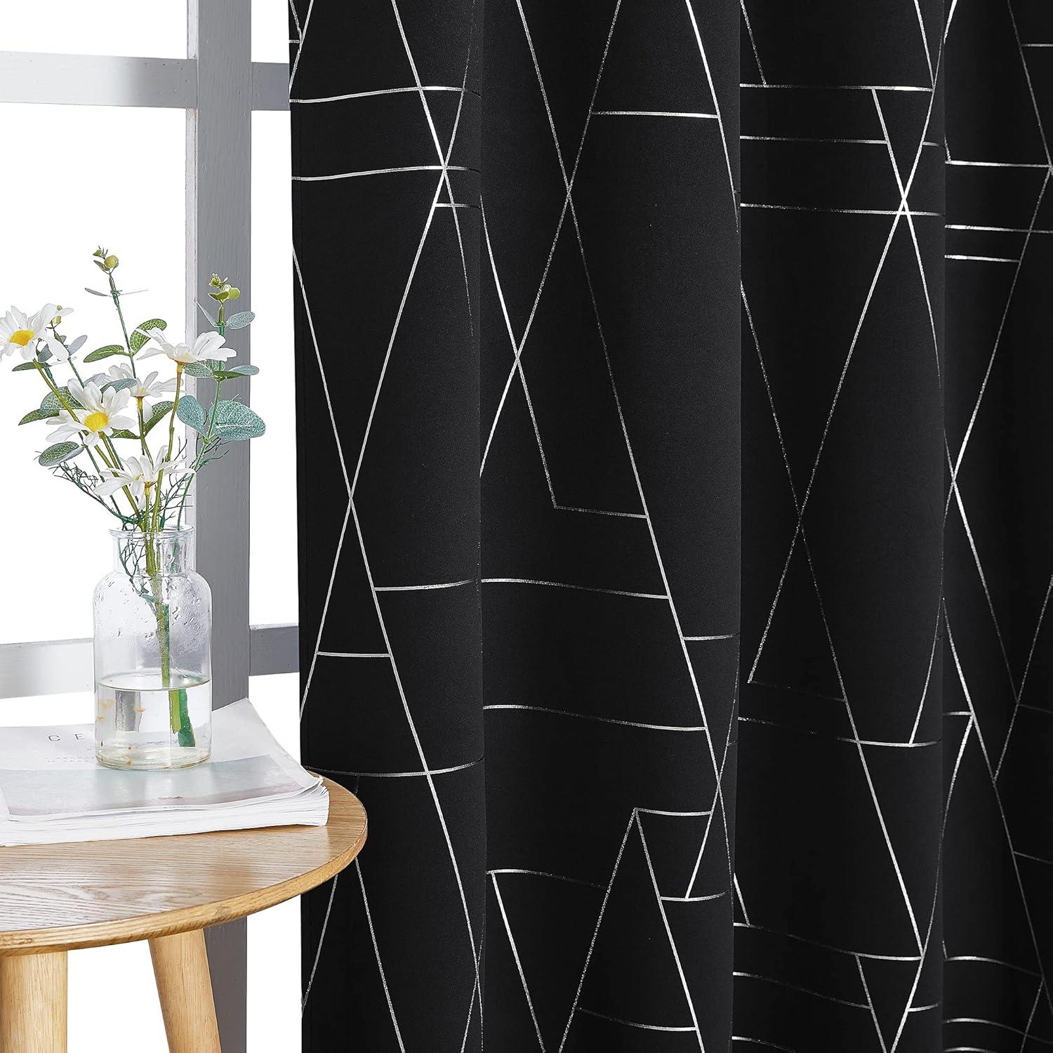 NICETOWN Blackout Short Curtains Panels for Bedroom, Microfiber Noise Reducing Thermal Insulated Wave Line Foil Print Design Drapes for Office, Classroom (Stone Blue, 2 Panels, 52 x 54 Inch)(2 – Black)