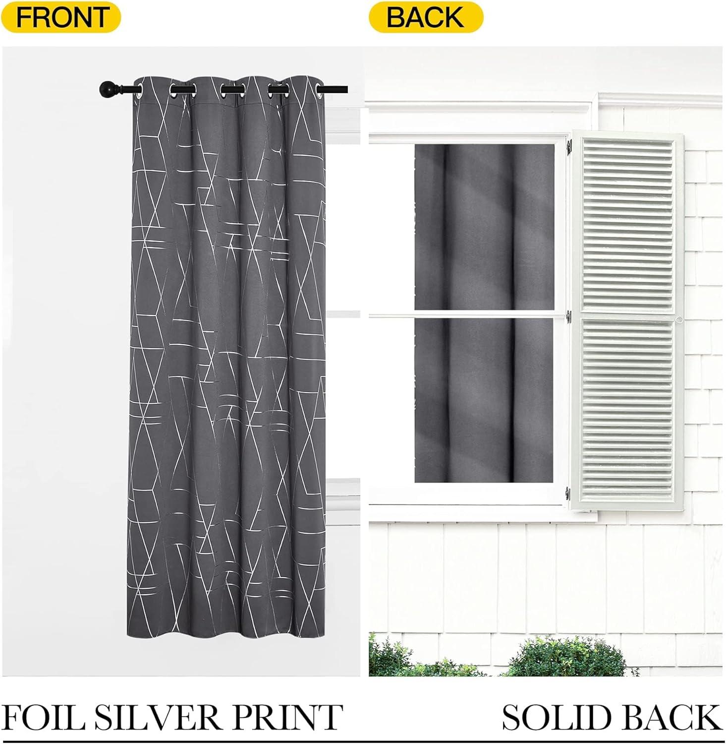NICETOWN Blackout Short Curtains Panels for Bedroom, Microfiber Noise Reducing Thermal Insulated Wave Line Foil Print Design Drapes for Office, Classroom (Stone Blue, 2 Panels, 52 x 54 Inch)(2 - Grey)