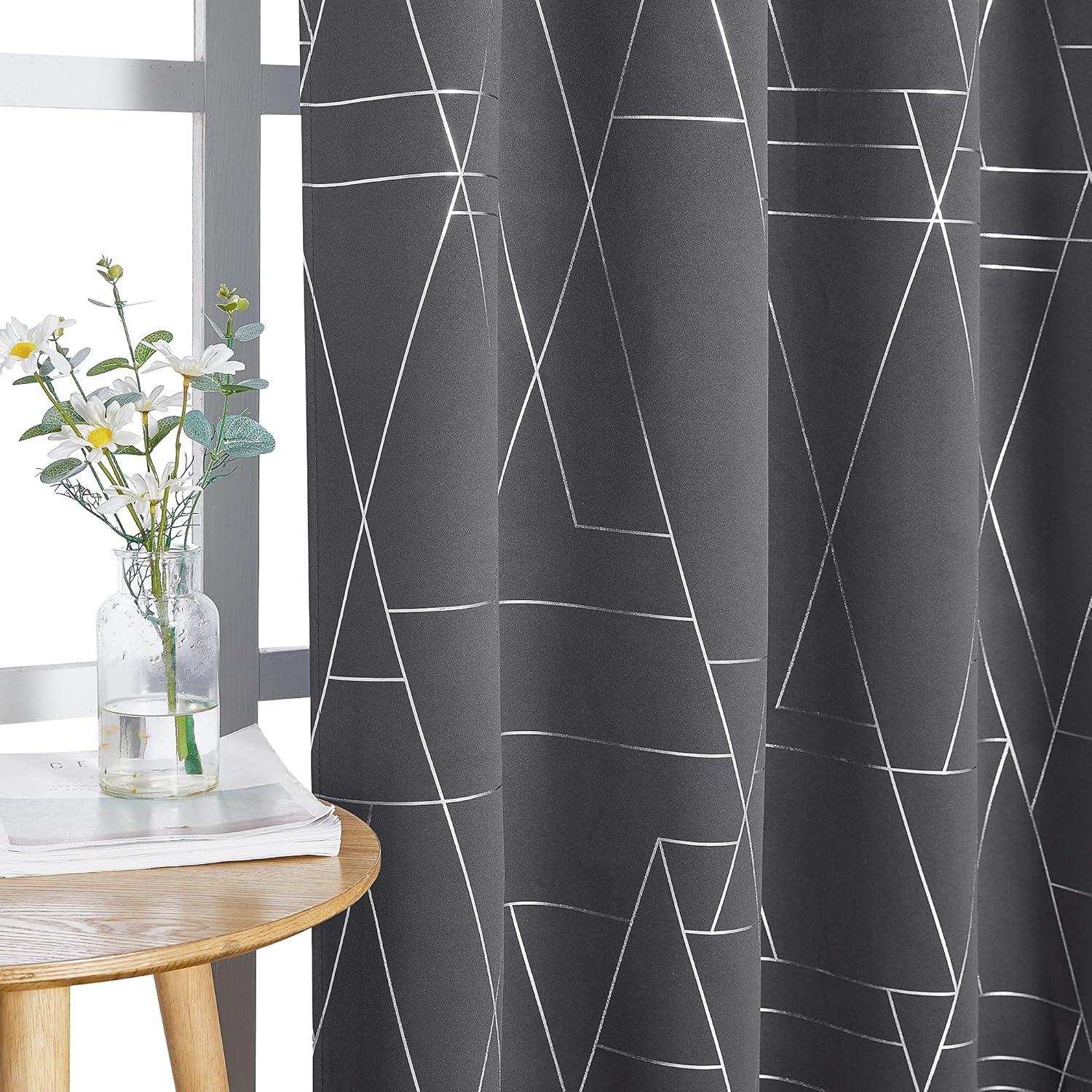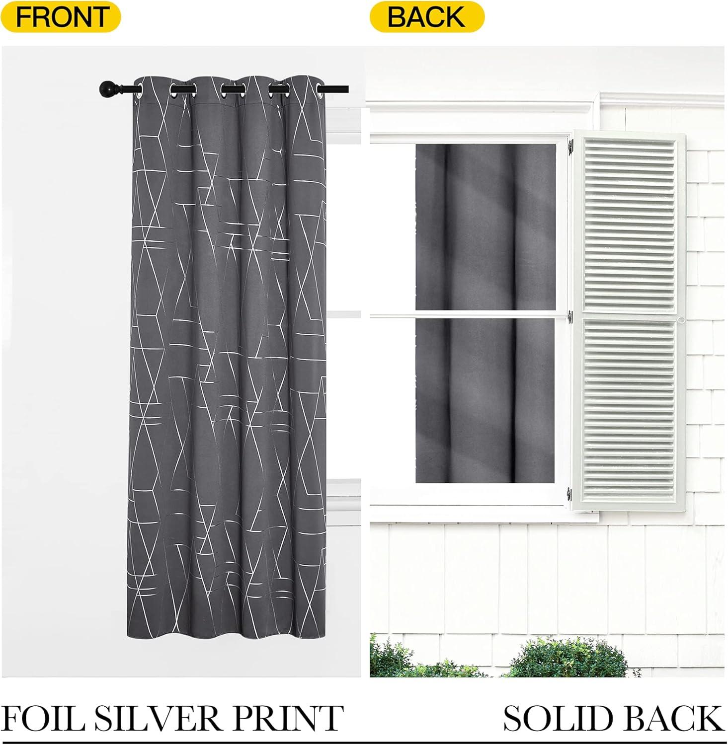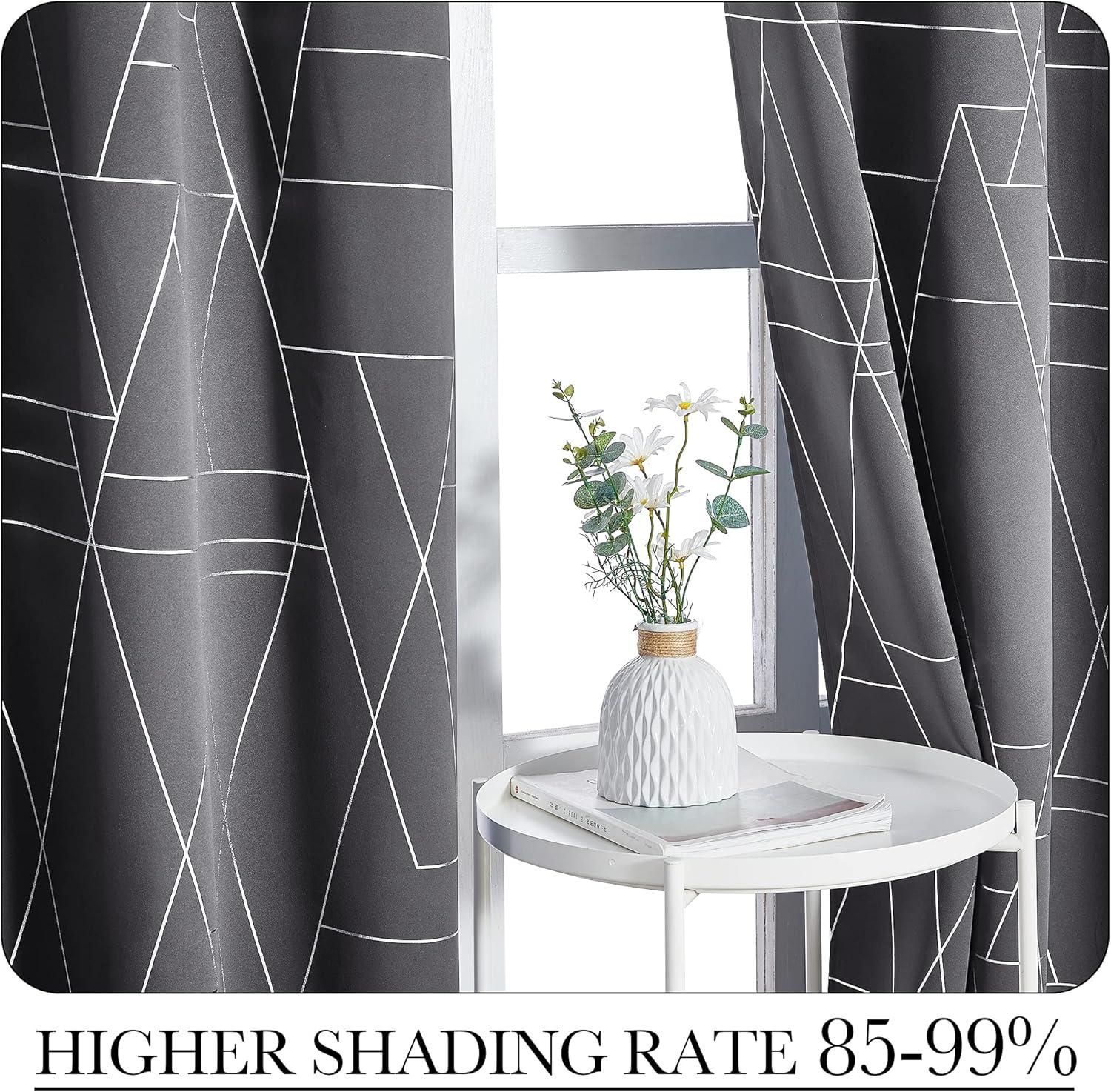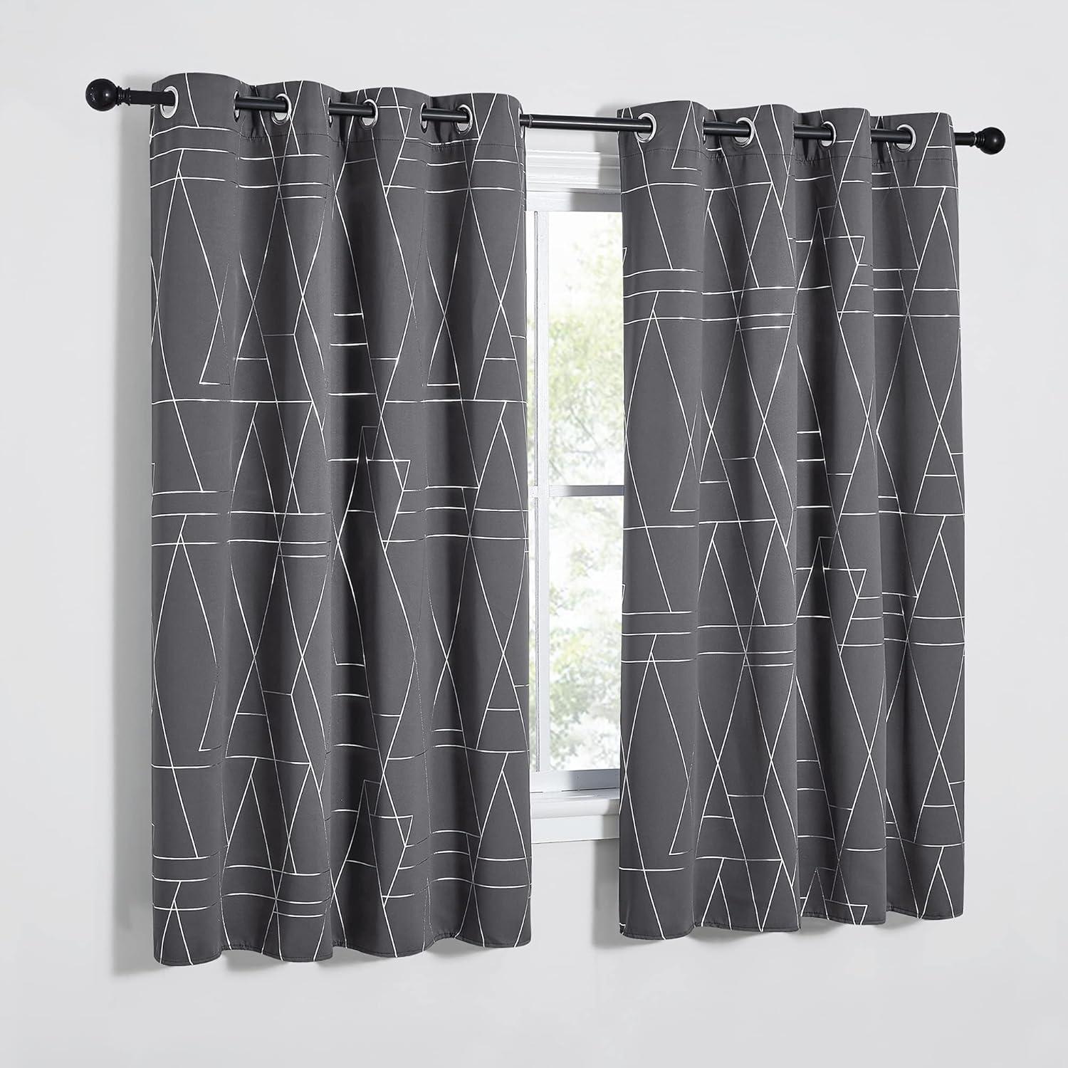 NICETOWN Blackout Short Curtains Panels for Bedroom, Microfiber Noise Reducing Thermal Insulated Wave Line Foil Print Design Drapes for Office, Classroom (Stone Blue, 2 Panels, 52 x 54 Inch)(2 – Grey)