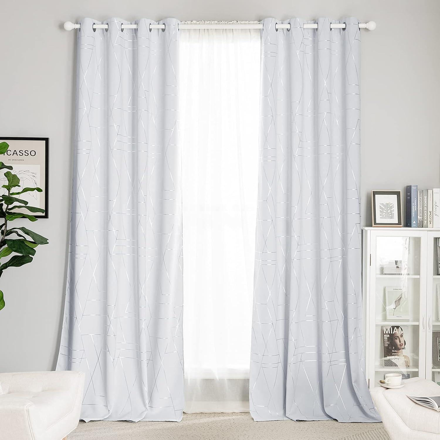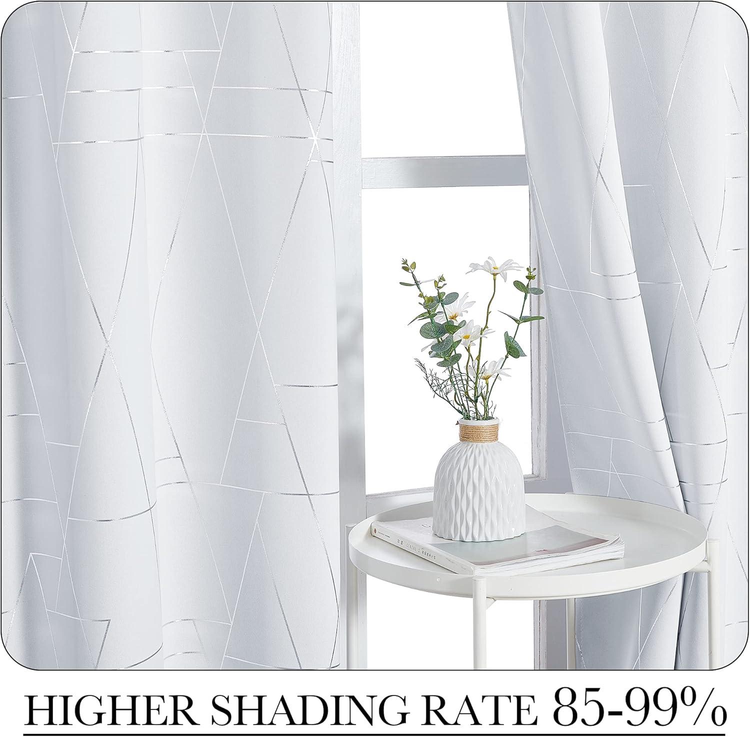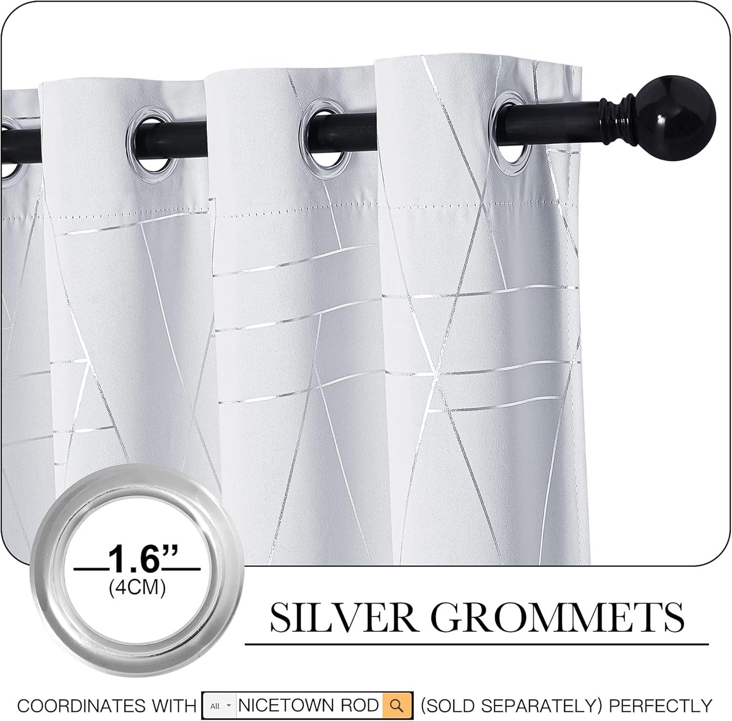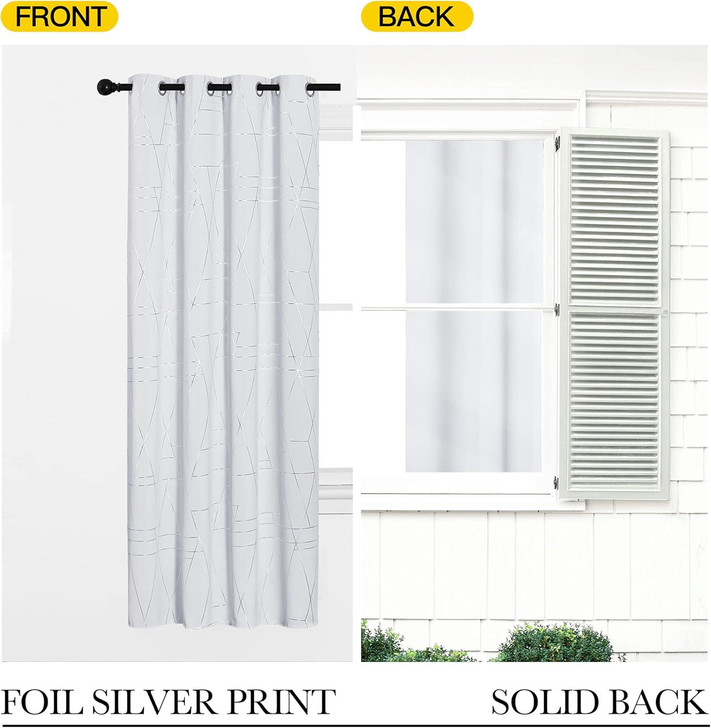 NICETOWN Blackout Short Curtains Panels for Bedroom, Microfiber Noise Reducing Thermal Insulated Wave Line Foil Print Design Drapes for Office, Classroom (Stone Blue, 2 Panels, 52 x 54 Inch)(2 – Greyish White)