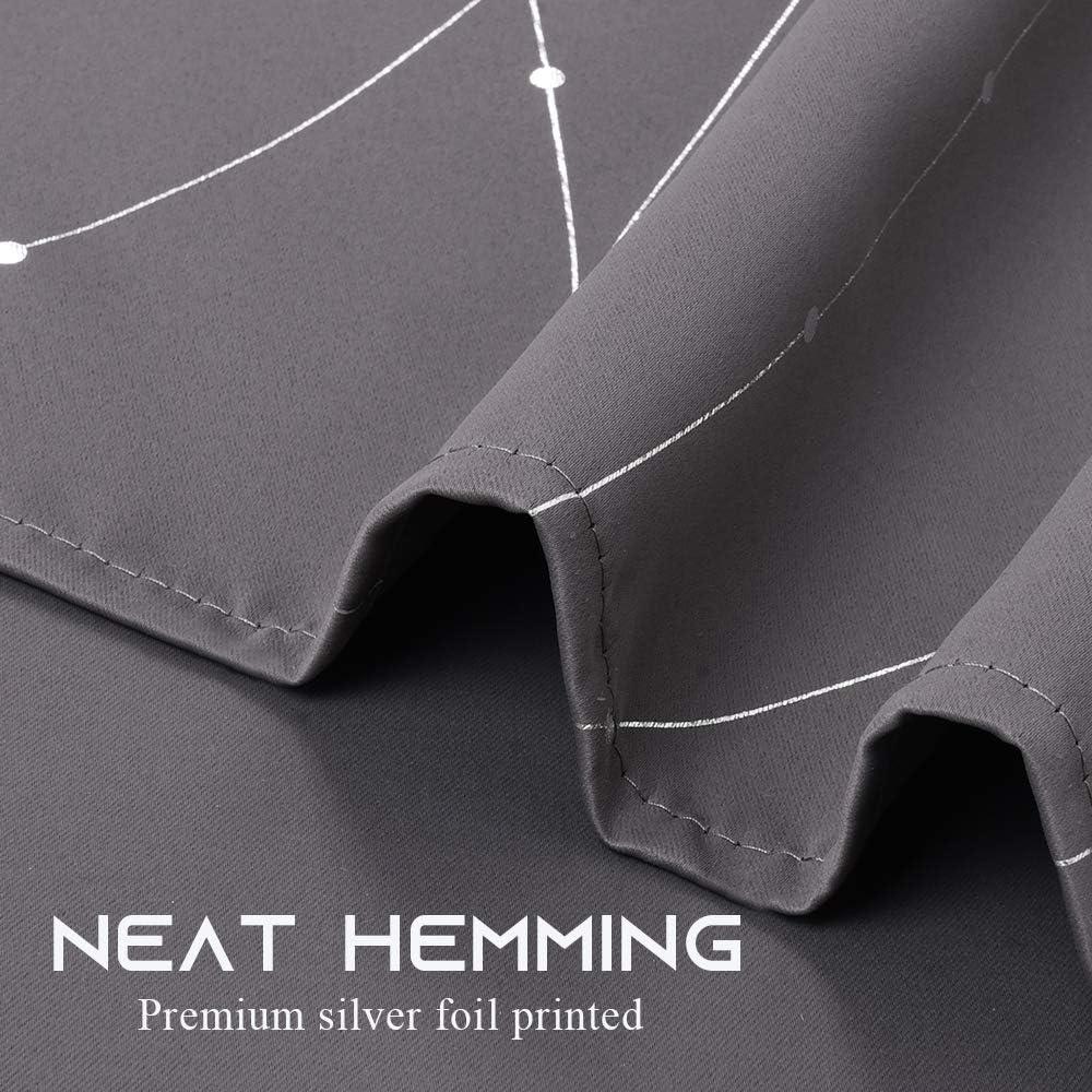 NICETOWN Blackout Short Curtains Panels for Bedroom, Microfiber Noise Reducing Thermal Insulated Wave Line Foil Print Design Drapes for Office, Classroom (Stone Blue, 2 Panels, 52 x 54 Inch)(4 - Grey)