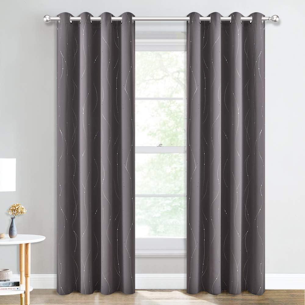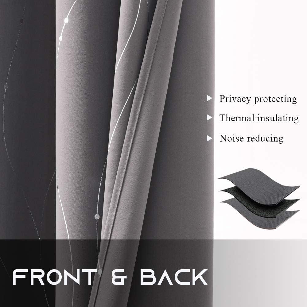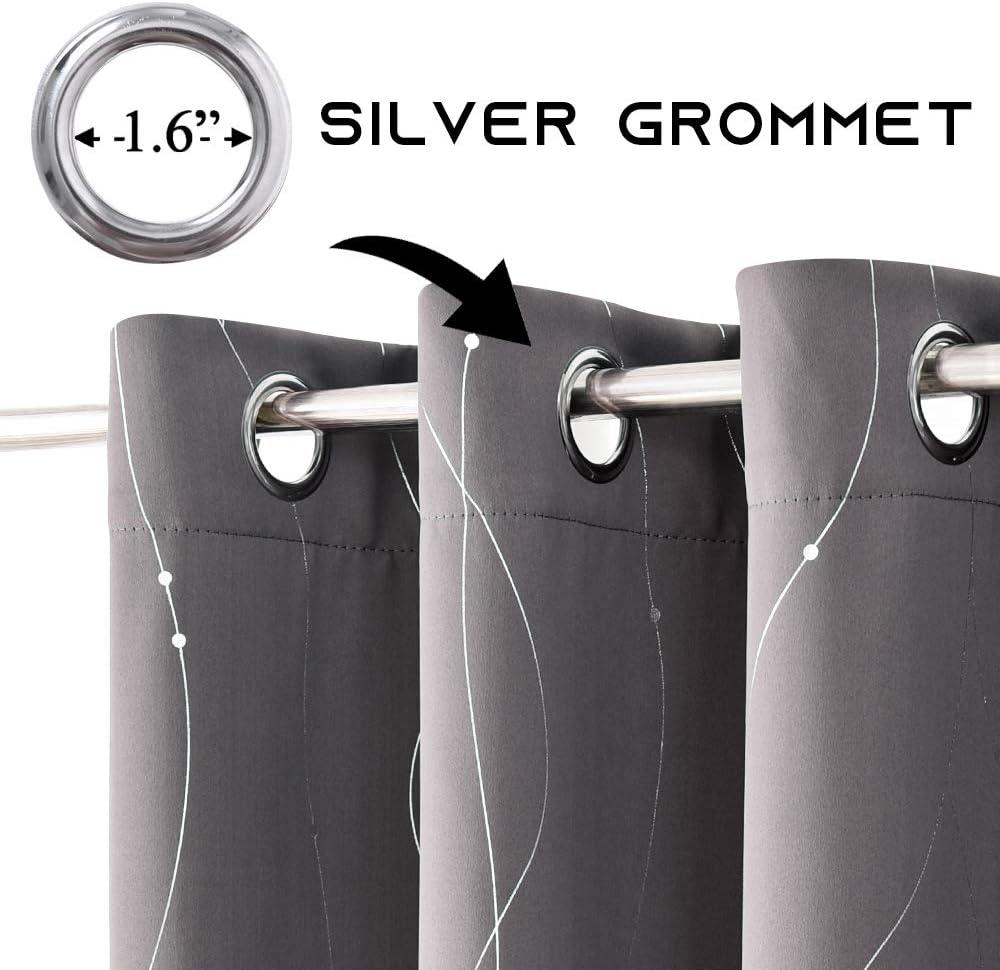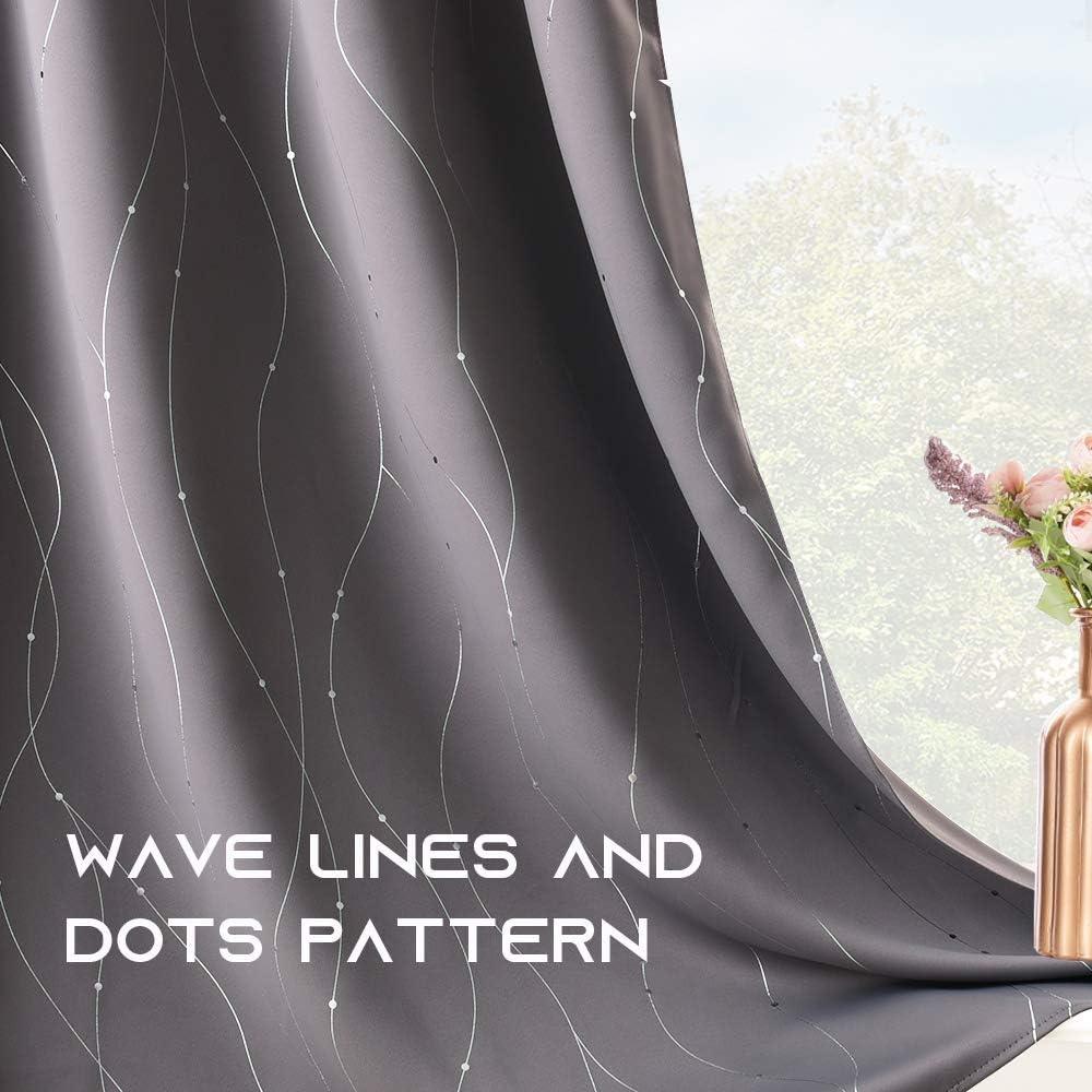 NICETOWN Blackout Short Curtains Panels for Bedroom, Microfiber Noise Reducing Thermal Insulated Wave Line Foil Print Design Drapes for Office, Classroom (Stone Blue, 2 Panels, 52 x 54 Inch)(4 – Grey)