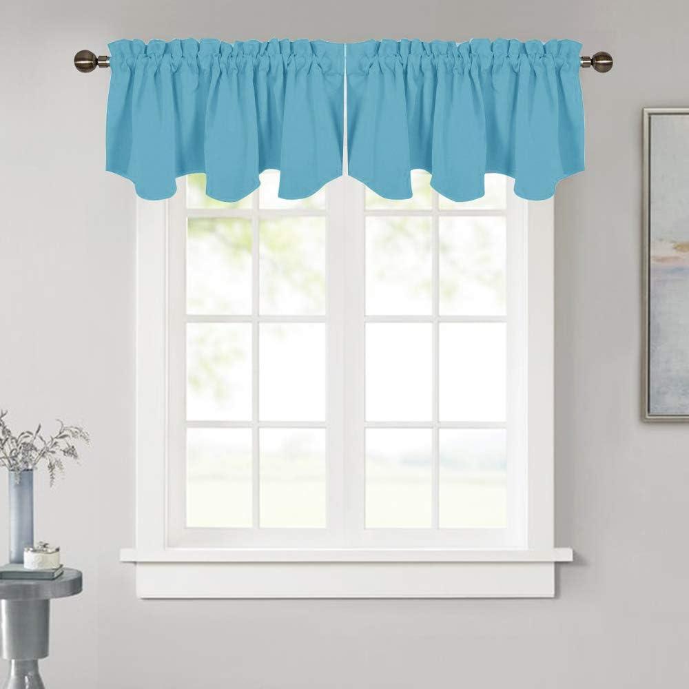 NICETOWN Blackout Tiers Window Valances - 52 by 18 inches Blackout Curtains Pole Pocket Kitchen/Bathroom/Living Room/Boys Bedroom Scalloped Valances, Navy Blue, 1 Pair(Teal Blue)
