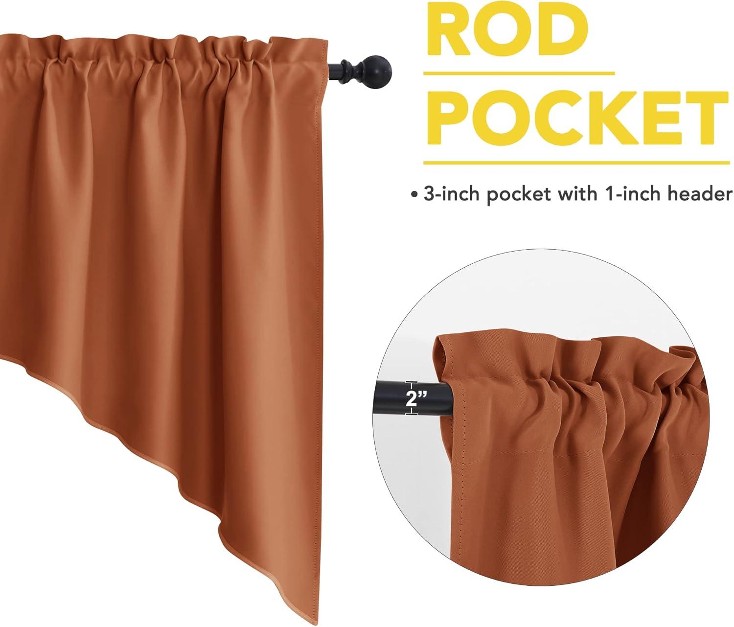 NICETOWN Blackout Window Treatment Pole Pocket Kitchen Tier Curtains- Tailored Scalloped Valance/Swags for Living Room (One Pair, 36 Wide by 63-inches Long Each Panel, Grey)(Burnt Orange)