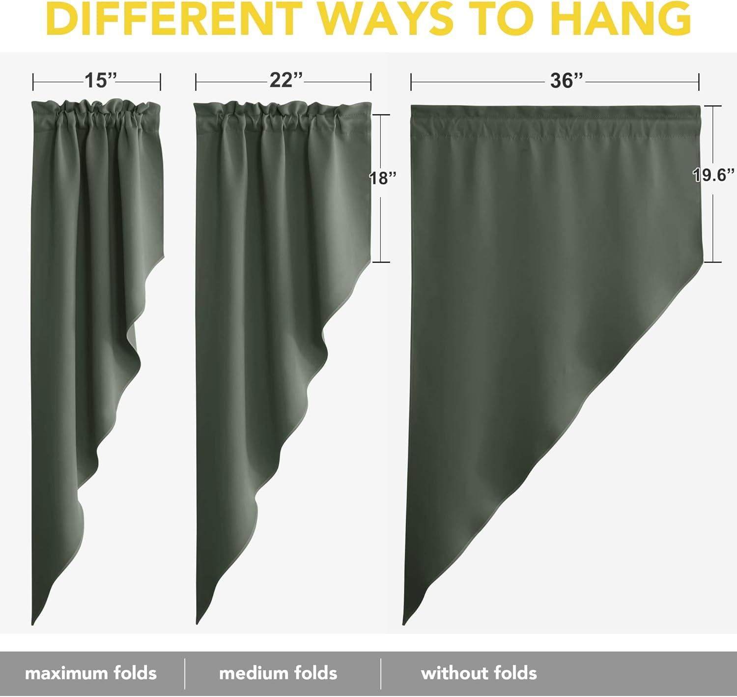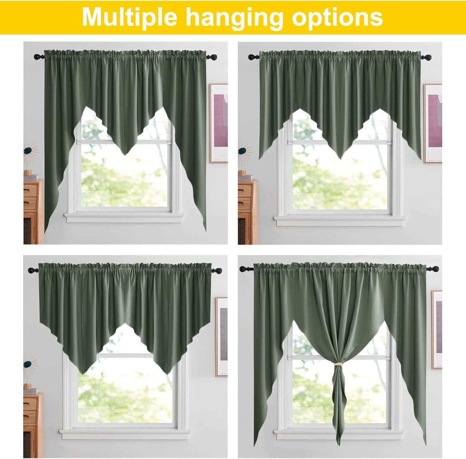 Ready Made: The package includes 2-rod pocket Scalloped Swag Curtains, each panel measuring W36 x L63 inches and the length in the center is 18 inches. Rod Pocket (2.8″ diameter) fits for all standard curtains rod and updates the look of your window in an instant.