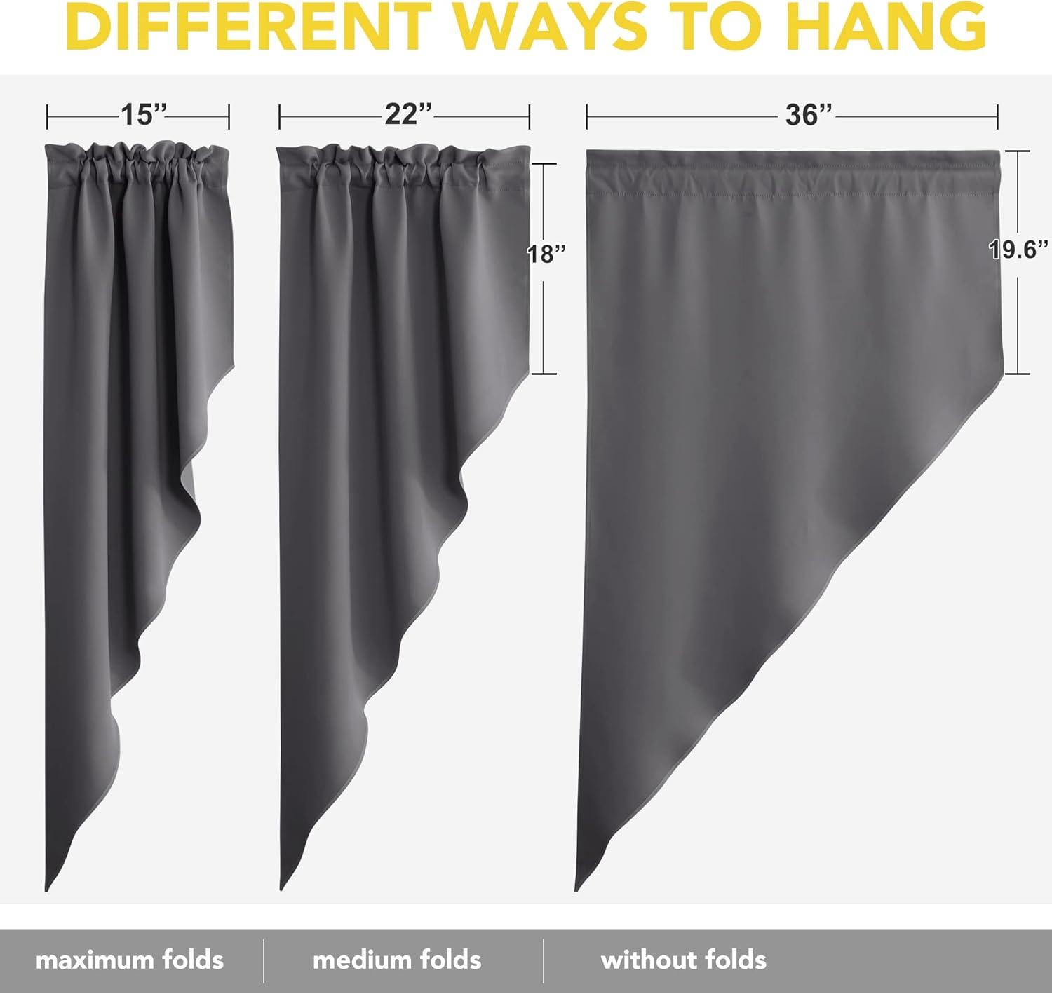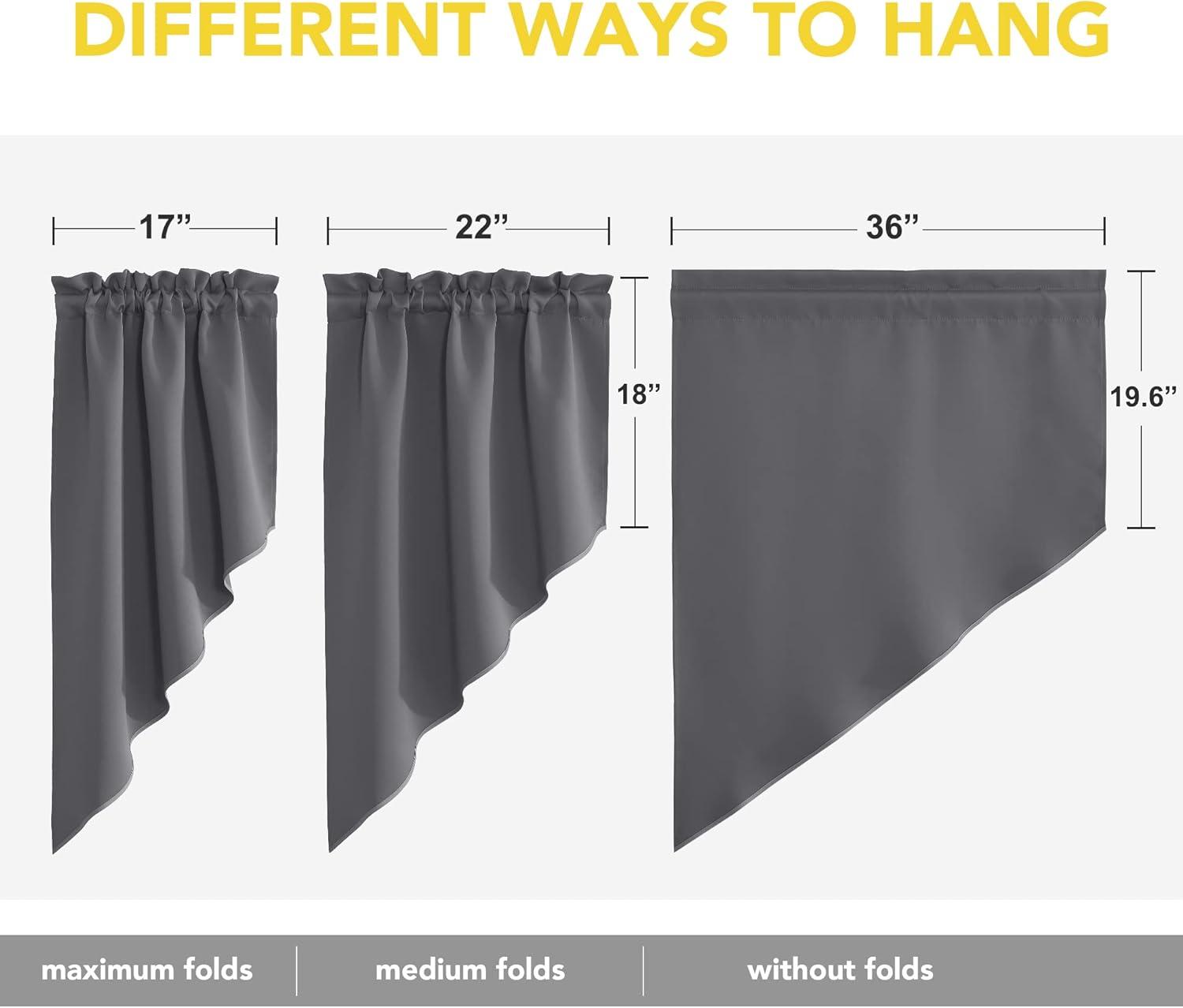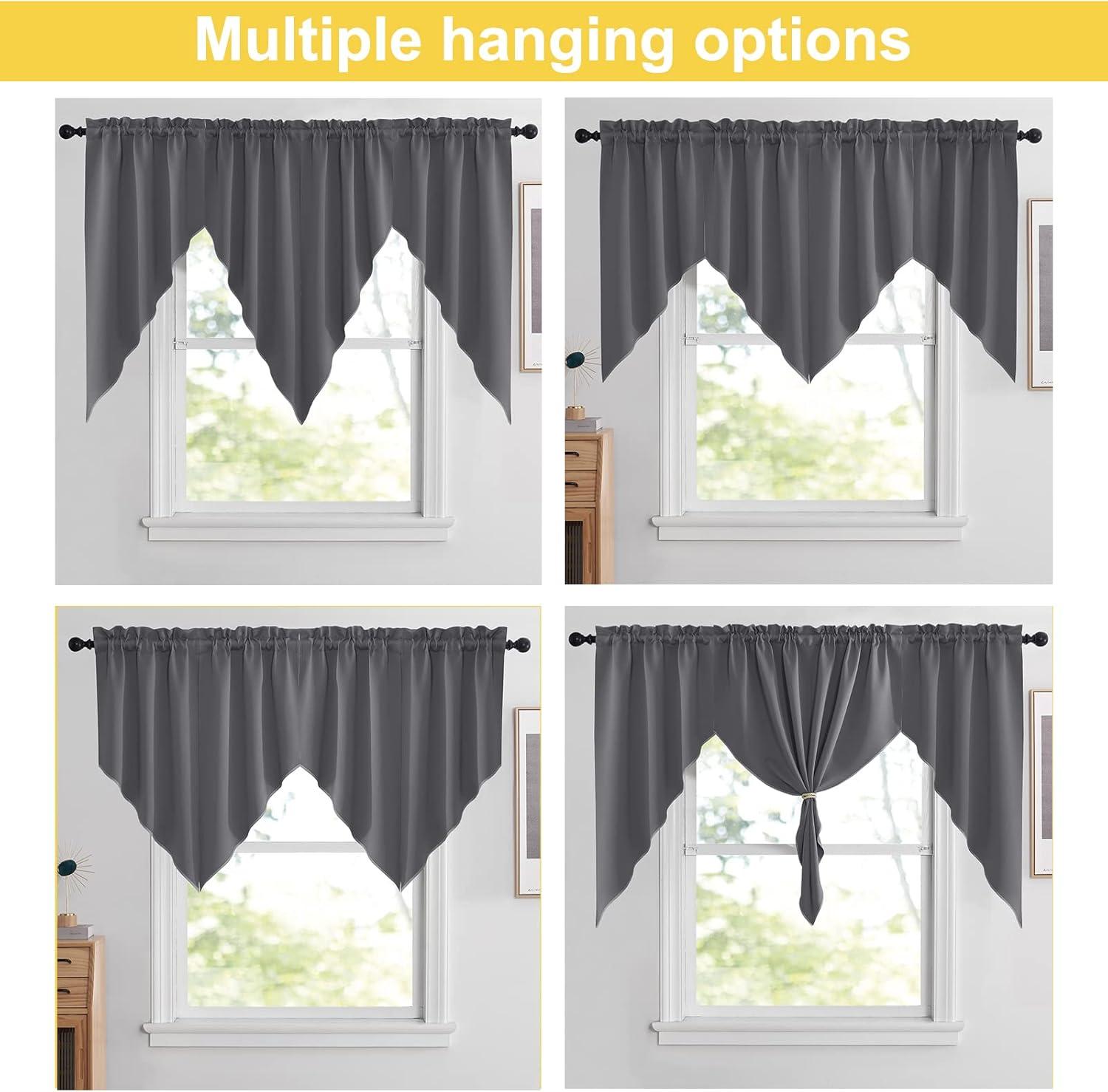 Ready Made: The package includes 2-rod pocket Scalloped Swag Curtains, each panel measuring W36 x L63 inches and the length in the center is 18 inches. Rod Pocket (2.8″ diameter) fits for all standard curtains rod and updates the look of your window in an instant.