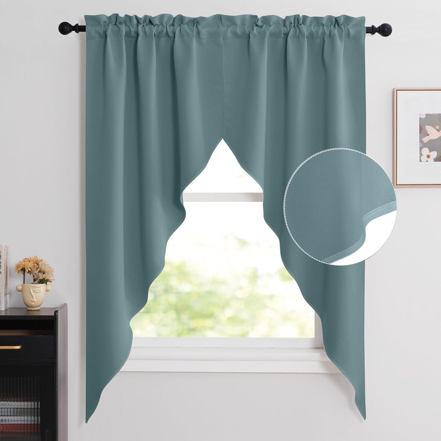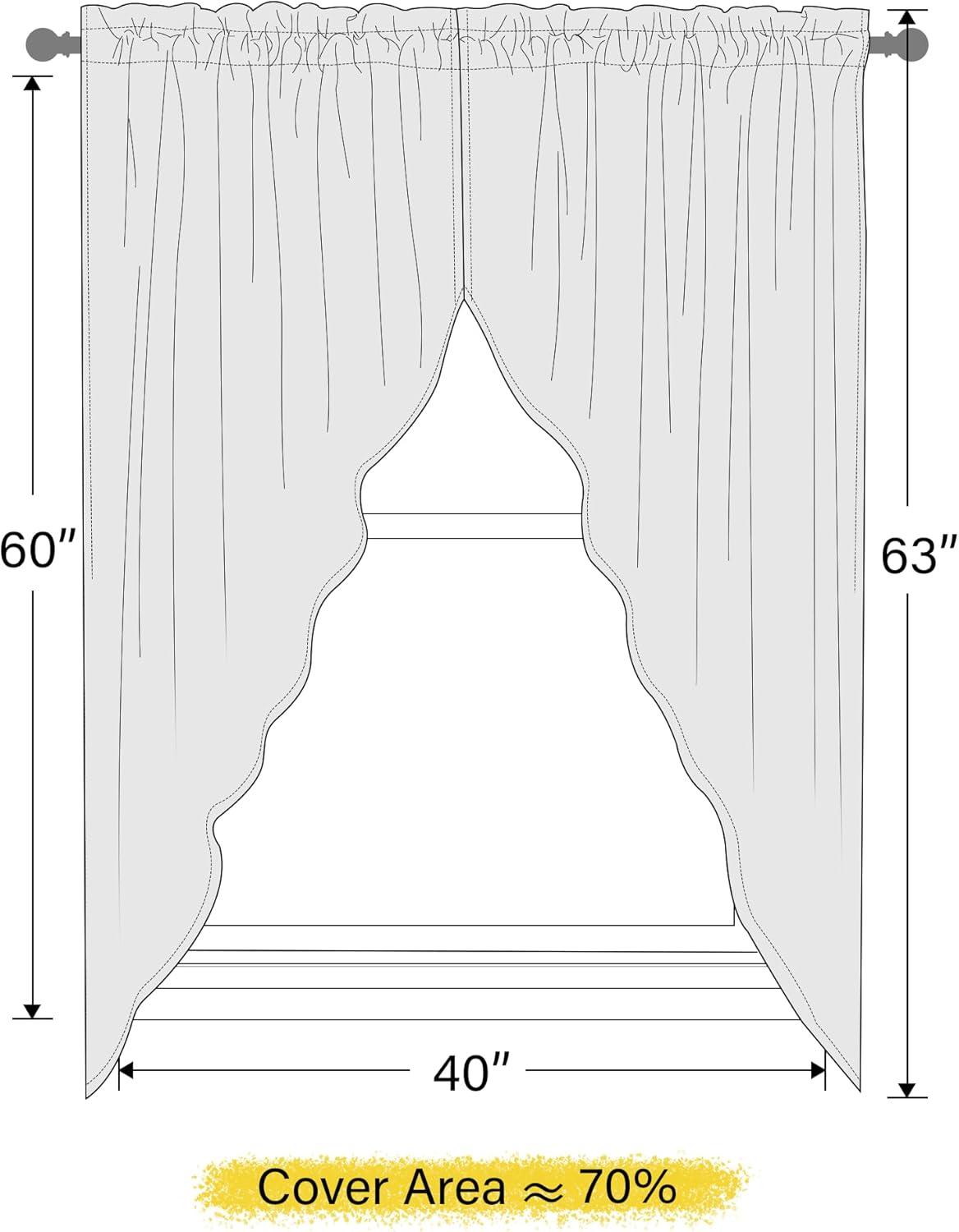 Ready Made: The package includes 2-rod pocket Scalloped Swag Curtains, each panel measuring W36 x L63 inches and the length in the center is 18 inches. Rod Pocket (2.8″ diameter) fits for all standard curtains rod and updates the look of your window in an instant.