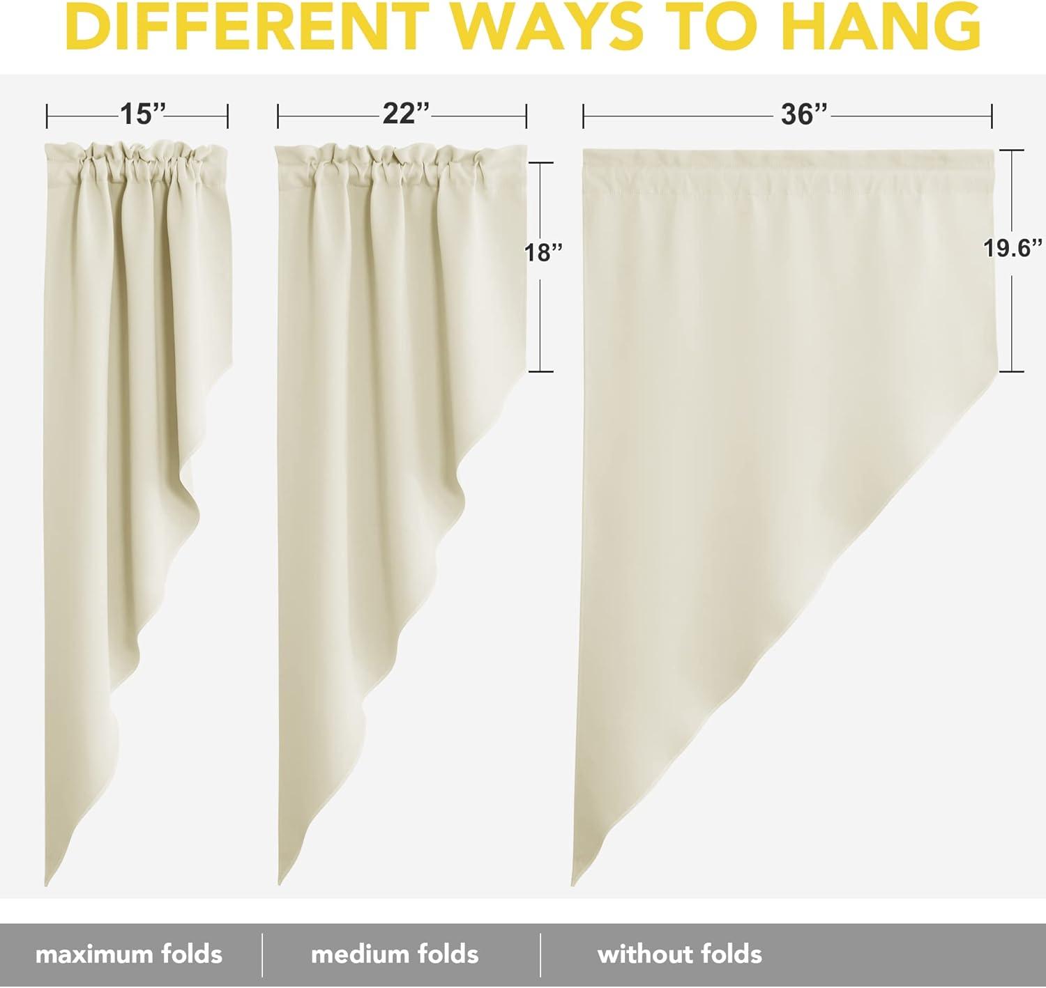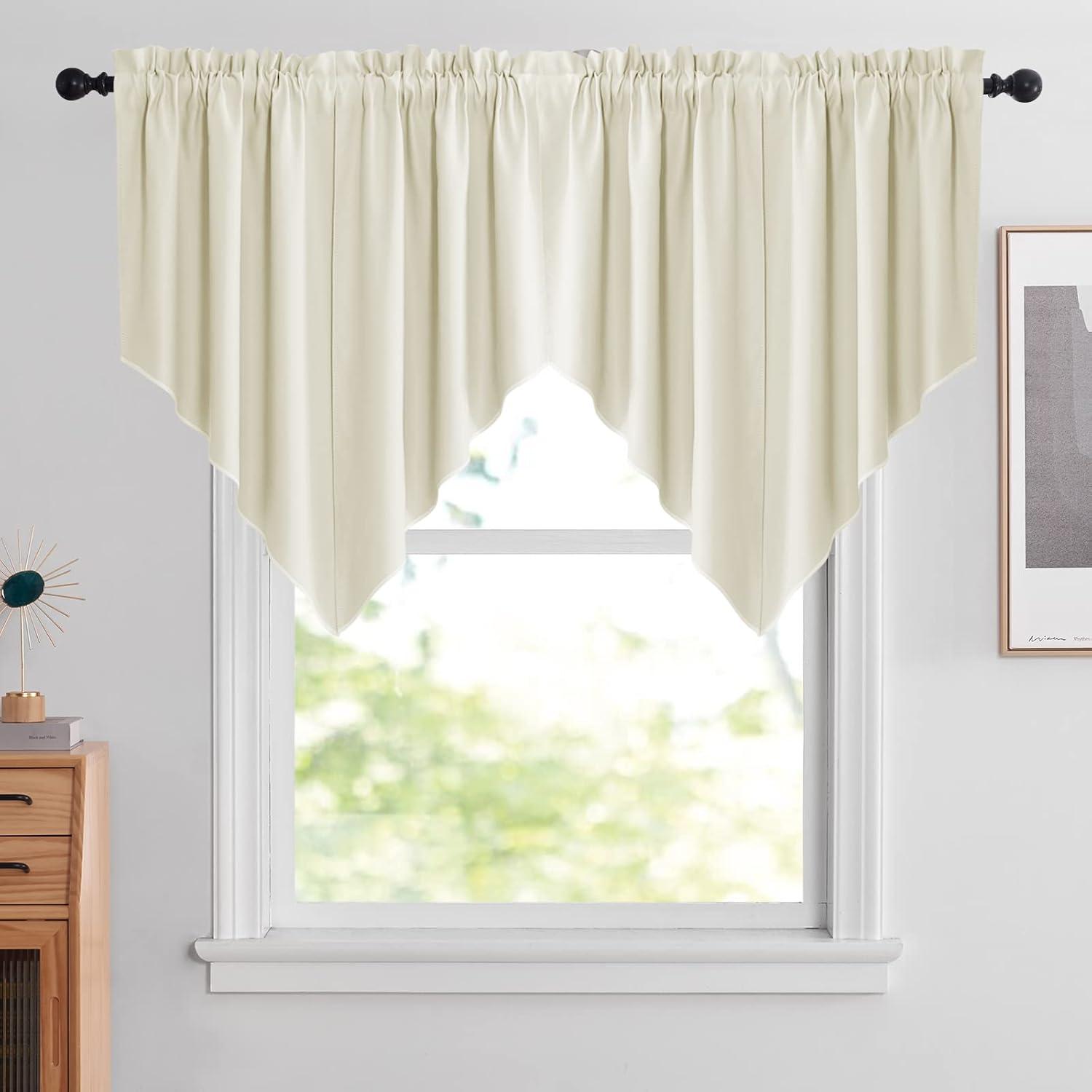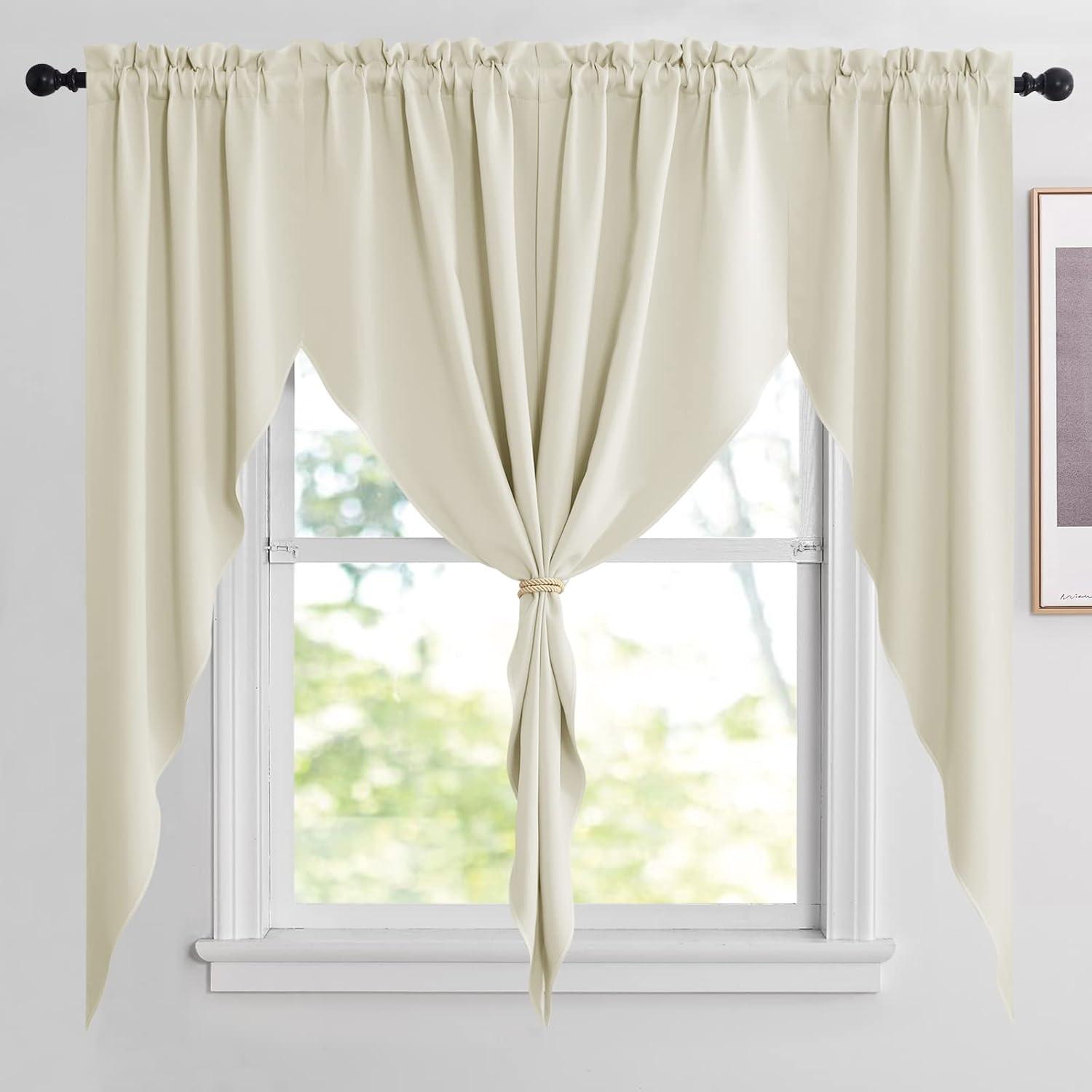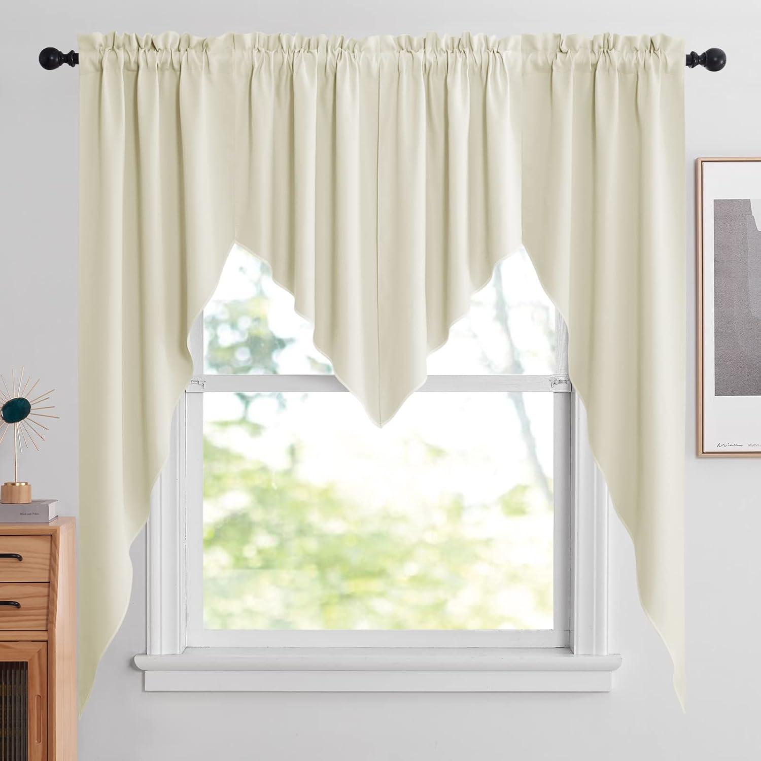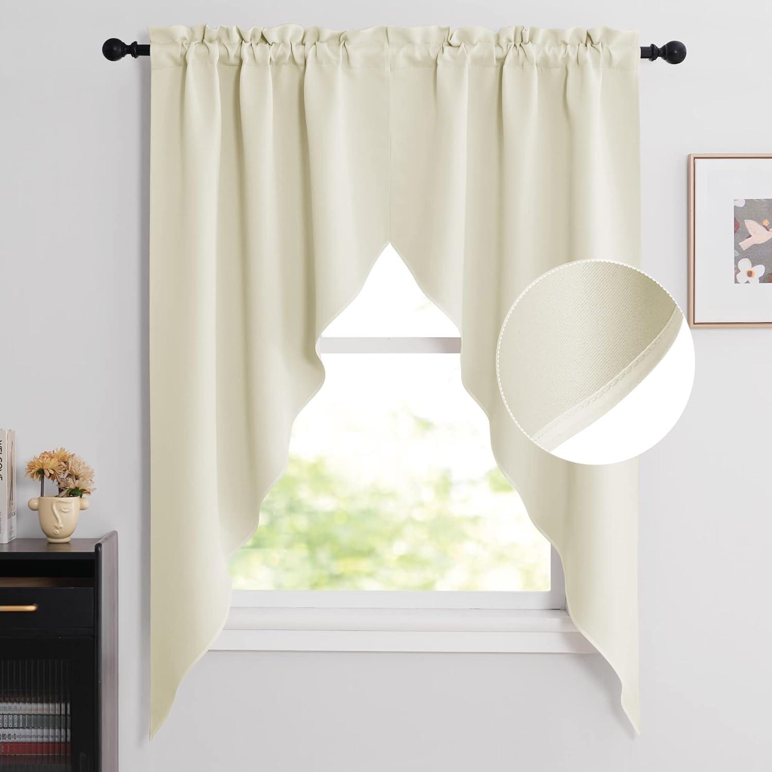 Ready Made: The package includes 2-rod pocket Scalloped Swag Curtains, each panel measuring W36 x L63 inches and the length in the center is 18 inches. Rod Pocket (2.8″ diameter) fits for all standard curtains rod and updates the look of your window in an instant.