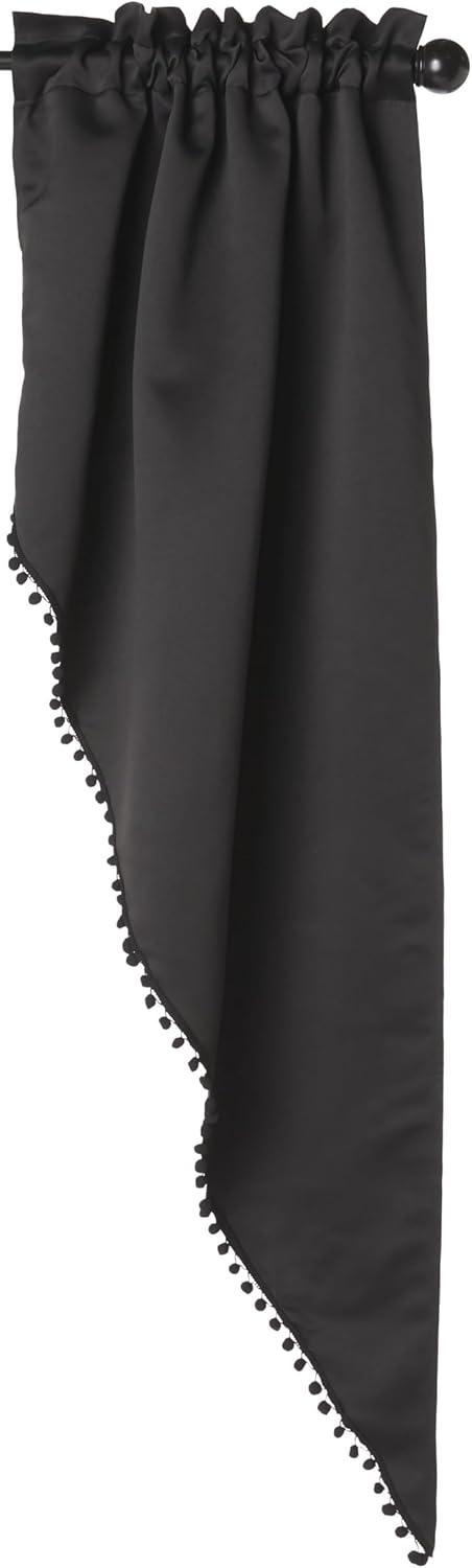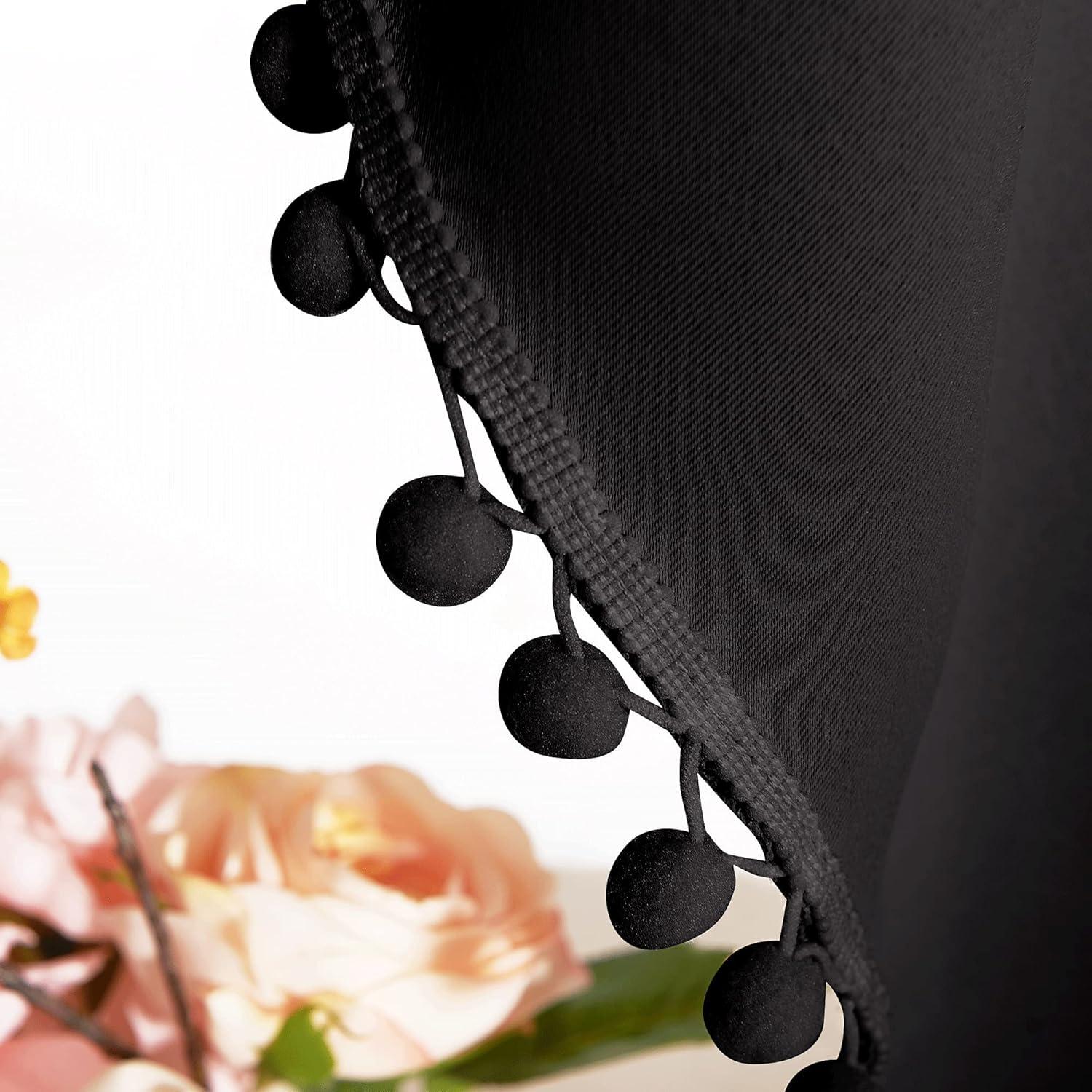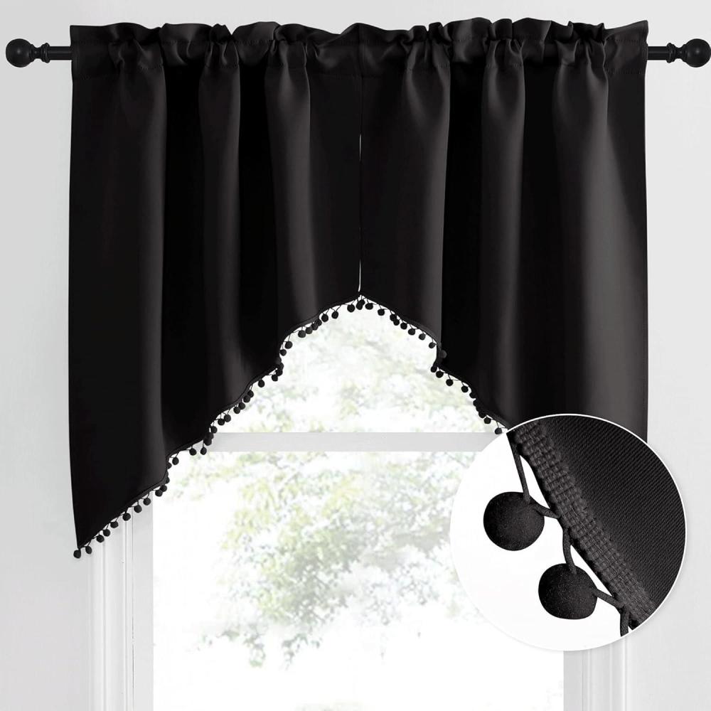 NICETOWN Blackout Window Treatment Pole Pocket Kitchen Tier Curtains- Tailored Scalloped Valance/Swags for Living Room (One Pair, 36 Wide by 63-inches Long Each Panel, Grey)(Pom Pom-black)