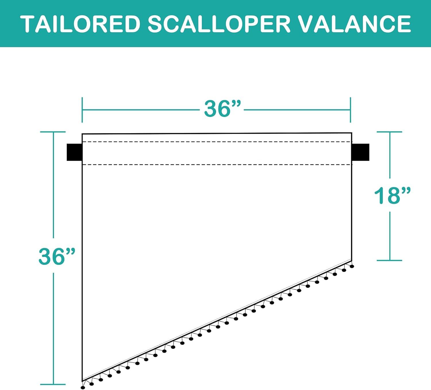 Ready Made: The package includes 2-rod pocket Scalloped Swag Curtains, each panel measuring W36 x L63 inches and the length in the center is 18 inches. Rod Pocket (2.8″ diameter) fits for all standard curtains rod and updates the look of your window in an instant.