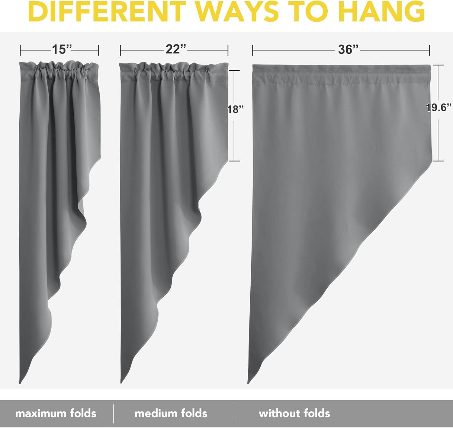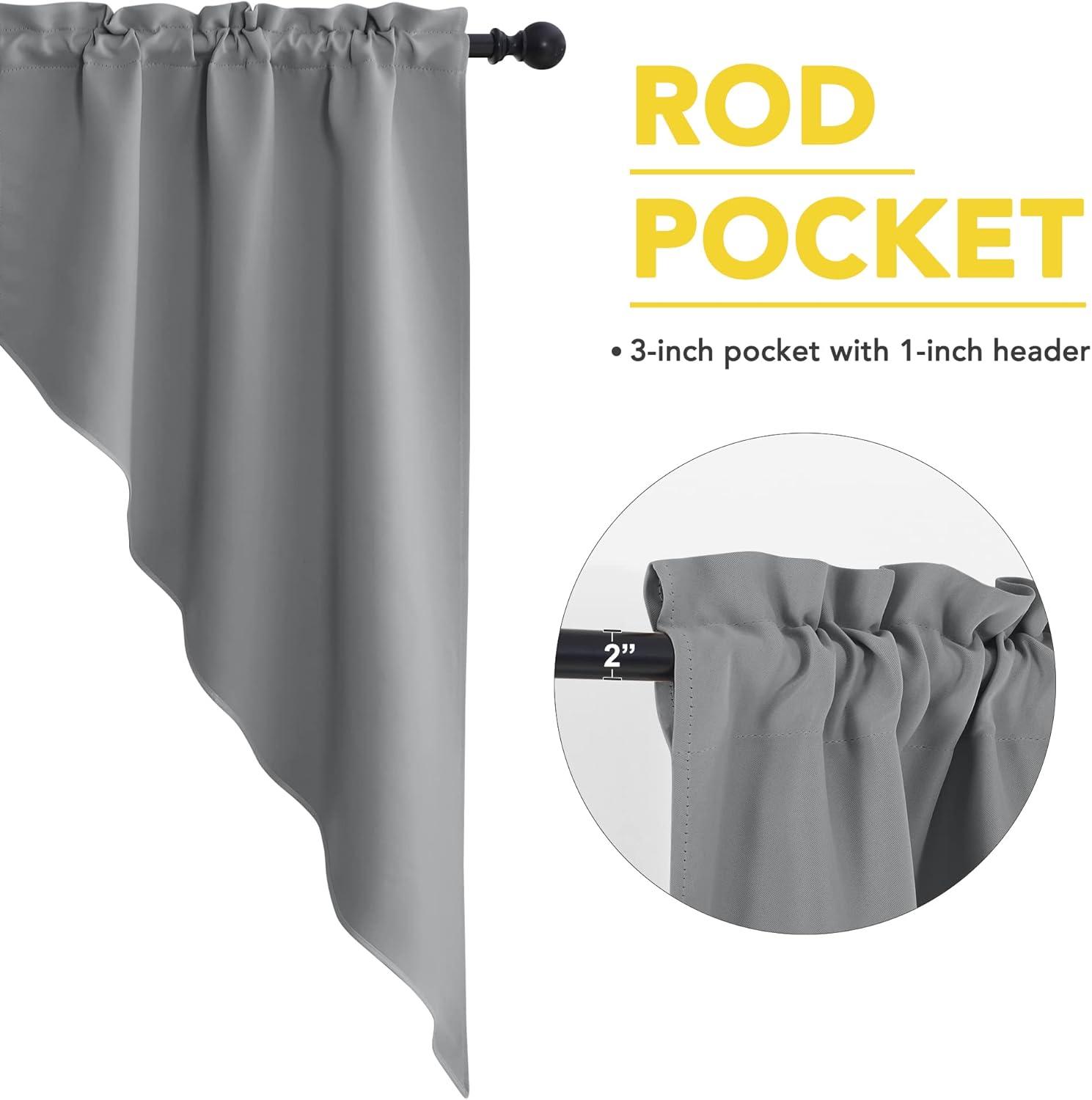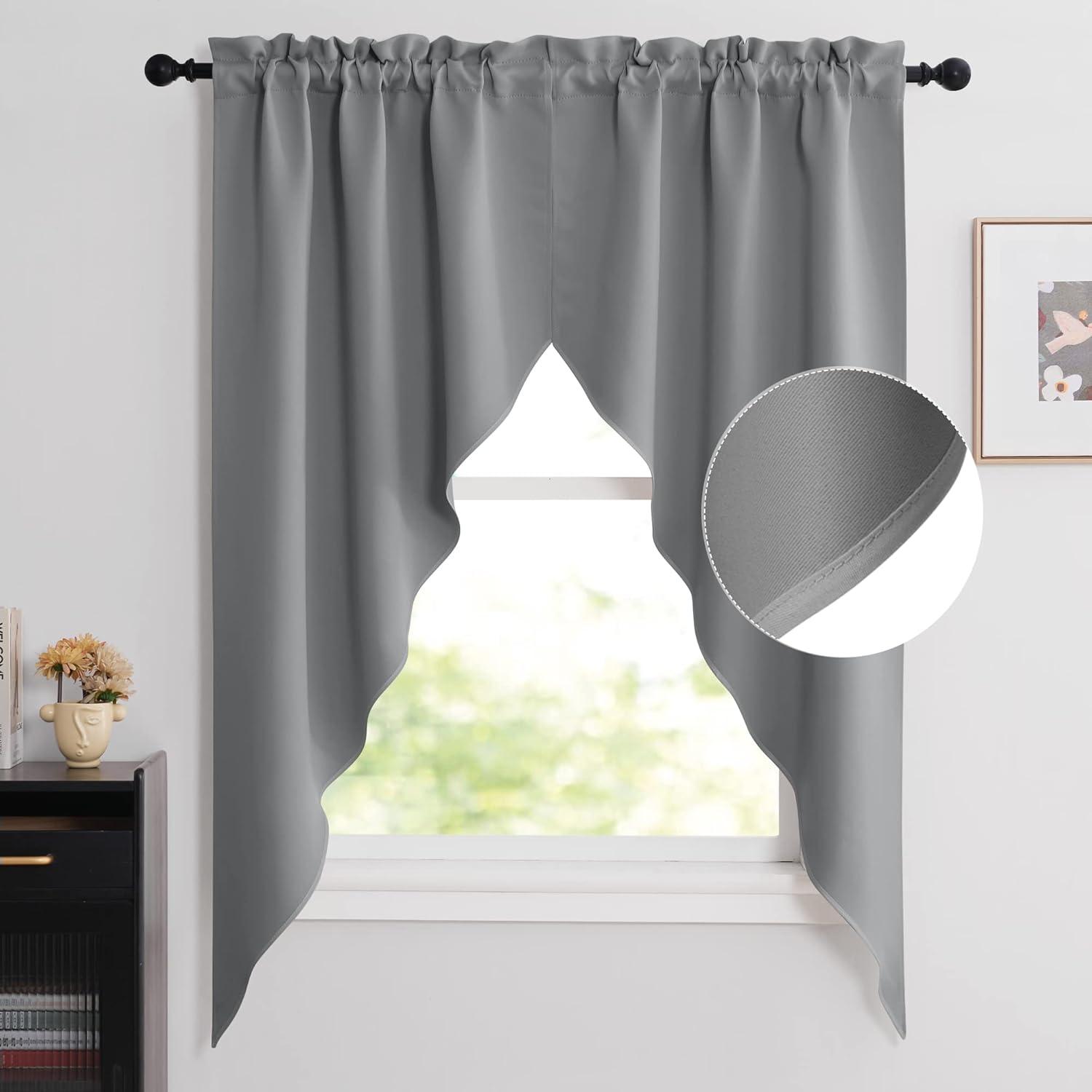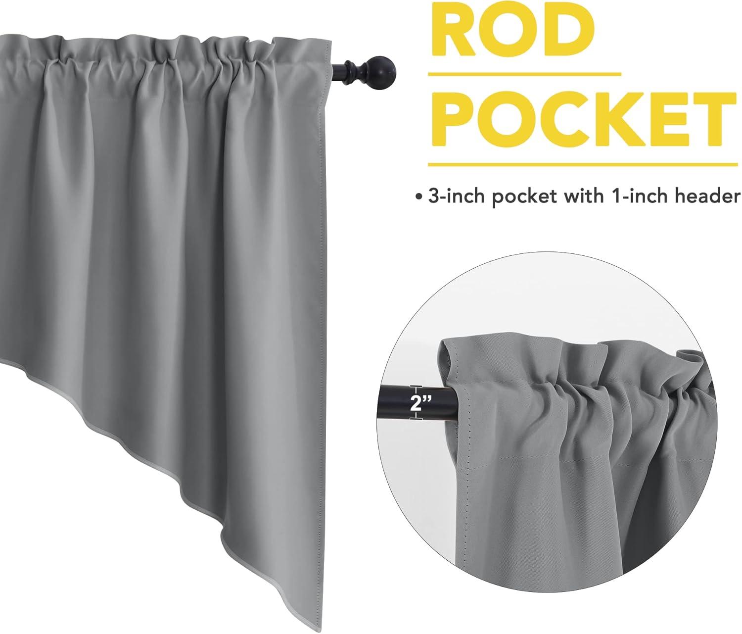 Ready Made: The package includes 2-rod pocket Scalloped Swag Curtains, each panel measuring W36 x L63 inches and the length in the center is 18 inches. Rod Pocket (2.8″ diameter) fits for all standard curtains rod and updates the look of your window in an instant.