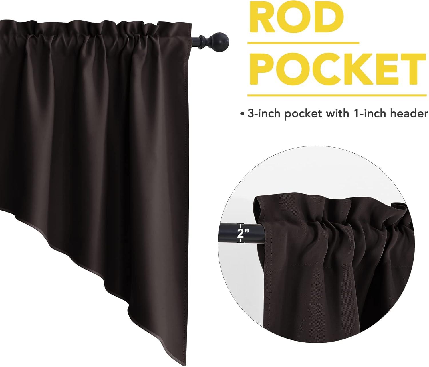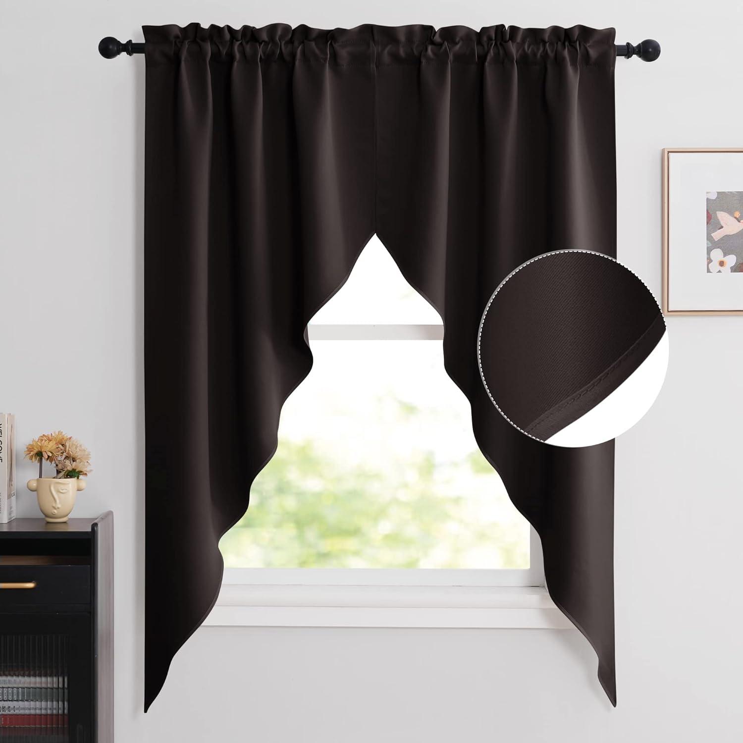 Ready Made: The package includes 2-rod pocket Scalloped Swag Curtains, each panel measuring W36 x L63 inches and the length in the center is 18 inches. Rod Pocket (2.8″ diameter) fits for all standard curtains rod and updates the look of your window in an instant.