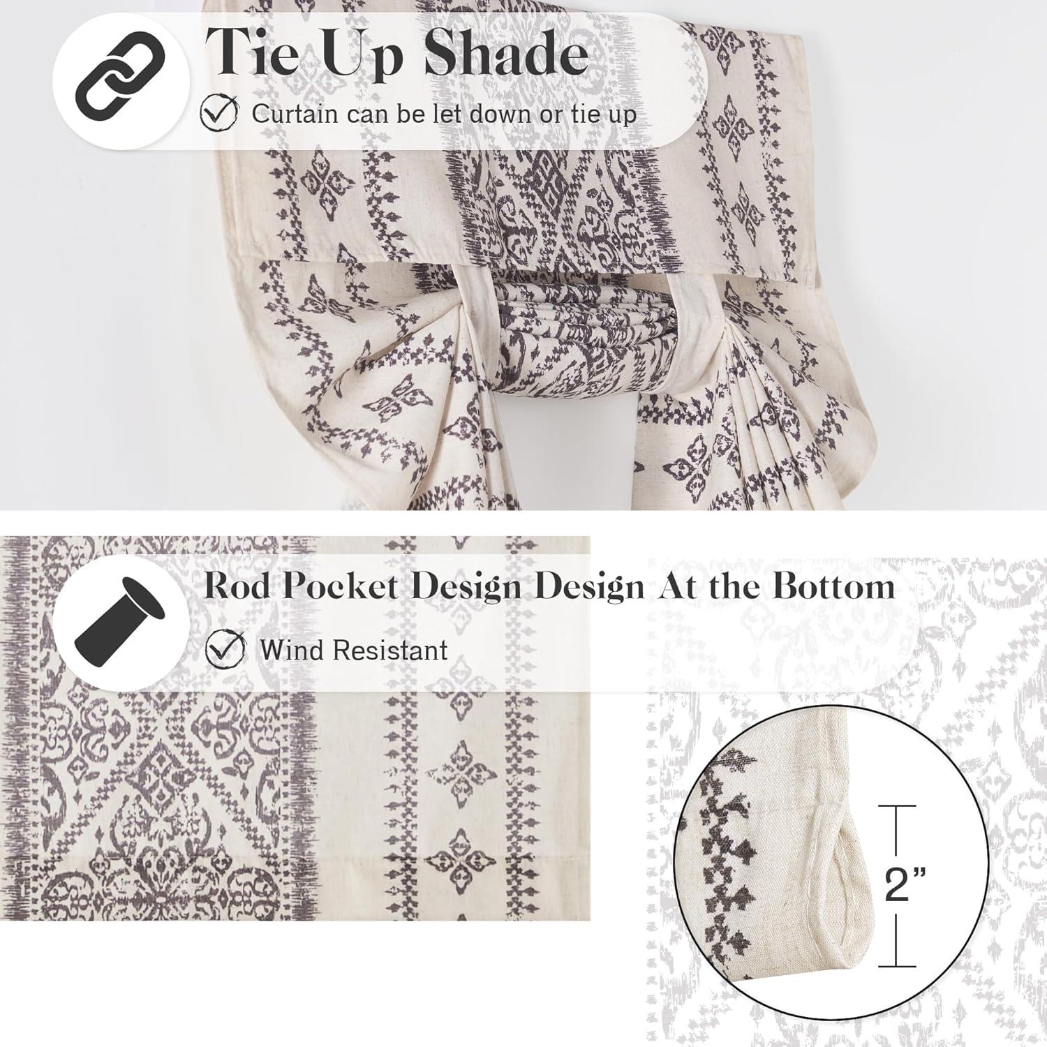 imageNICETOWN Boho Door Curtain for Window Farmhouse Linen Door Shade for Living Room Bedroom Self Adhesive Blind for Sidelight Window Rod Pocket Tie Up Shade 26 x 72 Inch Long 1 Panel AngoraGreyish White