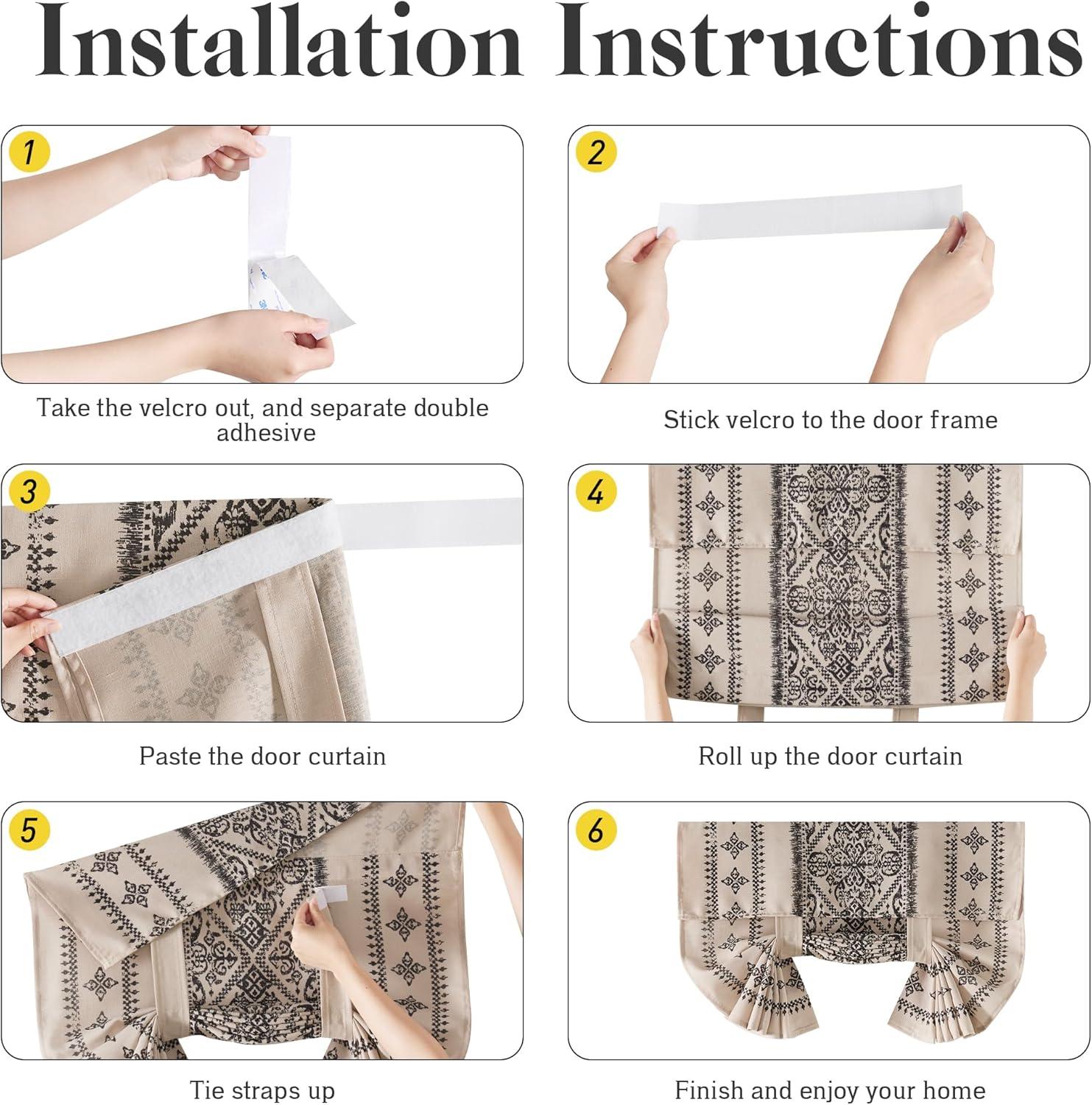 Well Made:Package includes 1 panel door curtain + free sticky strap. The door curtain is finished with sticker for easy to install. The back of the door curtain is also designed rod/pole pocket, to meet your various needs.