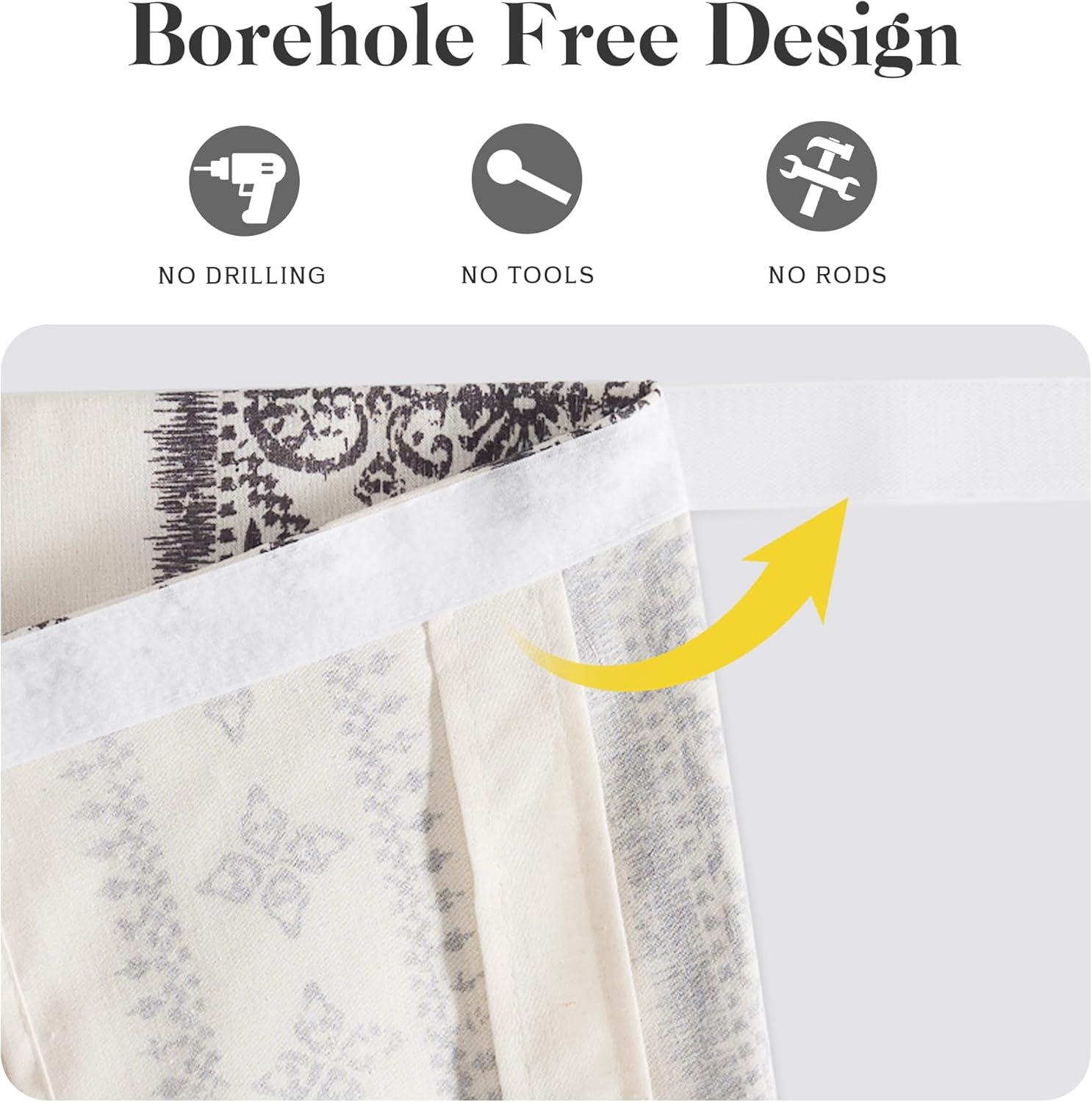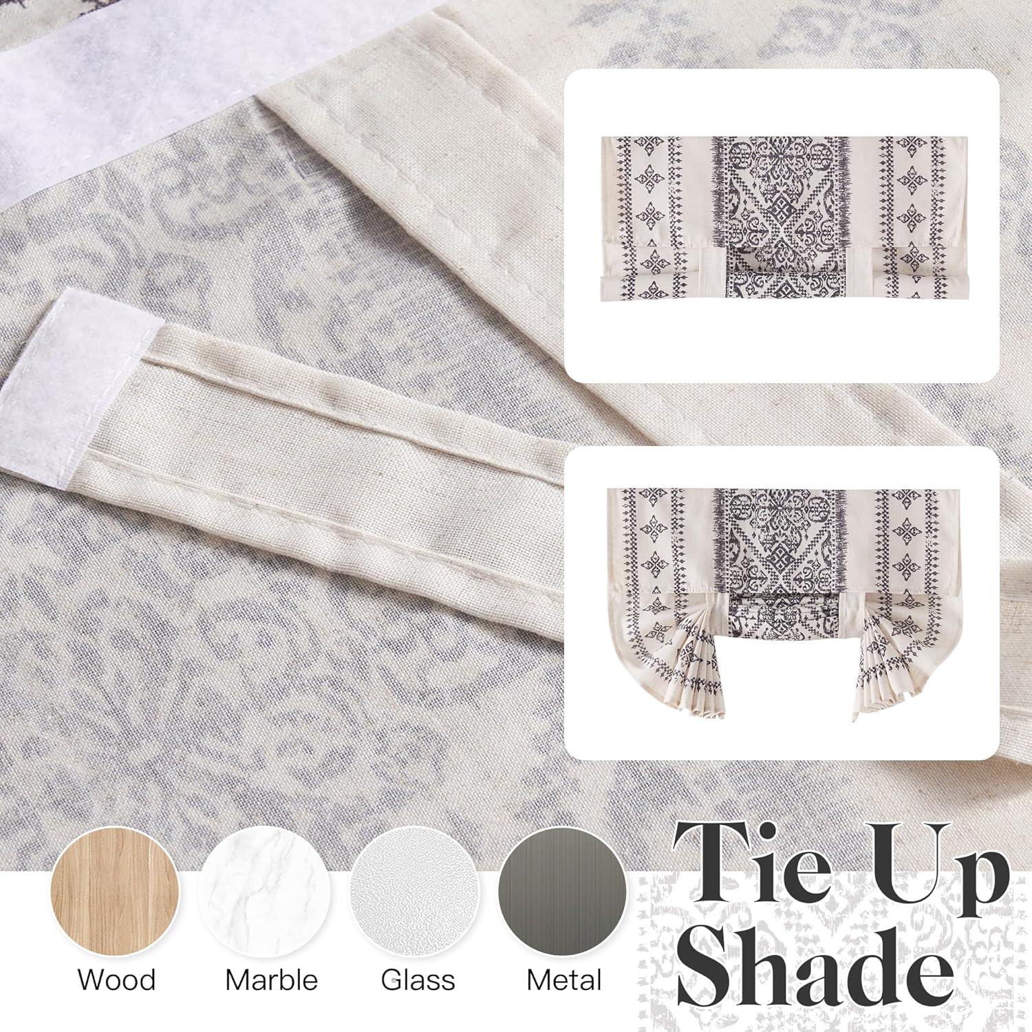 imageNICETOWN Boho Door Curtain for Window Farmhouse Linen Door Shade for Living Room Bedroom Self Adhesive Blind for Sidelight Window Rod Pocket Tie Up Shade 26 x 72 Inch Long 1 Panel AngoraGreyish White