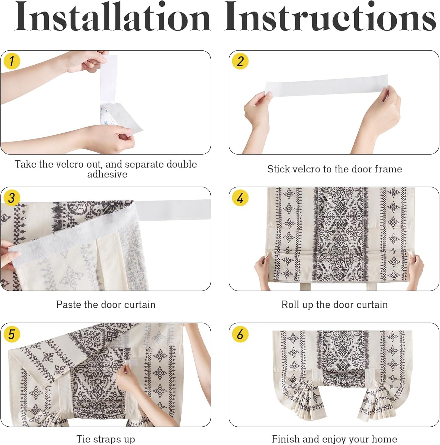 Well Made:Package includes 1 panel door curtain + free sticky strap. The door curtain is finished with sticker for easy to install. The back of the door curtain is also designed rod/pole pocket, to meet your various needs.
