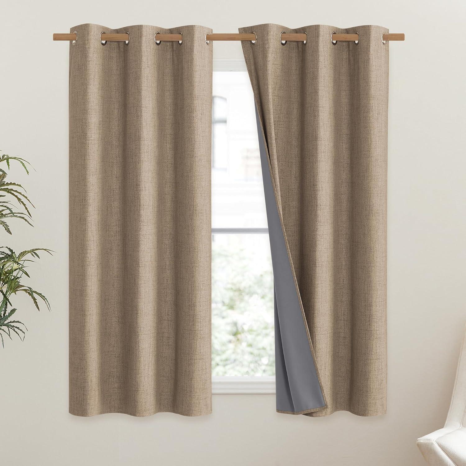 NICETOWN Burlap Vintage Open Linen Weave Flax Thermal Curtains, 100% Blackout Curtains 45" Long for Dining Room, Soundproof Window Treatment Drapes for Kitchen, 42" Wide Per Panel, Set of 2