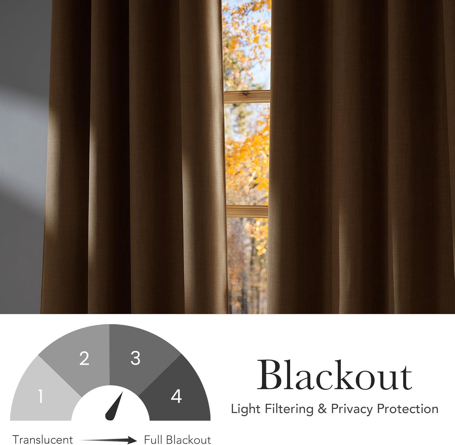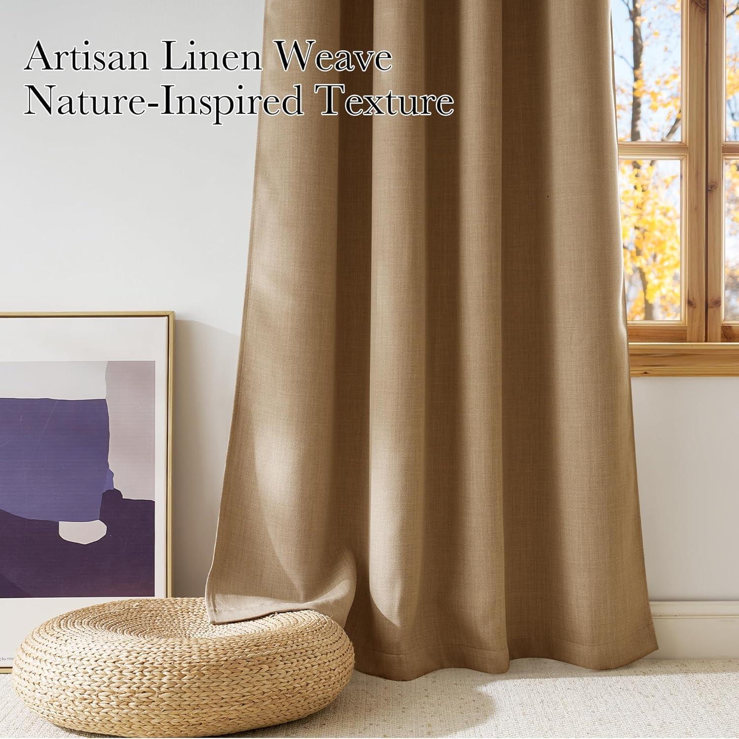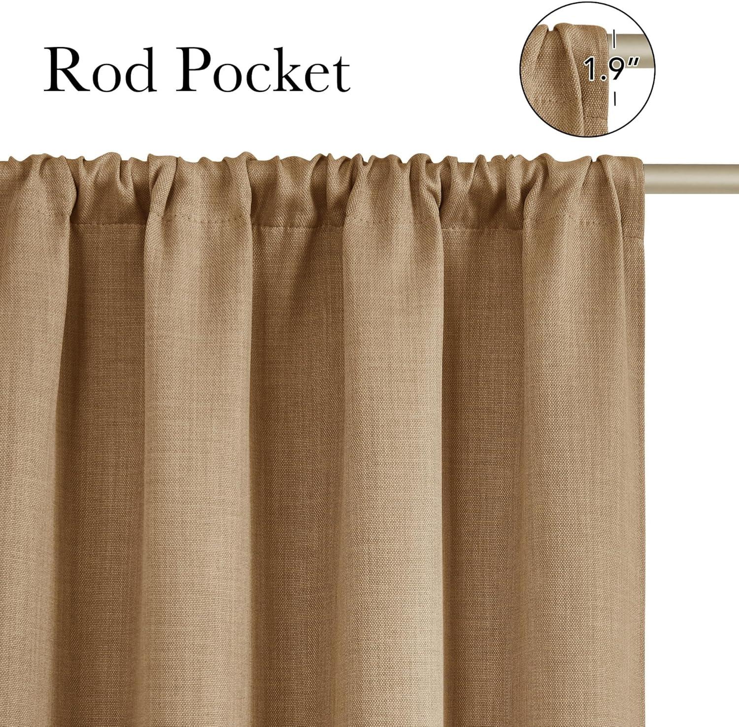 NICETOWN Caramel Faux Linen Room Darkening Rod Pocket Curtains 63 inch Length, W42 x L63, Light Blocking Thermal Insulated Noise Reducing Drapes for Bedroom Living Room Farmhouse Decor, 2 Panels