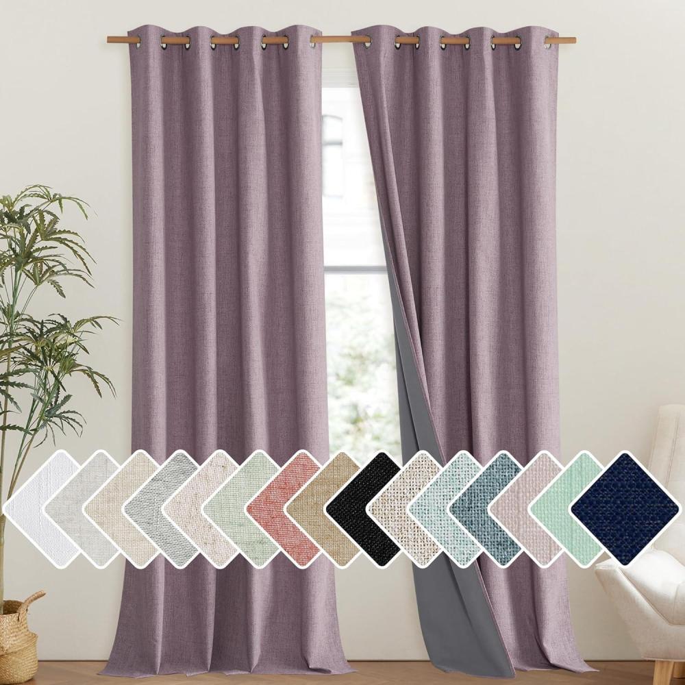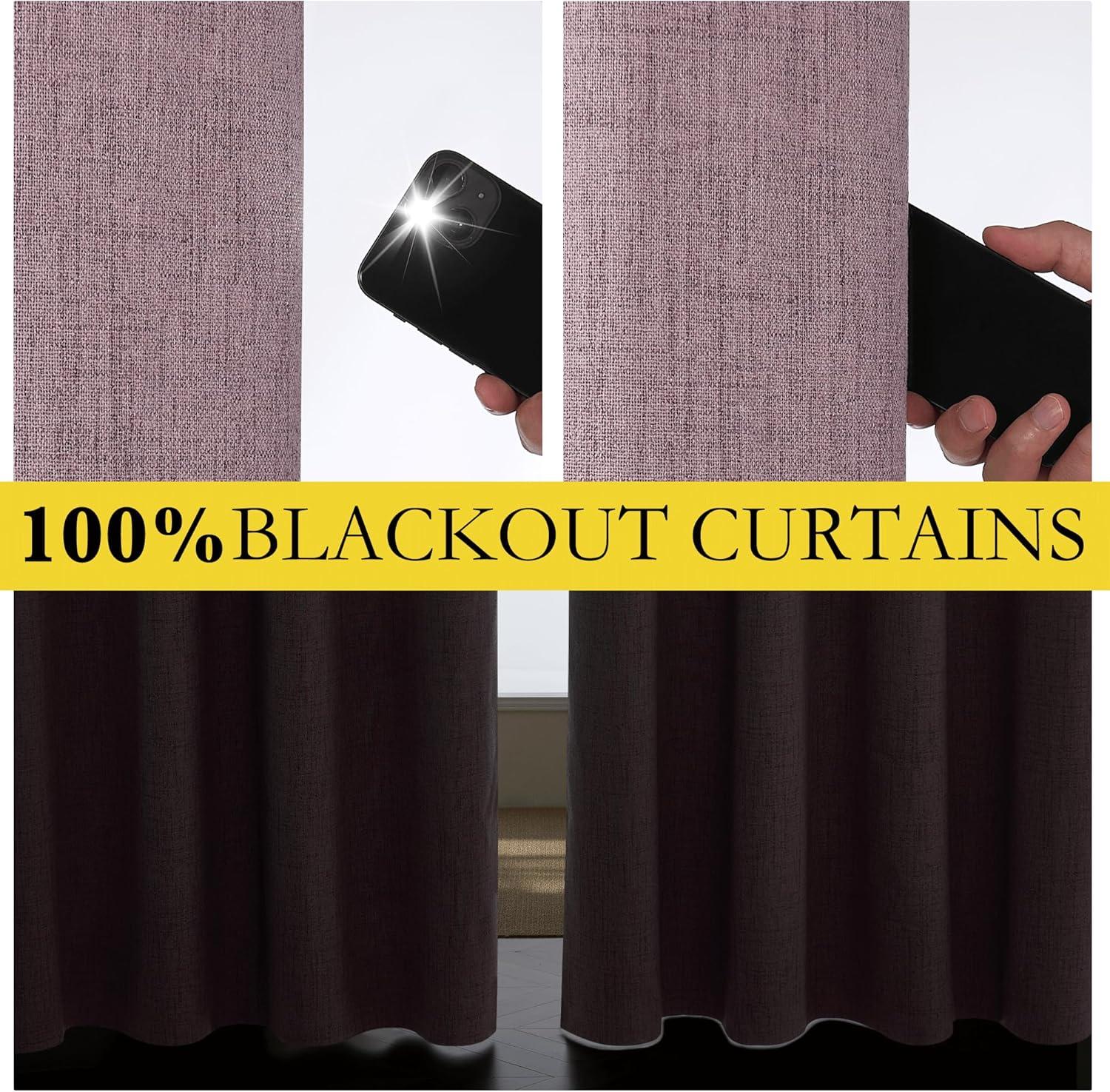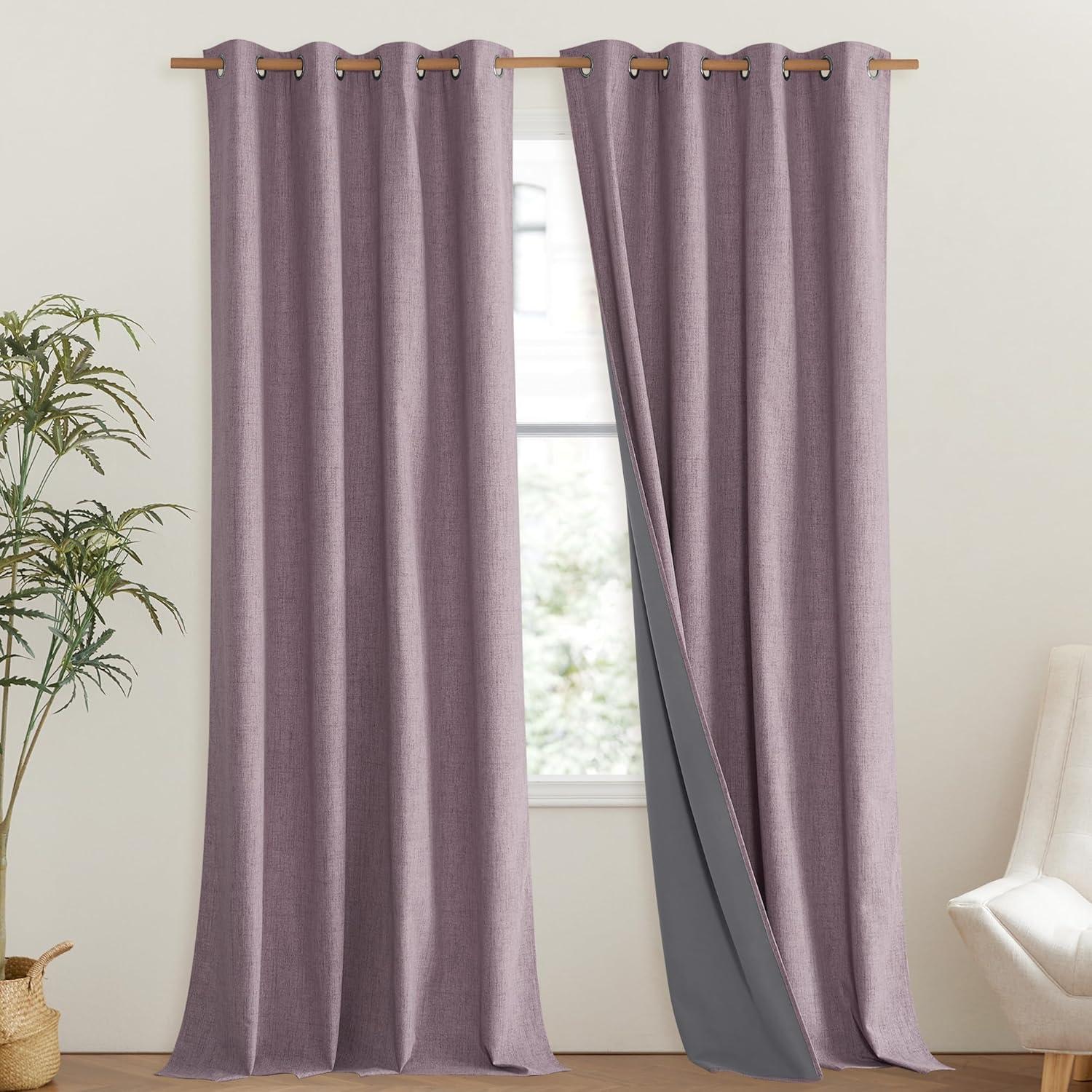 NICETOWN Chaise Mauve Vintage Linen 100% Blackout Curtains for Living Room, Thermal Insulated Curtains 108″ Long, Noise Reducing Window Treatment Drapes for Hall Room, 52″ Wide Per Panel, Set of 2