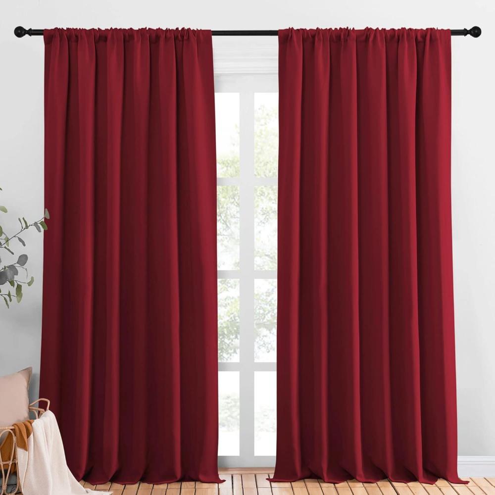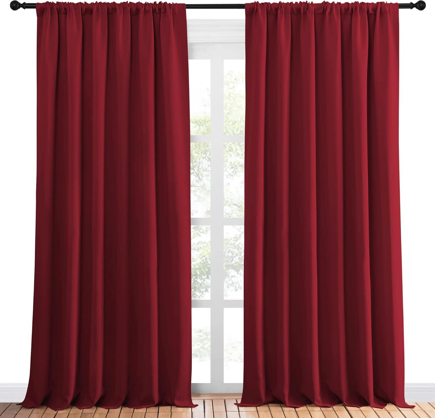 NICETOWN Christmas Living Room Curtains for Window – Energy Efficient & Noise Reducing Thermal Insulated Rod Pocket Blackout Drapes/Draperies for Living Room (Burgundy Red, 2 Panels, W70 x L95)