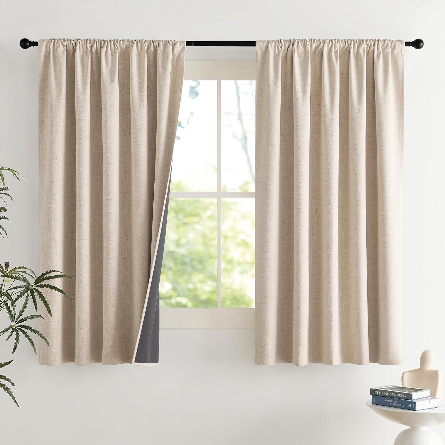 NICETOWN Cream Linen 100% Blackout Curtains, 2 Panels Set, 52 x 80 Inches, Rod Pocket Style, Thermal Insulated Room Darkening Drapes for Bedroom, Living Room, Nursery, Modern Farmhouse Decor(Cream)