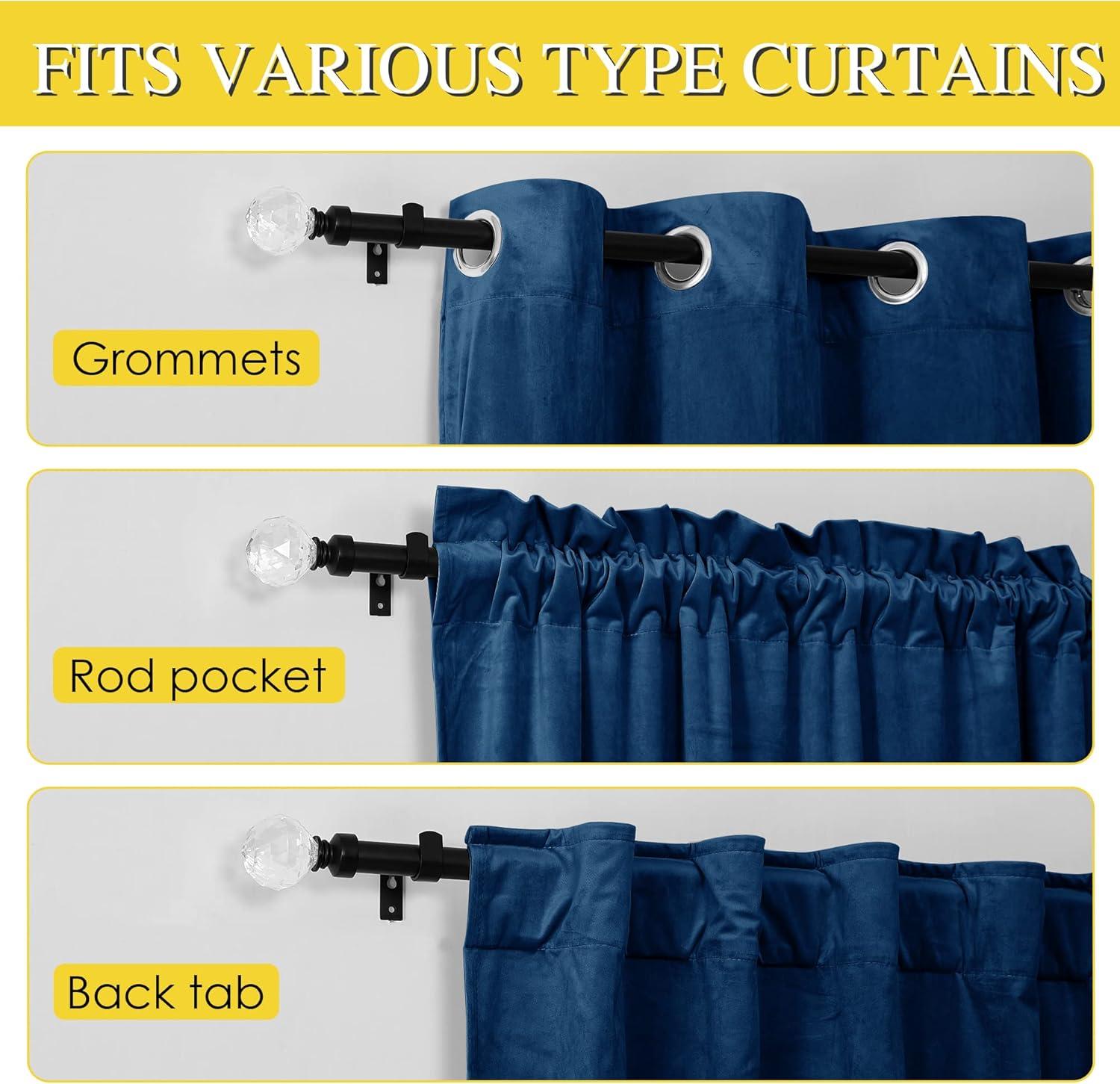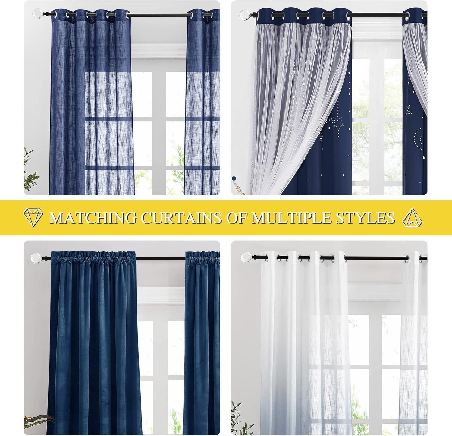 Wide Compatibility: The curtain rod will be suitable with both heavy and lightweight curtains also for all different curtain tops such as grommet, rod pocket, back tab, tab top, and so on.
