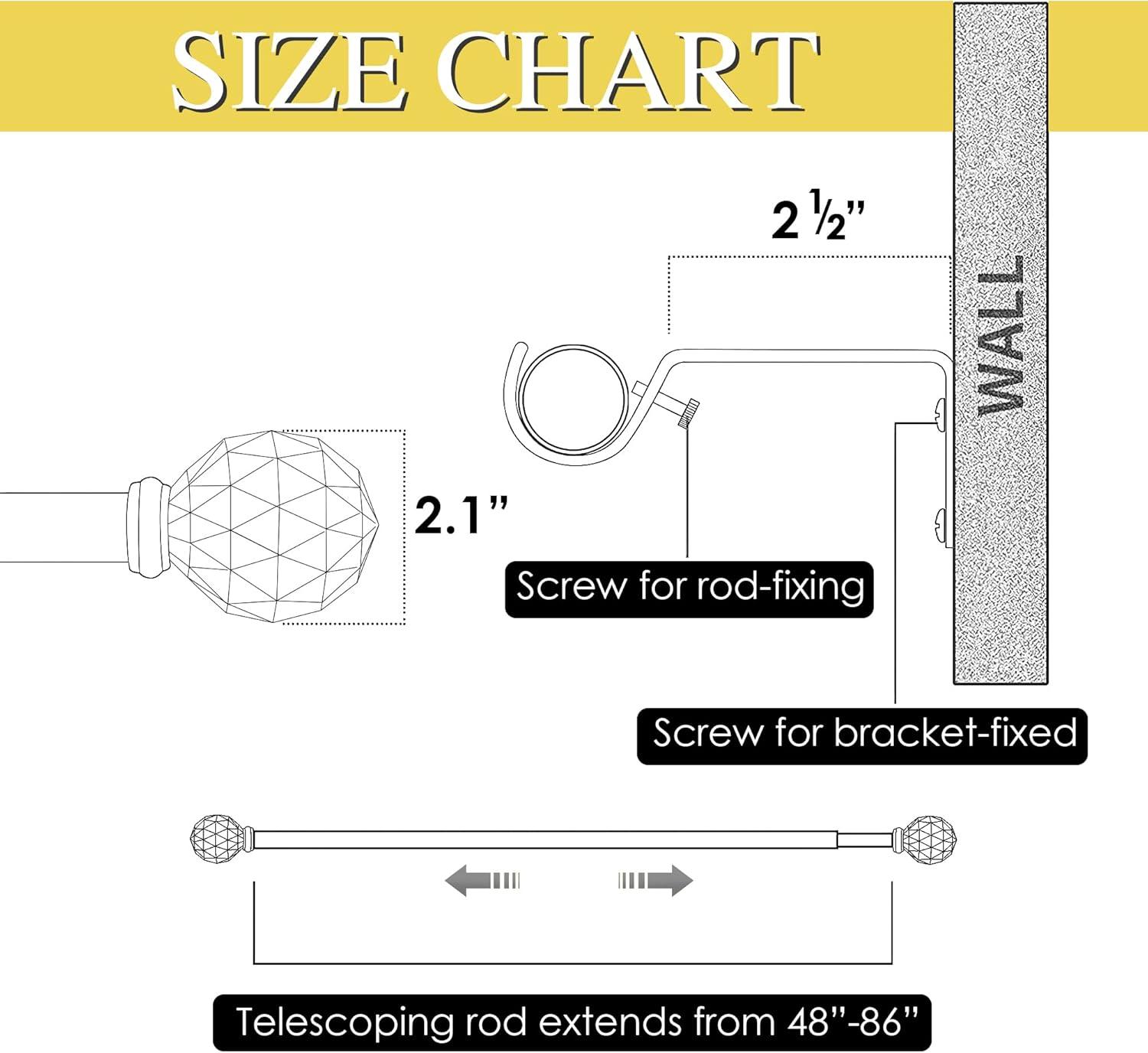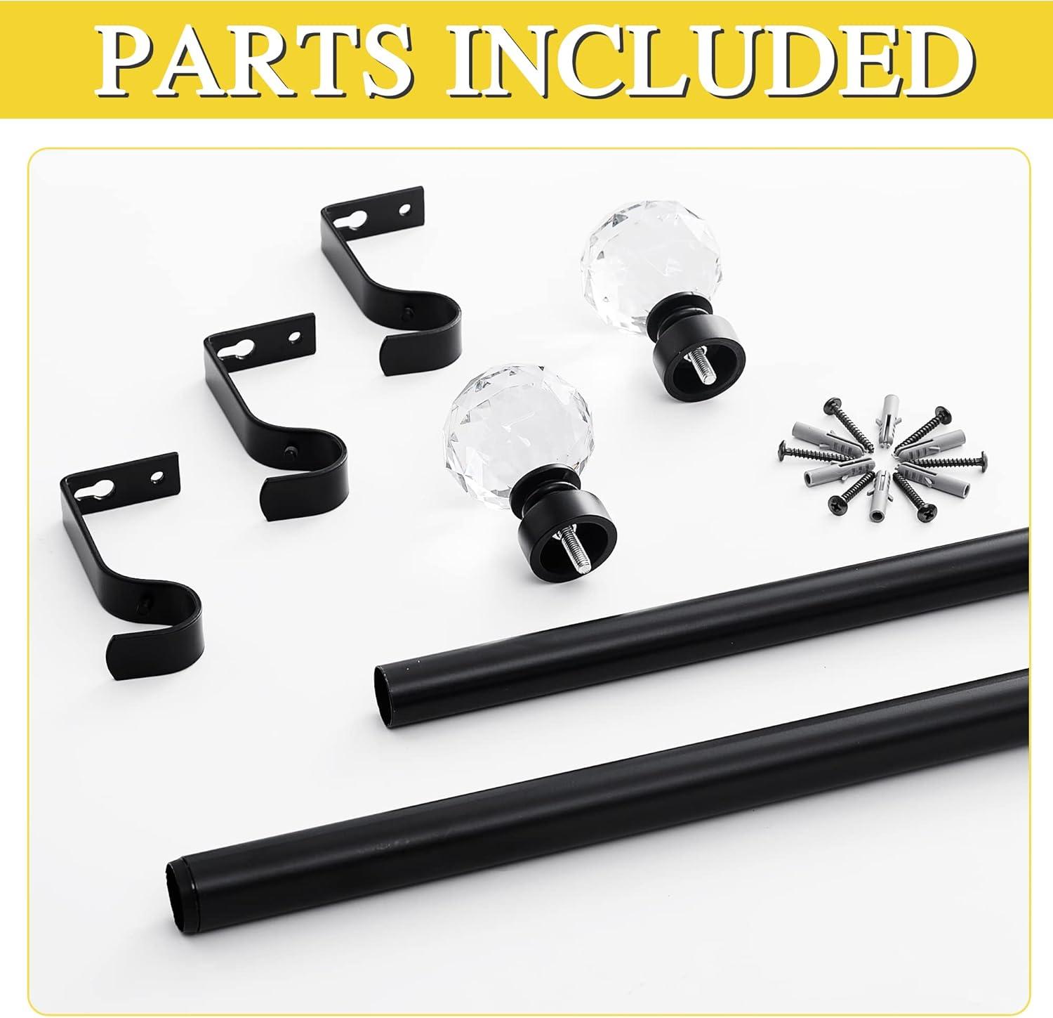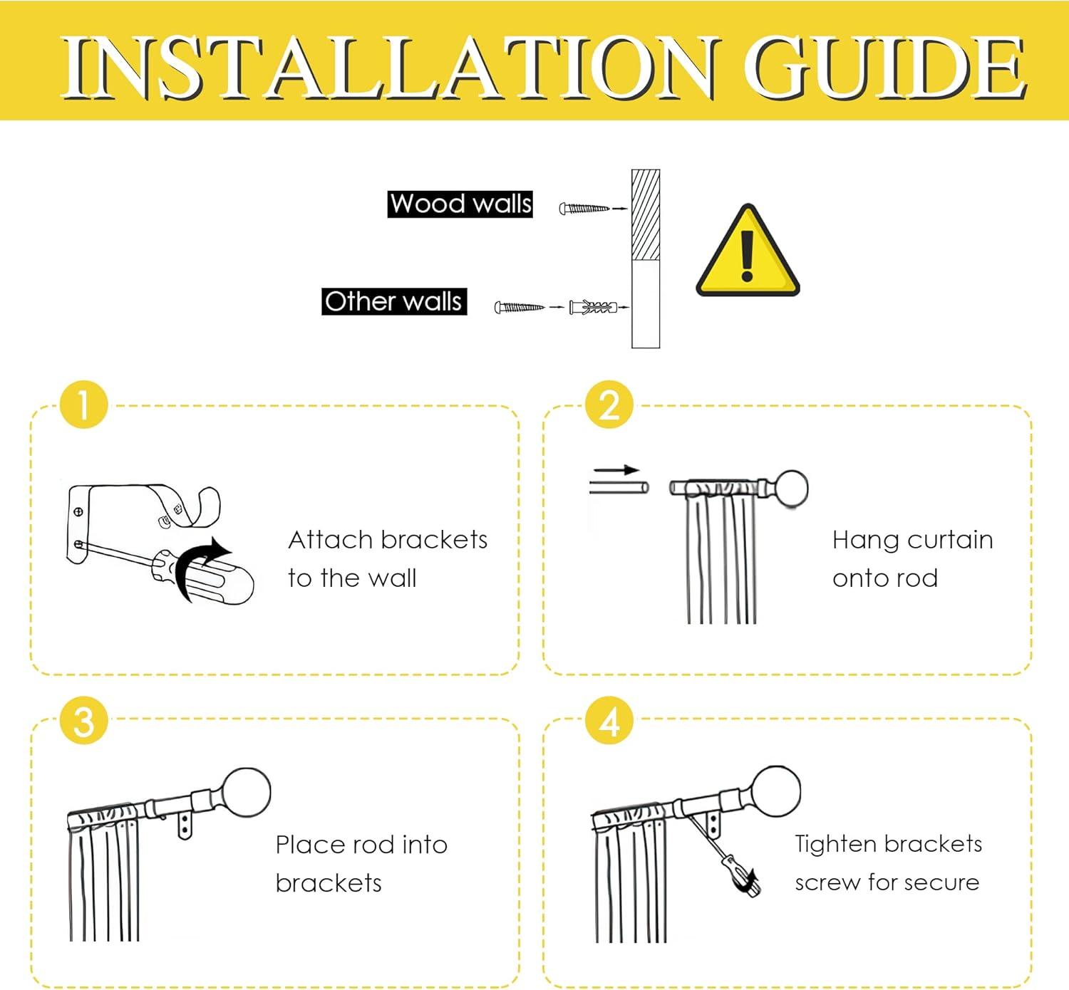 Set Including: Entire set includes the curtain rod, 2 metal finials, 2 brackets, and 4 screws with anchors which are all accessories mounting hardware for easy installation.