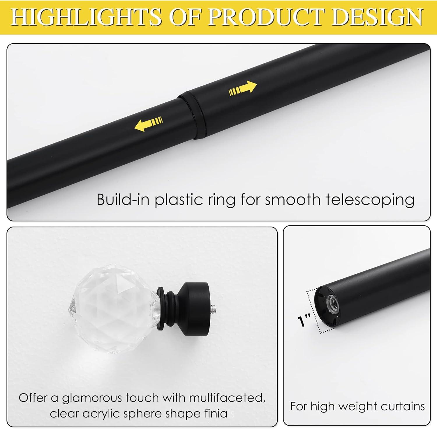 NICETOWN Curtain Rods for Windows 28 to 48 inch, Adjustable Curtain Rod 1 inch Diameter Modern Twisted Cage Finial Design Decorative Drapery Rod for Valances Tiers, 28-48″ Length, Matte Black(Matte Black/Faceted Ball)