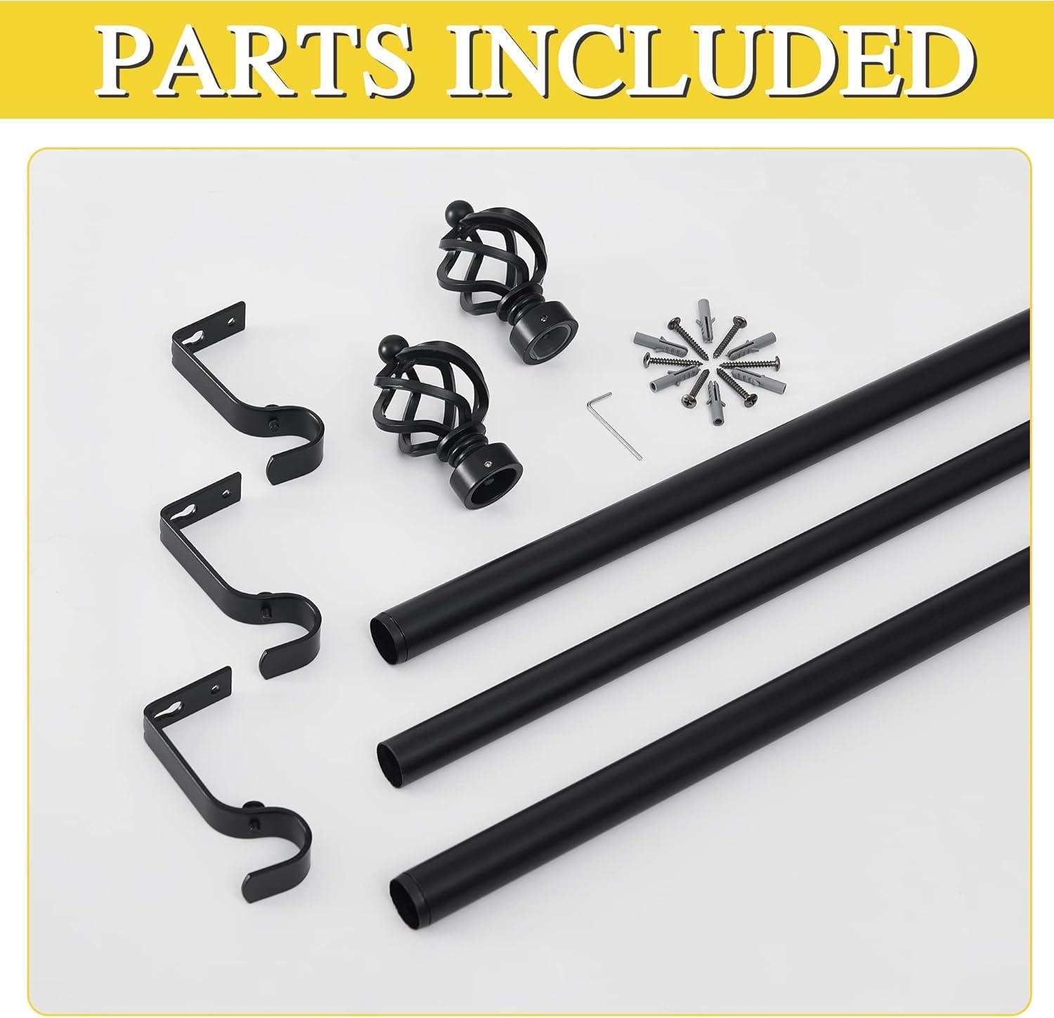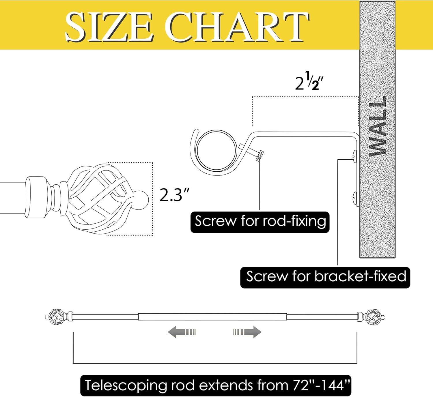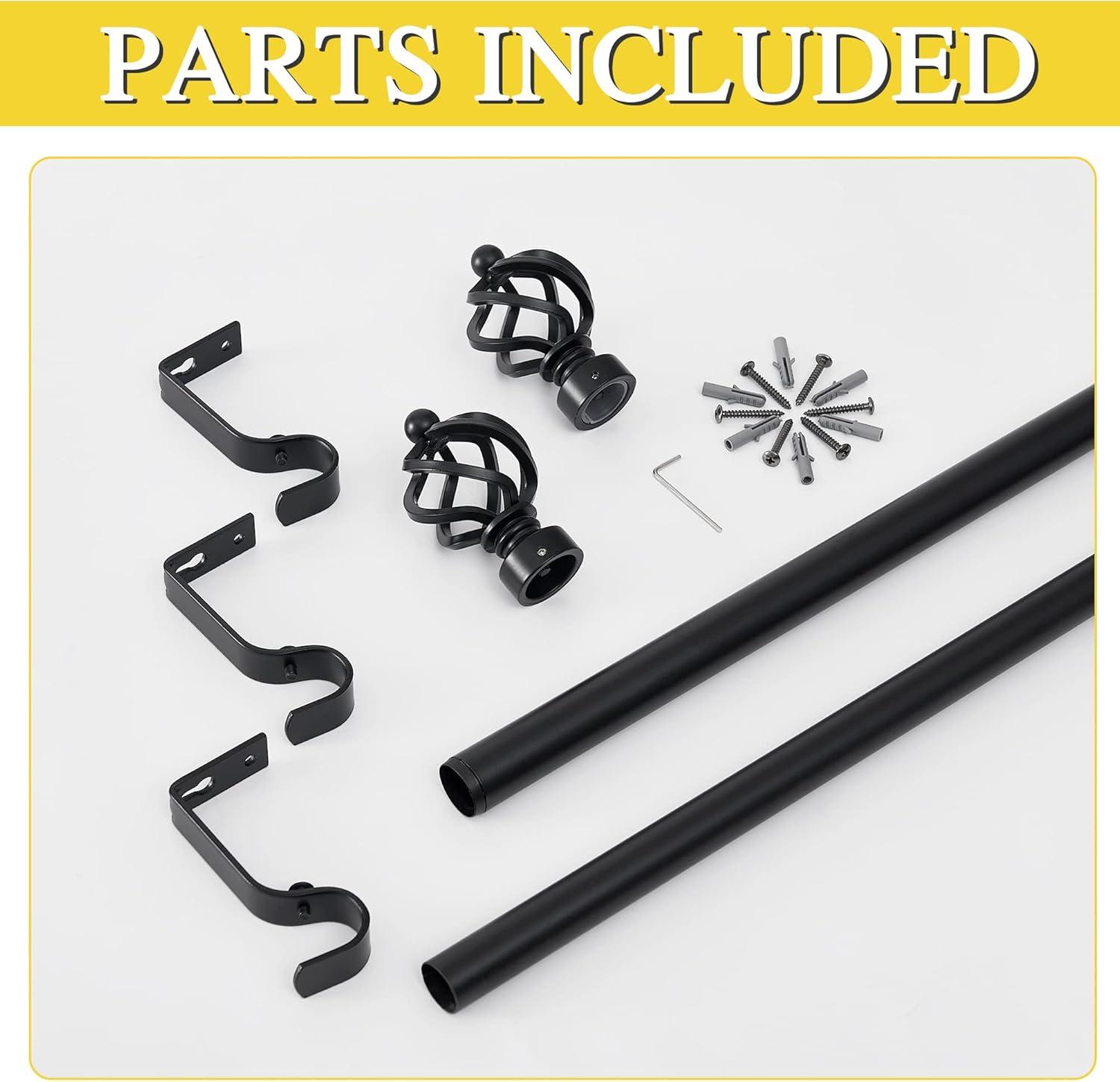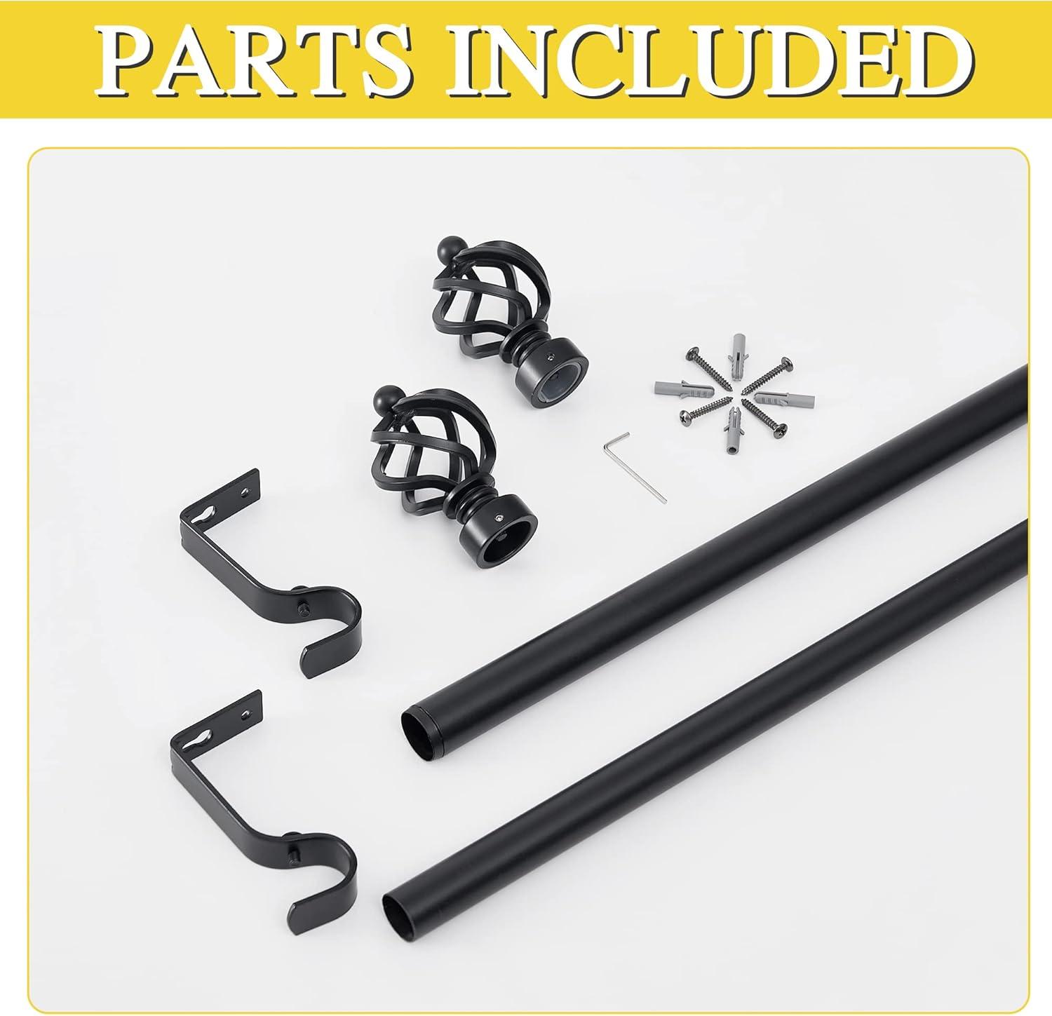 Set Including: Entire set includes the curtain rod, 2 metal finials, 2 brackets, and 4 screws with anchors which are all accessories mounting hardware for easy installation.