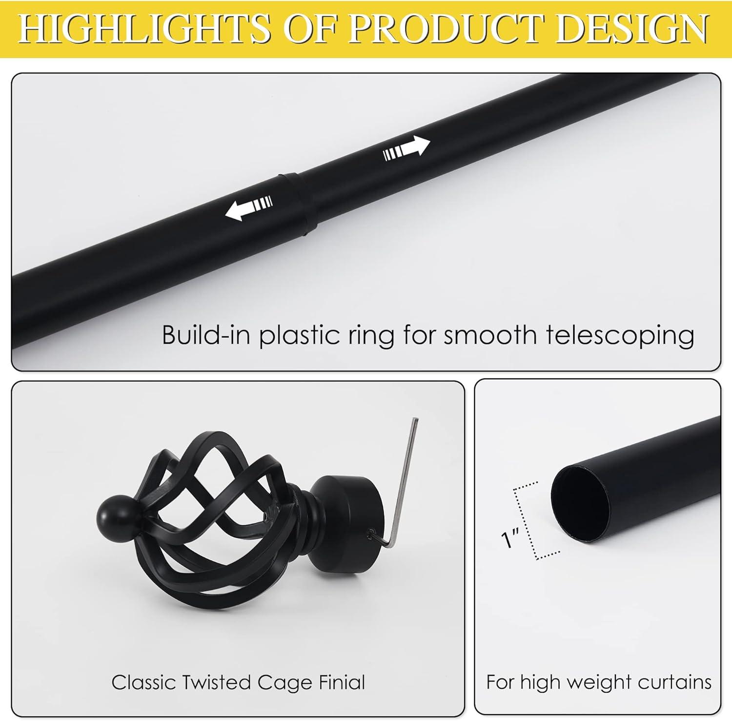 Rod Design: The curtain rod adopts Twisted Cage Finials which are natural and simple for any space decor such as bedroom, living room, kitchen, and sliding door.