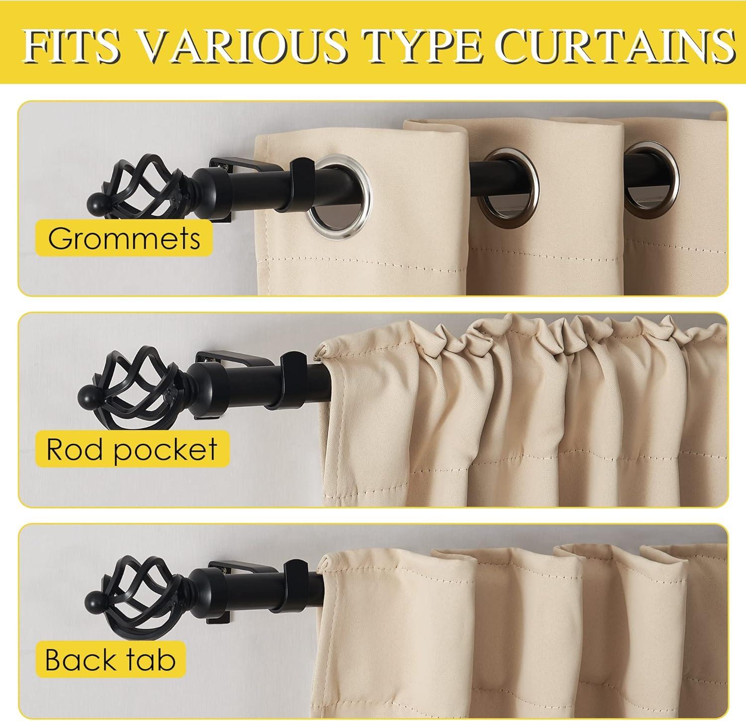 Wide Compatibility: The curtain rod will be suitable with both heavy and lightweight curtains also for all different curtain tops such as grommet, rod pocket, back tab, tab top, and so on.