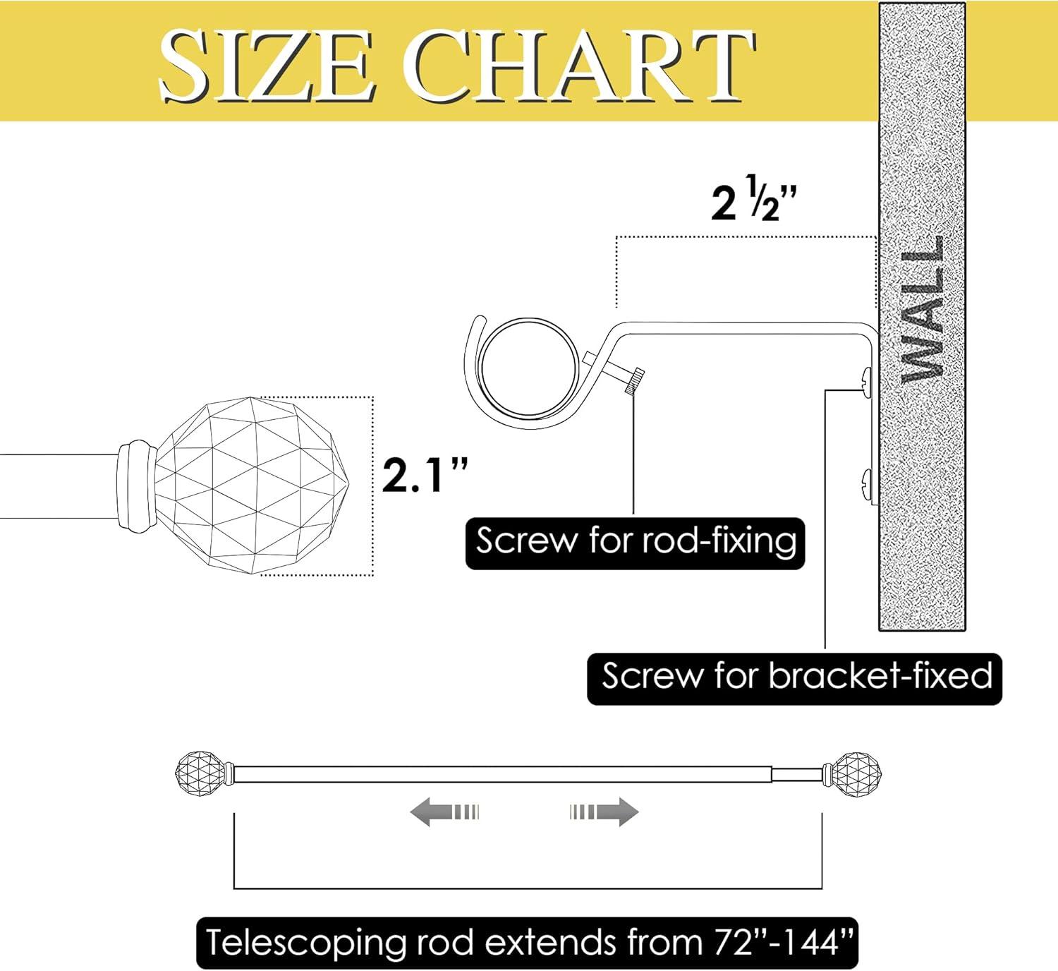 Set Including: Entire set includes the curtain rod, 2 metal finials, 2 brackets, and 4 screws with anchors which are all accessories mounting hardware for easy installation.