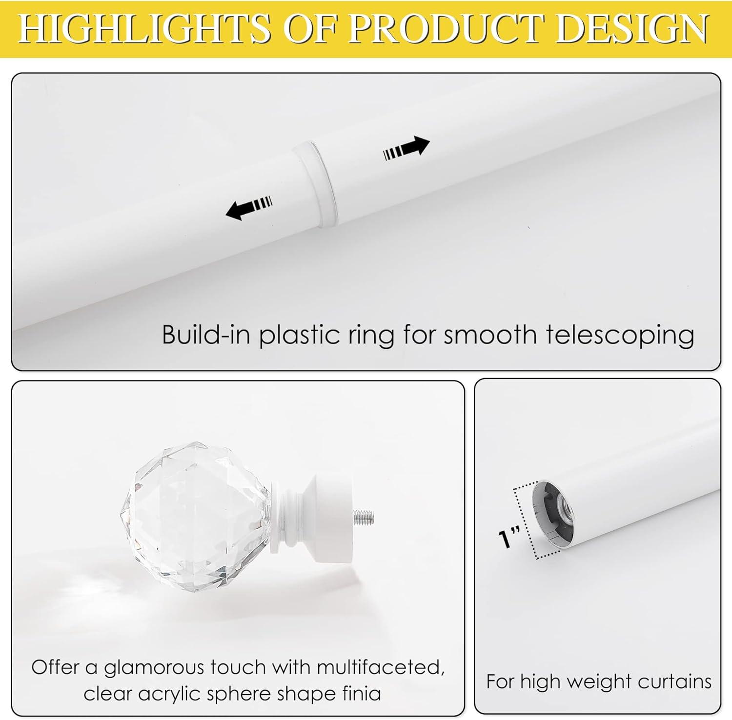 NICETOWN Curtain Rods for Windows 28 to 48 inch, Adjustable Curtain Rod 1 inch Diameter Modern Twisted Cage Finial Design Decorative Drapery Rod for Valances Tiers, 28-48″ Length, Matte Black(Matte White/Faceted Ball)