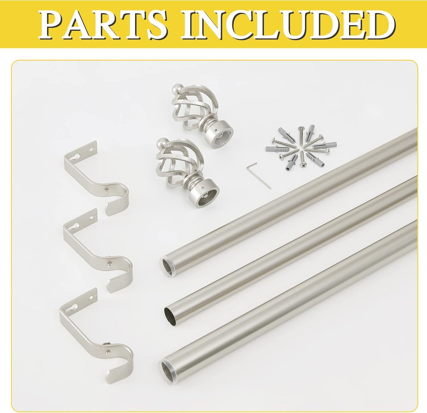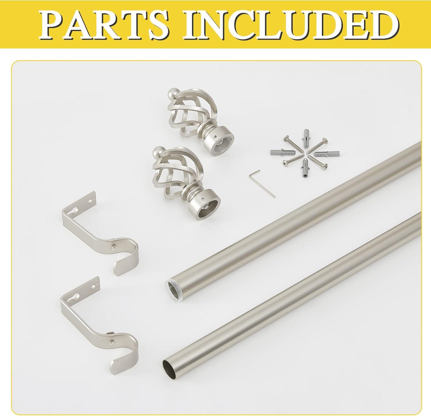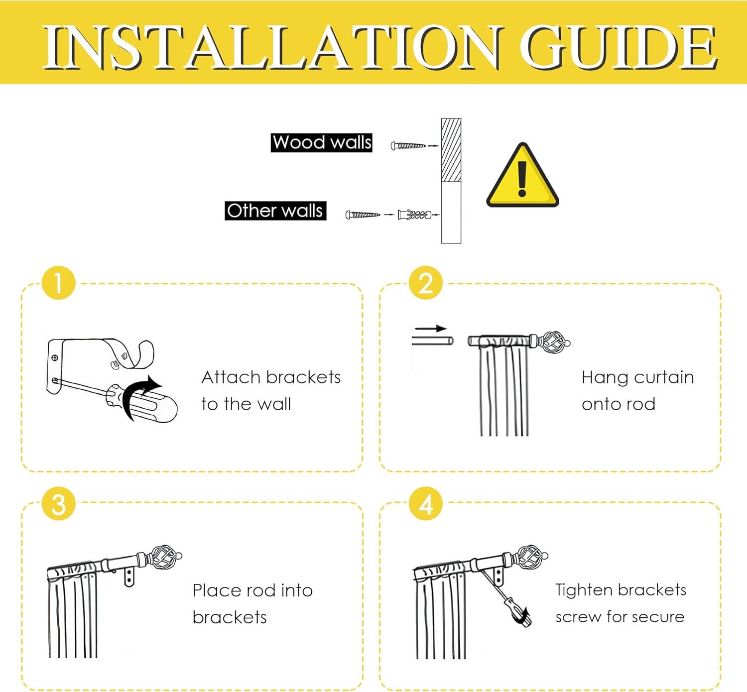Set Including: Entire set includes the curtain rod, 2 metal finials, 2 brackets, and 4 screws with anchors which are all accessories mounting hardware for easy installation.