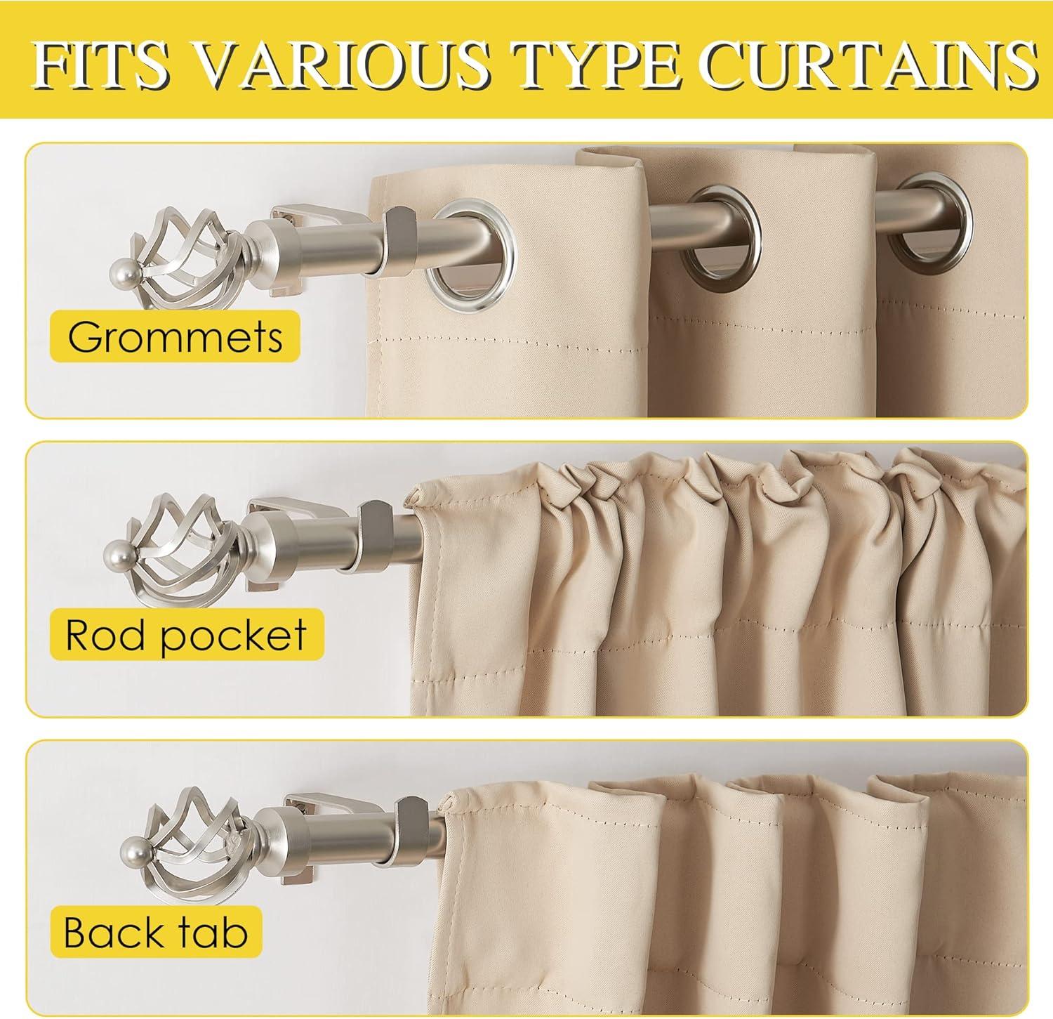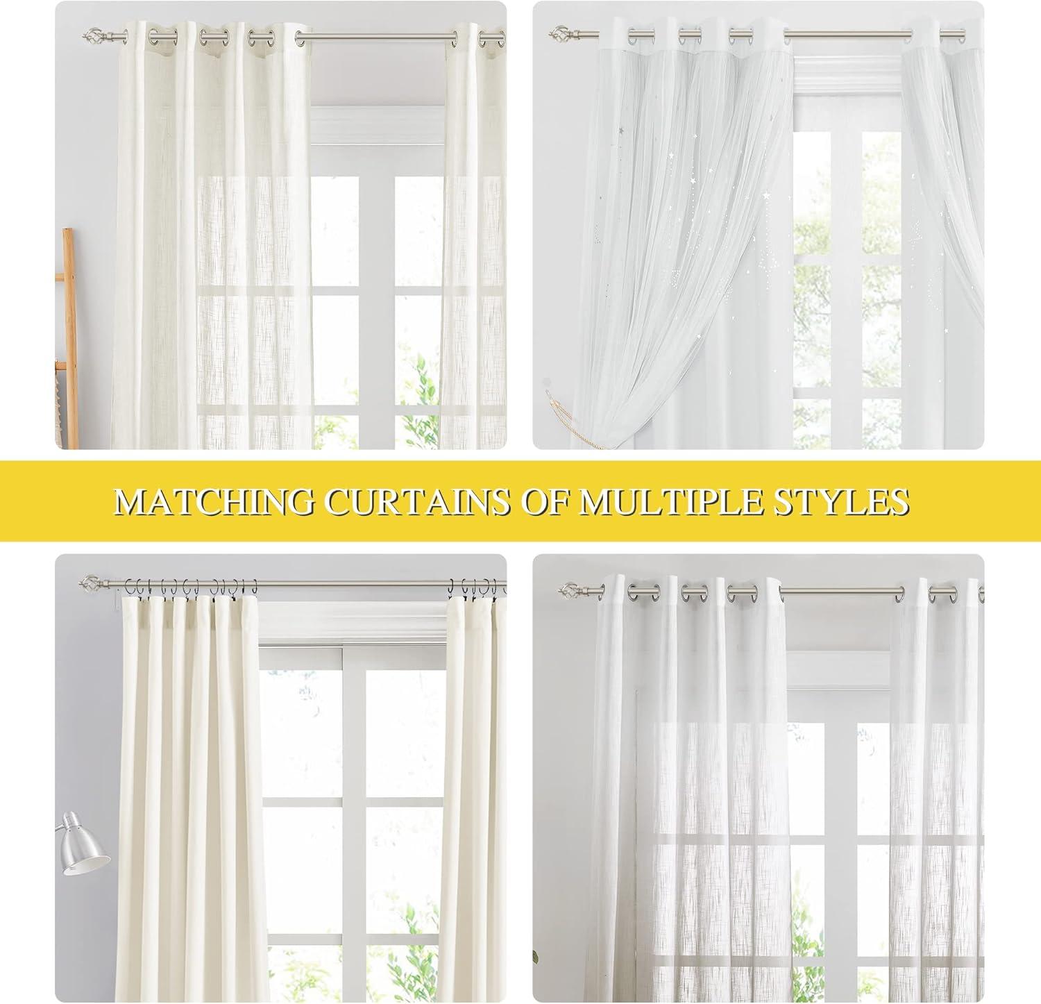 Wide Compatibility: The curtain rod will be suitable with both heavy and lightweight curtains also for all different curtain tops such as grommet, rod pocket, back tab, tab top, and so on.